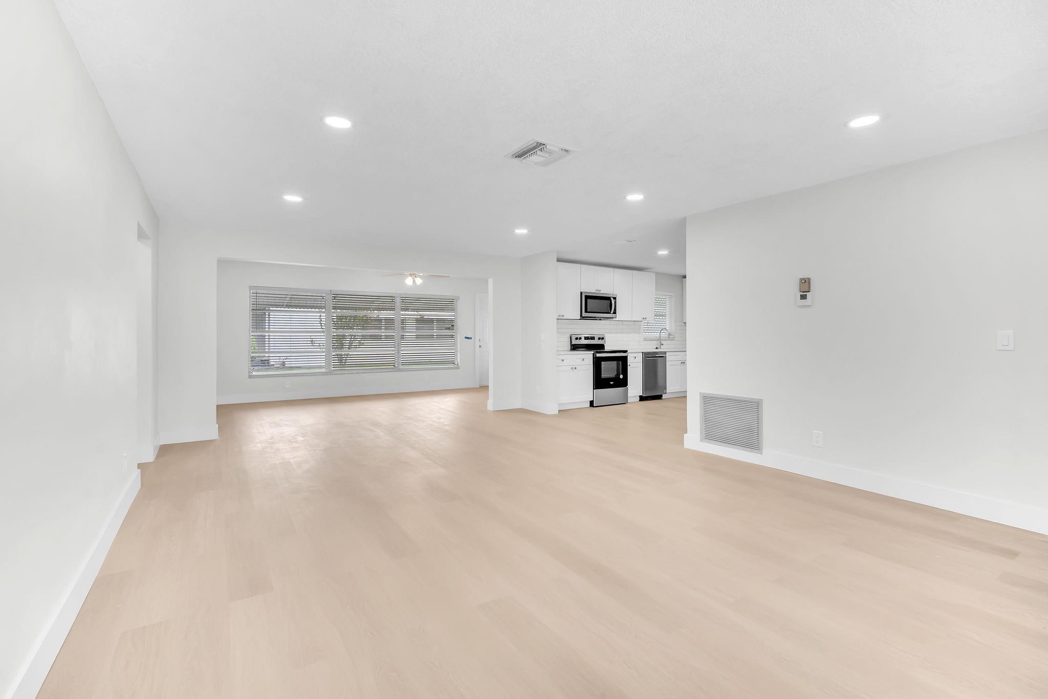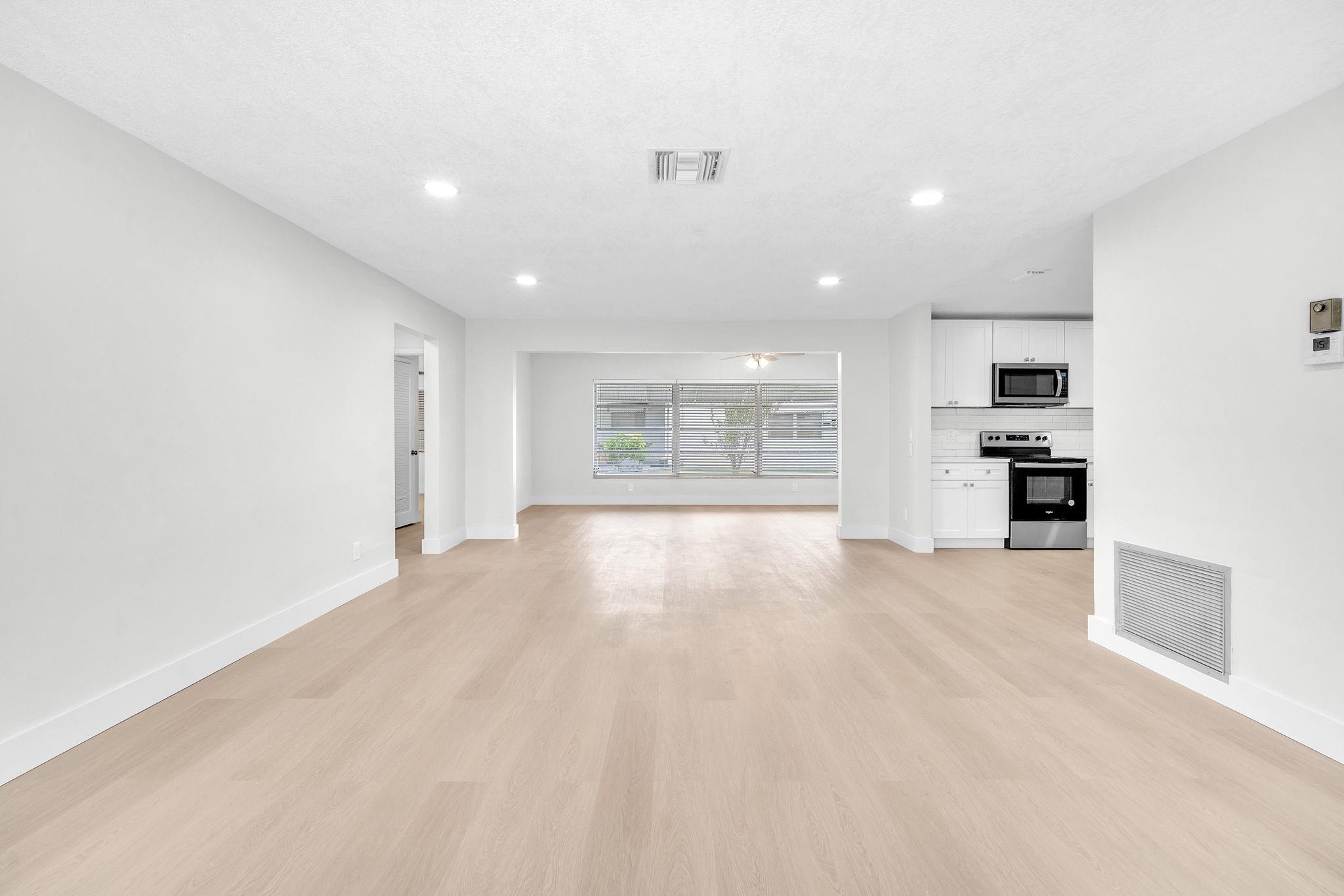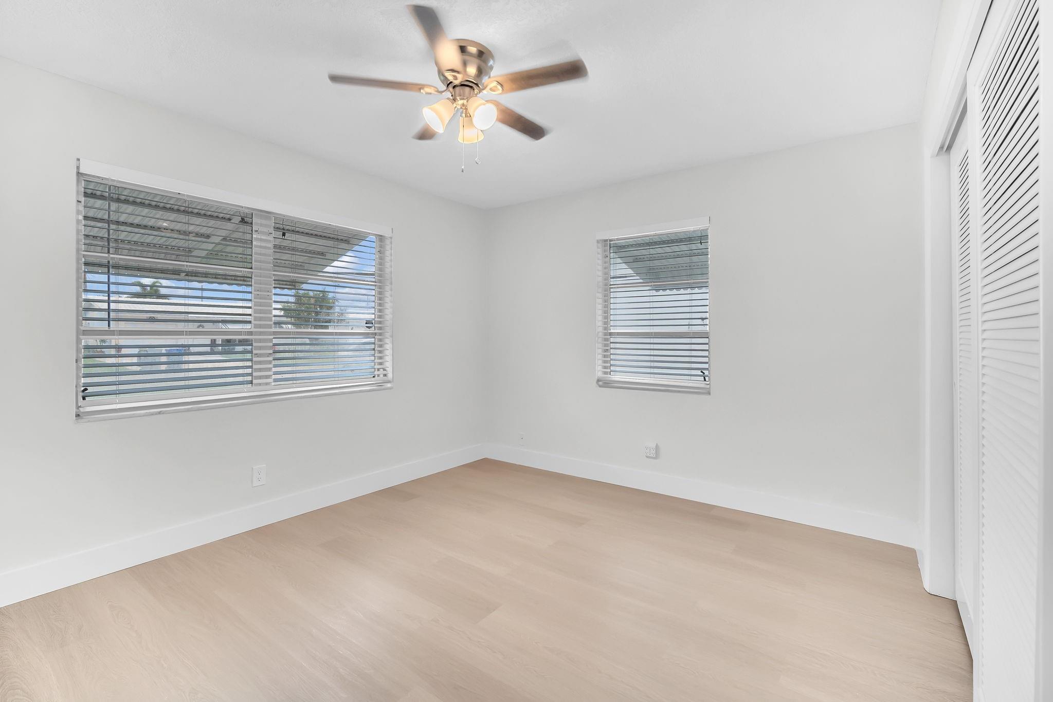Beautifully updated 2/2 home with brand new roof. Property offers open floor plan including updated bathrooms & kitchen with quartz countertops & brand new SS appliances. Home is fully hurricane protected with new roof in 2023, AC 2019 & accordion shutters (install prior to closing). Interior, exterior & garage are freshly painted. Home is like new & 100% move in ready. Community is pet friendly & includes 2 clubhouses, pools, saunas, gym, shuffleboard, bocce ball, courtesy bus, painting exterior of home, sprinklers & resident only access to golf on community private 9-hole course. Wonderful 55+ community & great location. NO land lease. Easy to show.