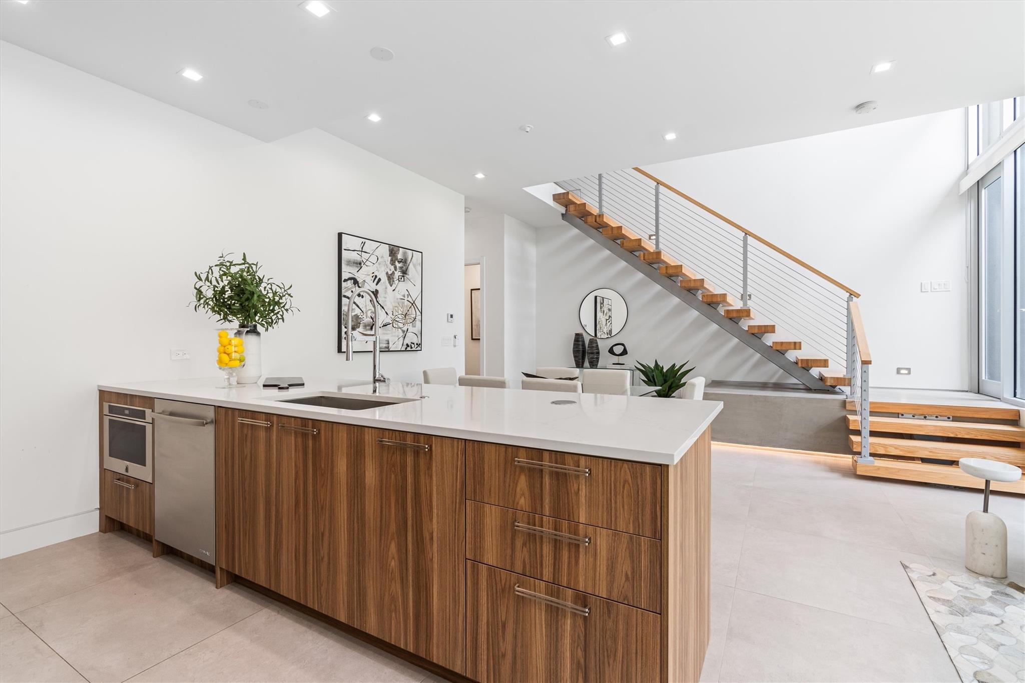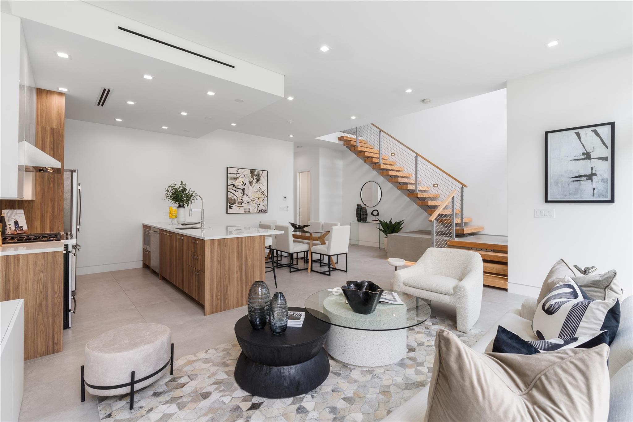 Immaculate Victoria Park townhome within exclusive, 8-unit contemporary community. Ready for today's eco-conscious buyer: tankless gas HWH, sustainable Dell Anno cabinetry, pre-wired for smart tech. Two-story glass entry w/seamless transition between outdoor + indoor living spaces. Open floor plan and 10 ft+ ceilings welcome natural light, while high-end, motorized shades provide ultimate privacy. Dramatic floating staircase w/open risers + stainless balusters. Master suite features private balcony, spacious walk-in closet, expansive shower/bath enclosure, double sinks. Cozy, 2nd floor loft w/media room. Stunning kitchen w/SS Jenn Air appl., gas range + quartz counter seating. Or dine-out! Steps from Lauderdale's newest downtown restaurants, fitness, shopping, grocers + more.