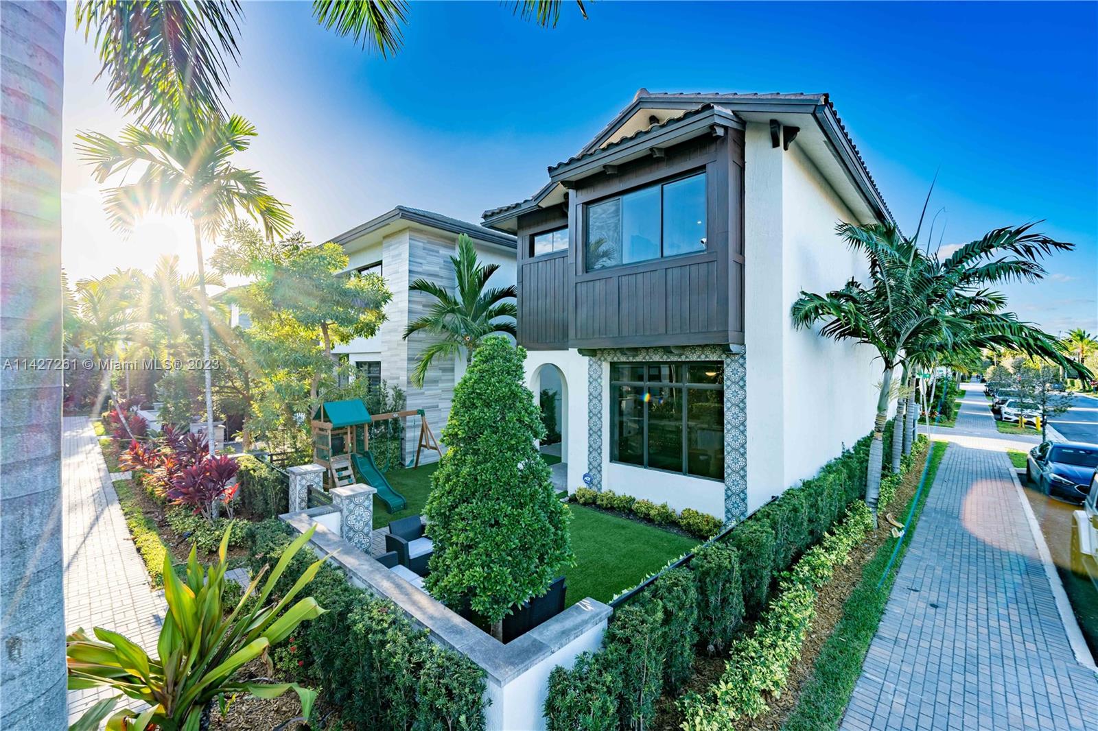 Discover luxury living at its finest in the new community of Canarias in Downtown Doral, with this stunning 3-bedroom and a den, 3 1/2-bathroom, single-family Smart Home. The home boasts of 9-foot ceilings, high-end designer finishes, impact-rated-energy-efficient windows & doors, a well thought-out open concept layout, & a wonderful outdoor space upgraded with turf and pavers. This corner home is located near the Resort-Style Club House with private luxury amenities. Enjoy the perfect blend of modern living & comfort in this exquisite home with preferred access to the award-winning and A-rated Downtown Doral Charter School with its highly regarded bilingual program, walking distance to award wining restaurants, the new state-of-the-art Doral Cultural Arts Center, shopping areas, & more