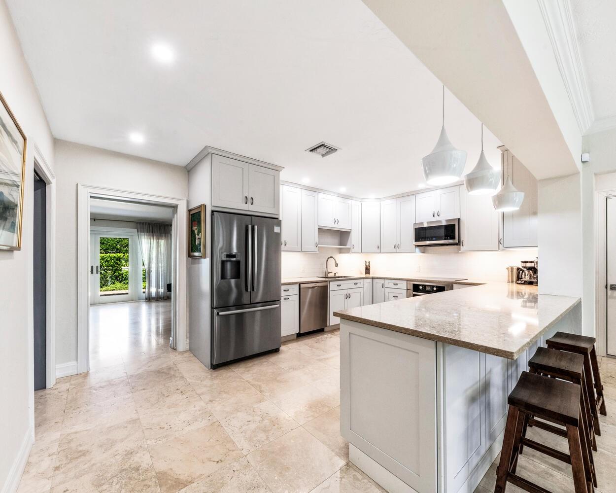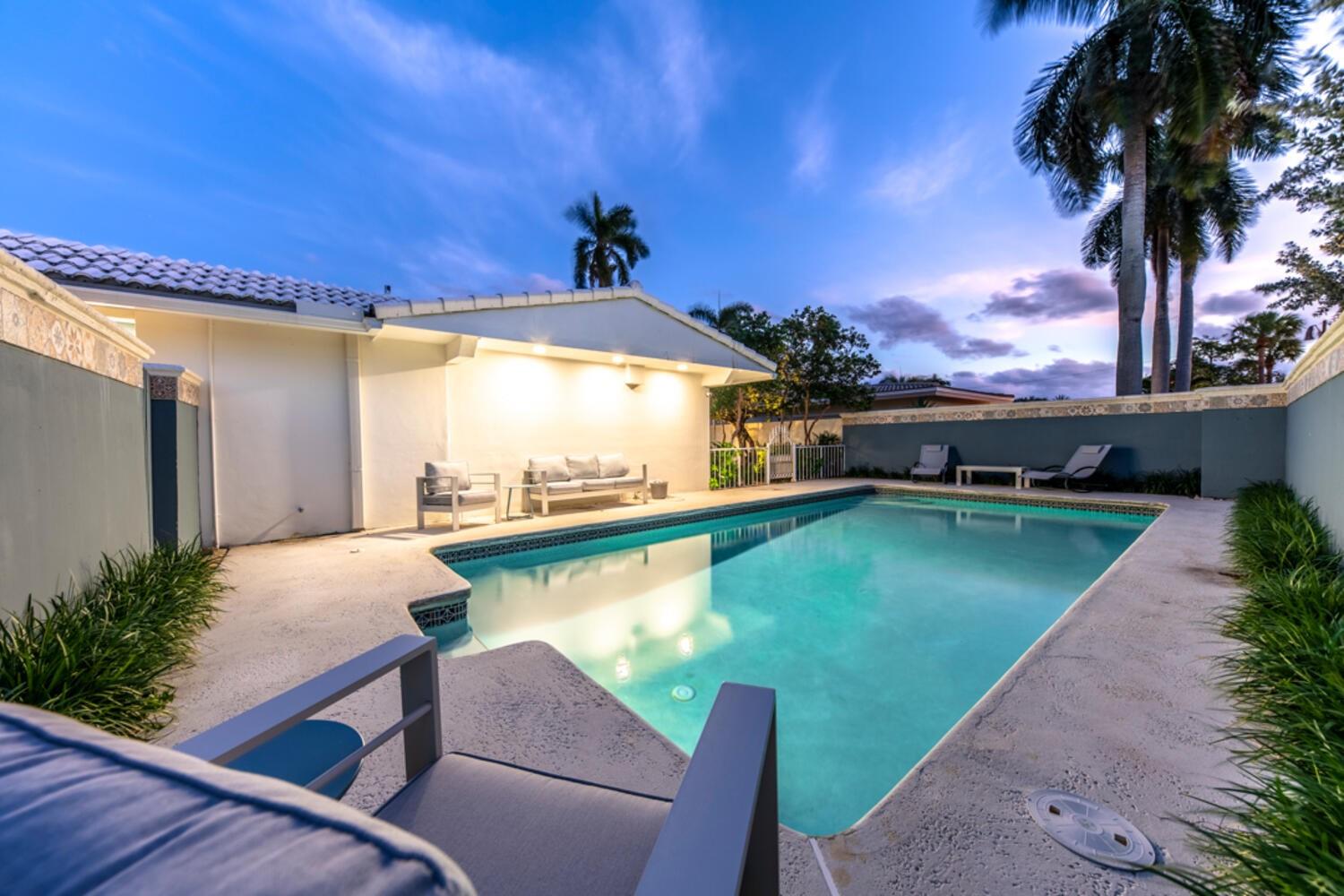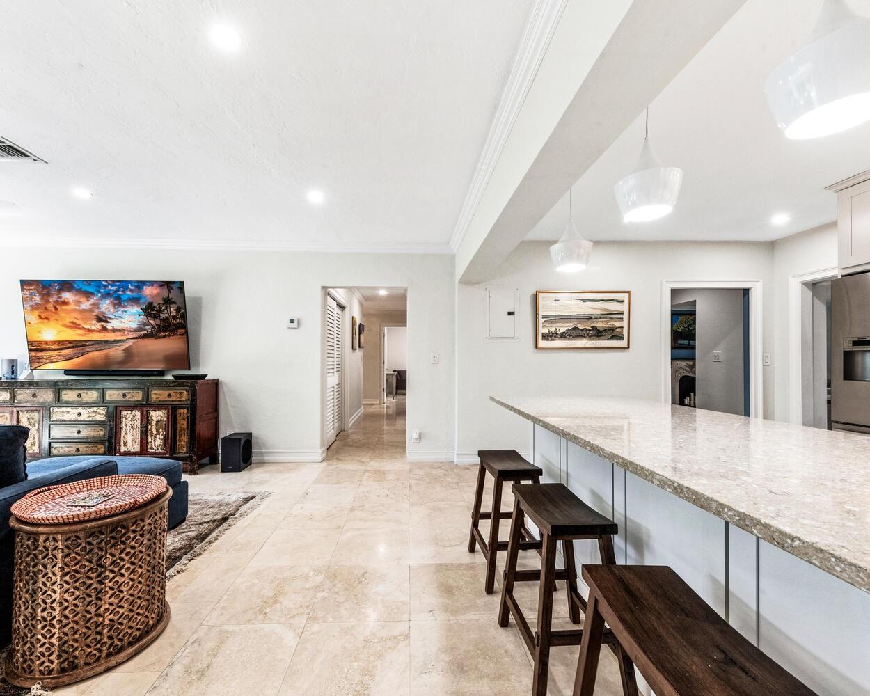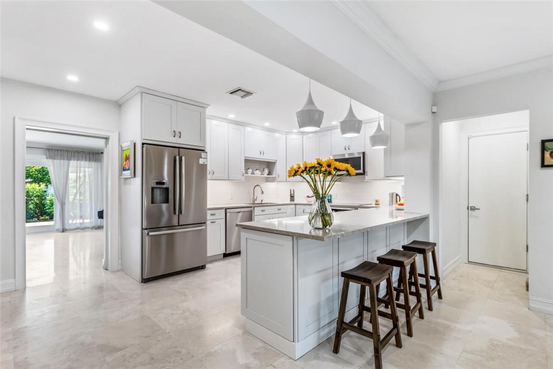 Coral Ridge Country Club Estate Home. 3 Bedrooms 3.1 Baths. All Impacted Windows & Doors! New kitchen as of 2021 with quartz countertops, Stainless Steel Bosch appliances. Primary bedroom has custom His & Hers Walk-in Closets. Terrace of primary bedroom is perfect to enjoy your morning coffee. Formal Dining, Living Room, Great Room enhance the spaciousness of the house. Salt water heated pool with new heater and pump. House has new AC unit. Hurricane Impact Garage Door! Barrel roof is from 2013. 2 Car Garage with loads of storage, workshop, and mini AC. All Duct work and electrical are new. Private Paradise with built-in Grill for entertaining. ****Chandelier"s do not stay!!!