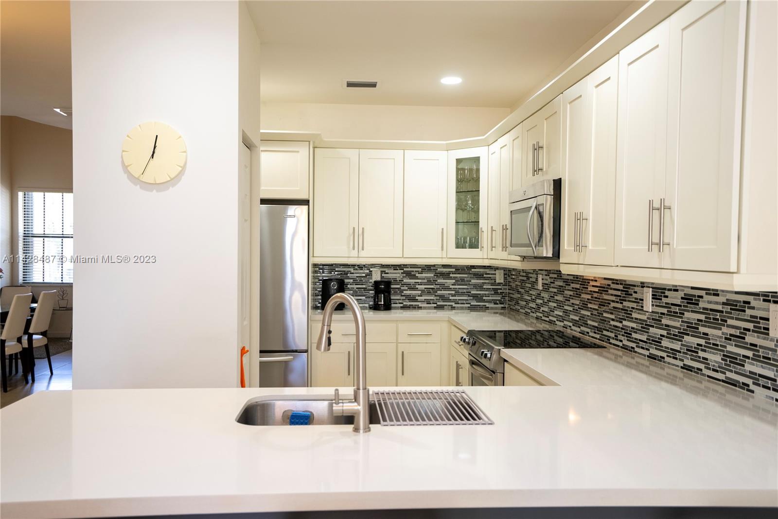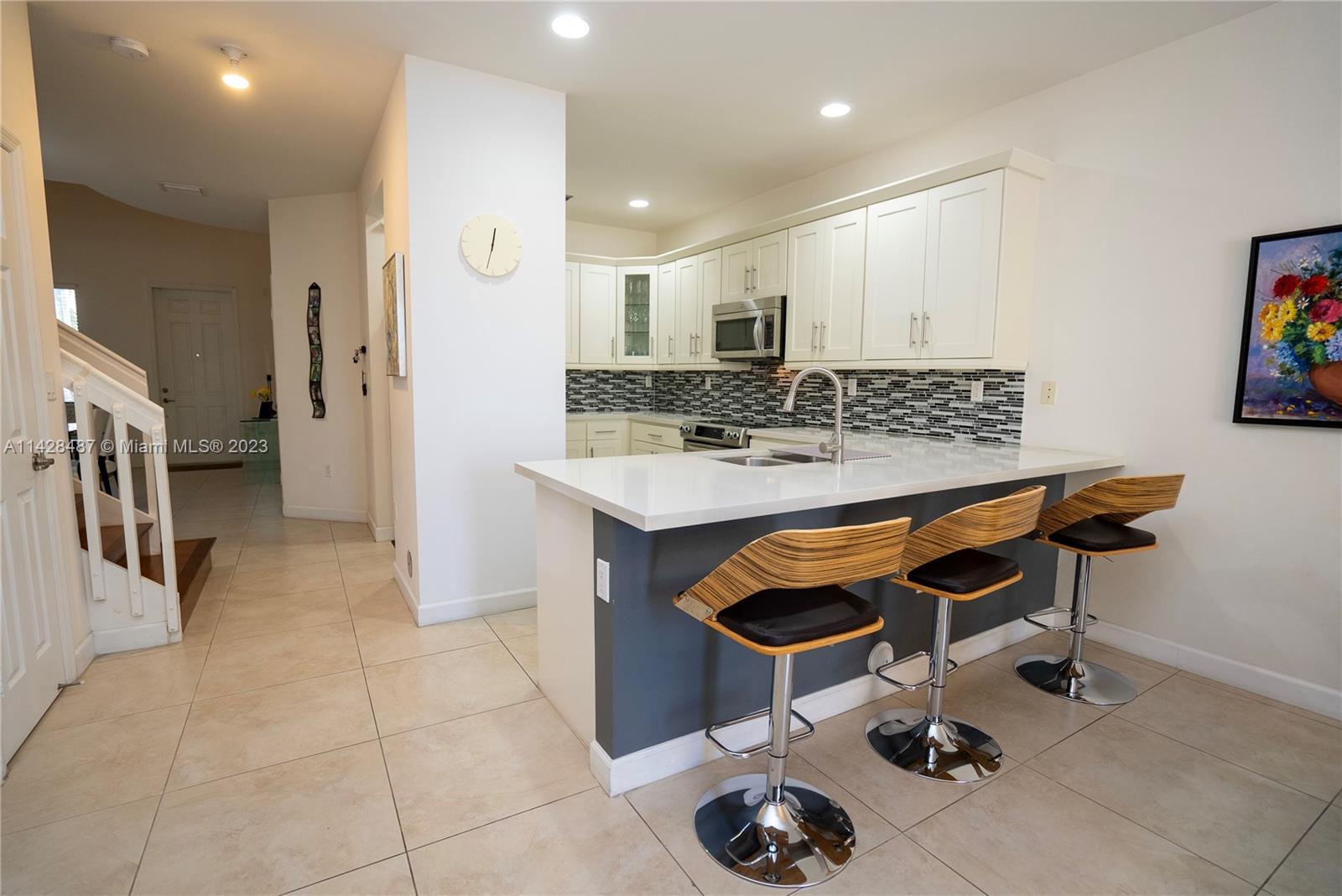 GREAT LOCATION!!! Desirable DORAL CAY. Beautiful townhouse in Doral with 3 bedrooms and 3 bathrooms. Spacious master Bedroom with two walking closets includes a covered balcony. One bedroom in the first level. Modern kitchen with large quartz countertop with breakfast bar, and fully equipped SS appliances. Spacious Laundry in second floor. One parking garage and up to three additional parking in front of the house. Community with a clubhouse featuring heated pool, sauna, gym and BBQ areas. Prestigious location in the heart of Doral surrounded by restaurants, shops, entertainment, A+ schools. Block away from Divine Savior Academy. PROPERTY IN EXCELENT CONDITIONS. A MUST SEE