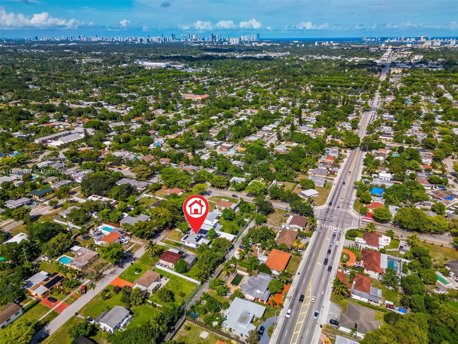 Welcome to your stunning and spacious three-bedroom, two-bath single-family home. Strategic location: 3 minutes from I95, 10 from North Miami Beach Bay Harbor, 12 from Miami Airport. CLOSE TO EVERYTHING: Eagewater, Design District, Downtown Wynwood, Brickell, Hallandale Hollywood, Fort Lauderdale. The beautiful and large backyard is a nature paradise, featuring one mango tree. With Solar panels.