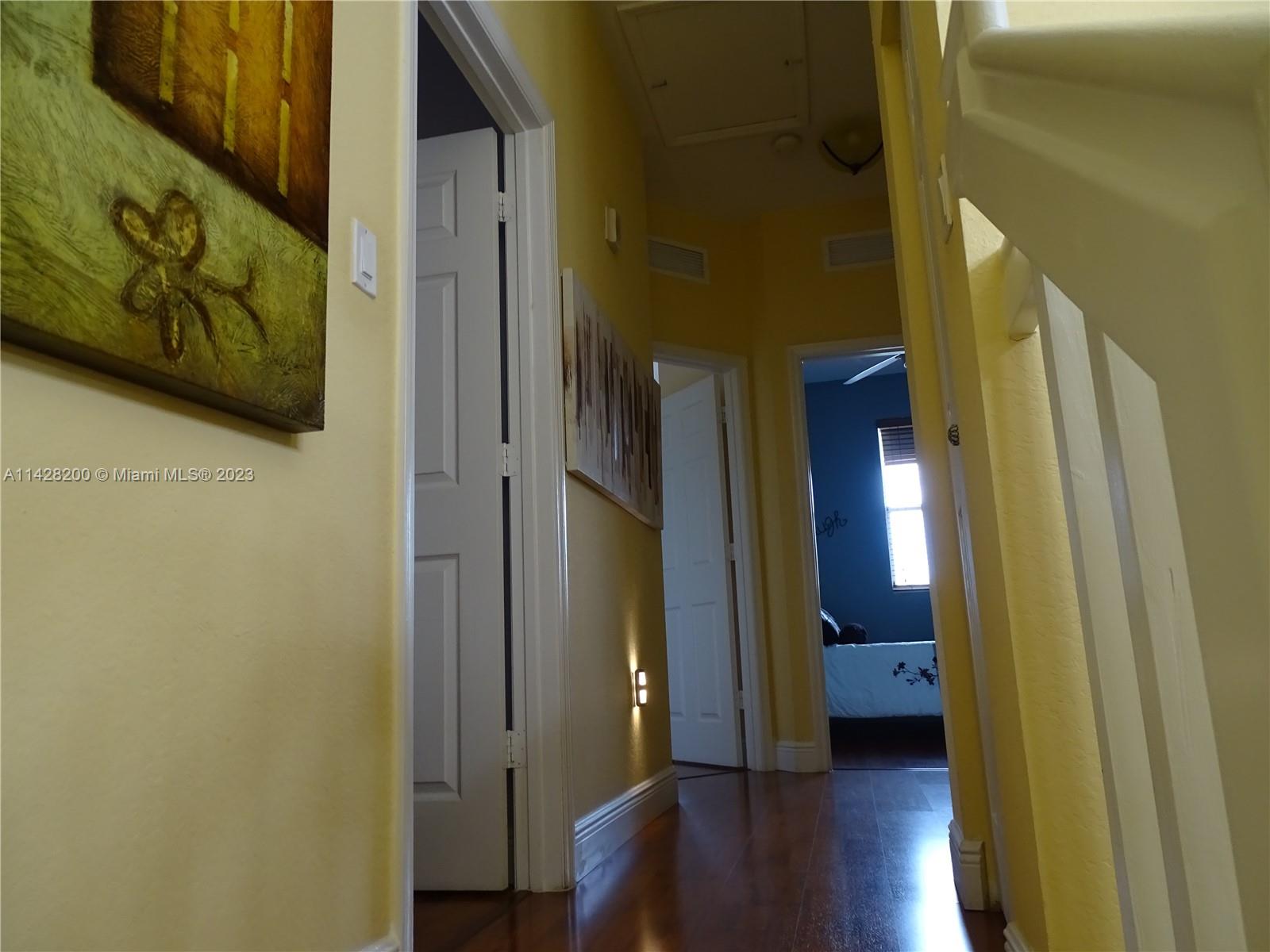 Welcome to your dream townhome in the highly sought at Coronado at Doral. This stunning property boasts 3 spacious bedrooms and 2.5 bathrooms, providing ample space for you and your loved ones to create lasting memories. As you step inside, you'll be greeted by a beautiful layout that exudes positive energy and love. The custom mirror and beautiful lamps add a touch of elegance and charm to every corner of this home. The kitchen featuring granite counters and white appliances that perfectly complement the wood flooring throughout. The impact windows not only enhance the aesthetic appeal of the townhome but also provide peace of mind and security. Don't miss out on the opportunity to make this townhome your own, this property is truly a gem.