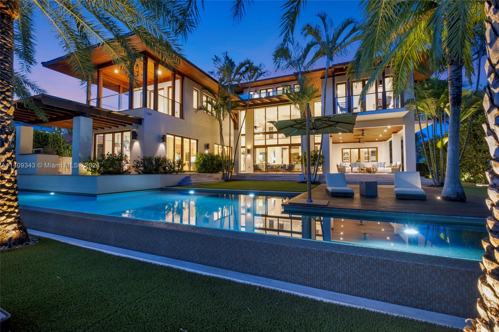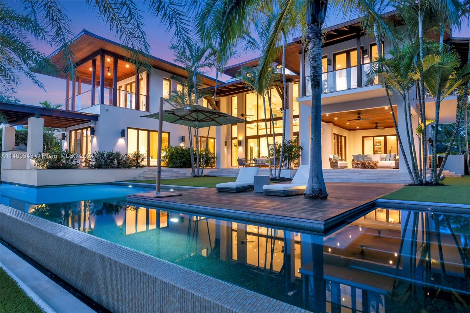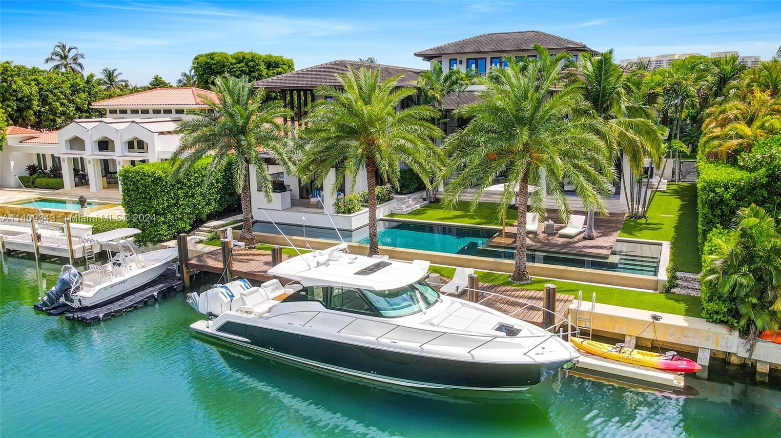 Welcome to your luxurious waterfront oasis, where natural stone and wood accents blend seamlessly with modern accents. Crafted by world-renowned architect Cesar Molina, this 5bed,6.5bath home offers a resort-like experience. A third-floor room with panoramic views, this residence offers ample space and comfort. Floor-to-ceiling windows immerse you in stunning natural island landscape, blending outdoor beauty with interior elegance, flooding the home with natural light. Refreshed in 2022,this home boasts indoor-outdoor living spaces perfect for entertaining. Dock accommodates yacht up to 80ft,offering a quick 5 minute boat ride to Bay. 9covered balconies,4terraces, and an infinity lap pool, creating a true yachtsman’s paradise. Experience luxury living in a prime waterfront location.