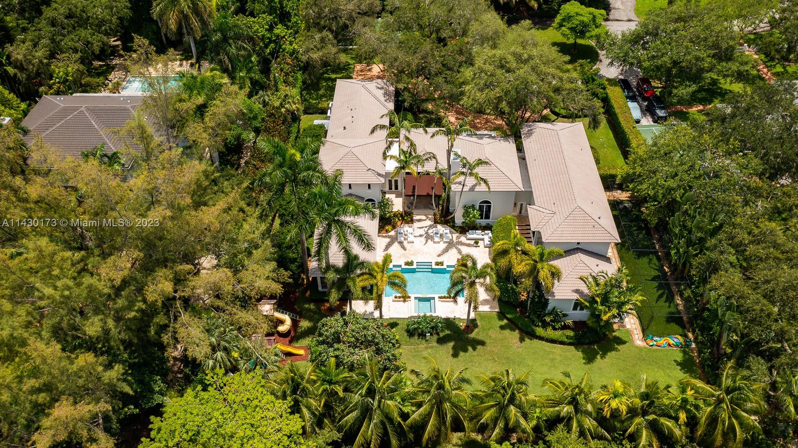 Fantastic opportunity to live on a private cul-de-sac in the exclusive, guard-gated community of Snapper Creek Lakes. Built in 2005, this 6 bed, 7.5 bath 6,528SF home was thoughtfully renovated in 2022, ensuring modern comforts and stylish living. This home boasts vaulted and beamed volume ceilings and abundant light throughout. A desirable layout features a primary suite on second level, formal living and dining rooms, an ample chef’s kitchen, and a spacious pool area with decks and gazebo perfect for entertaining. Ideal family home with basketball court, batting cage, playground, and ample yard. Snapper Creek Lakes provides amenities such as a private marina available to residents only, a clubhouse, and a 24/7 security patrol.