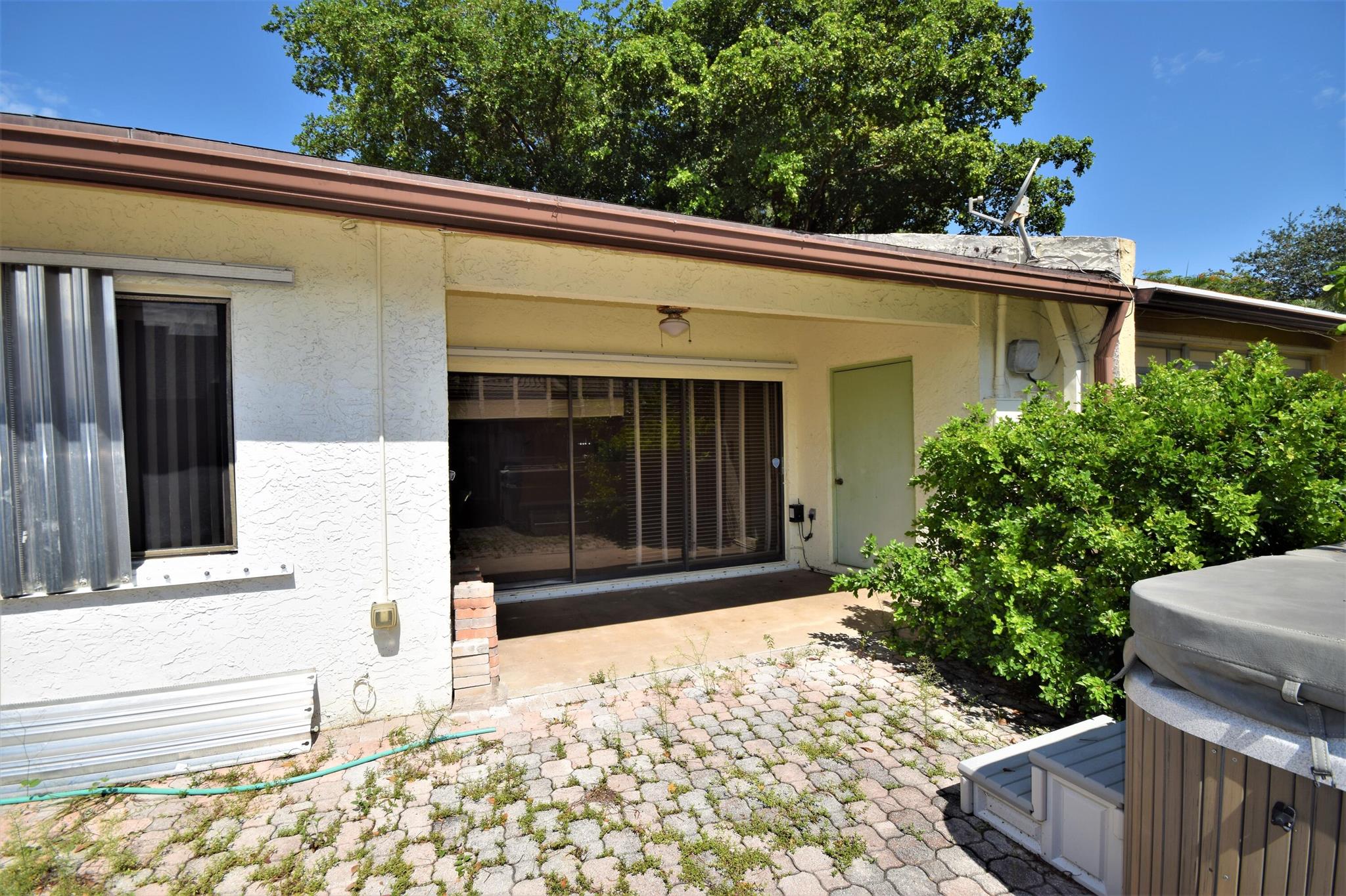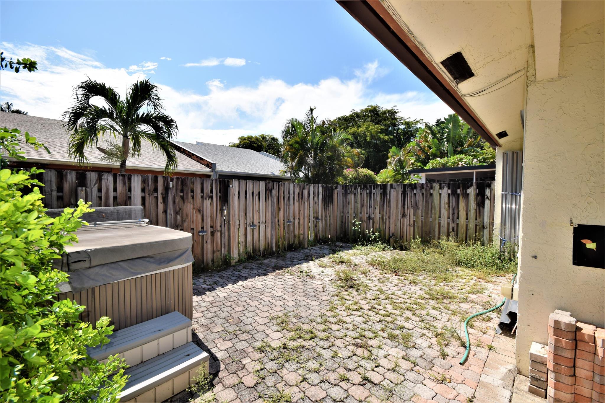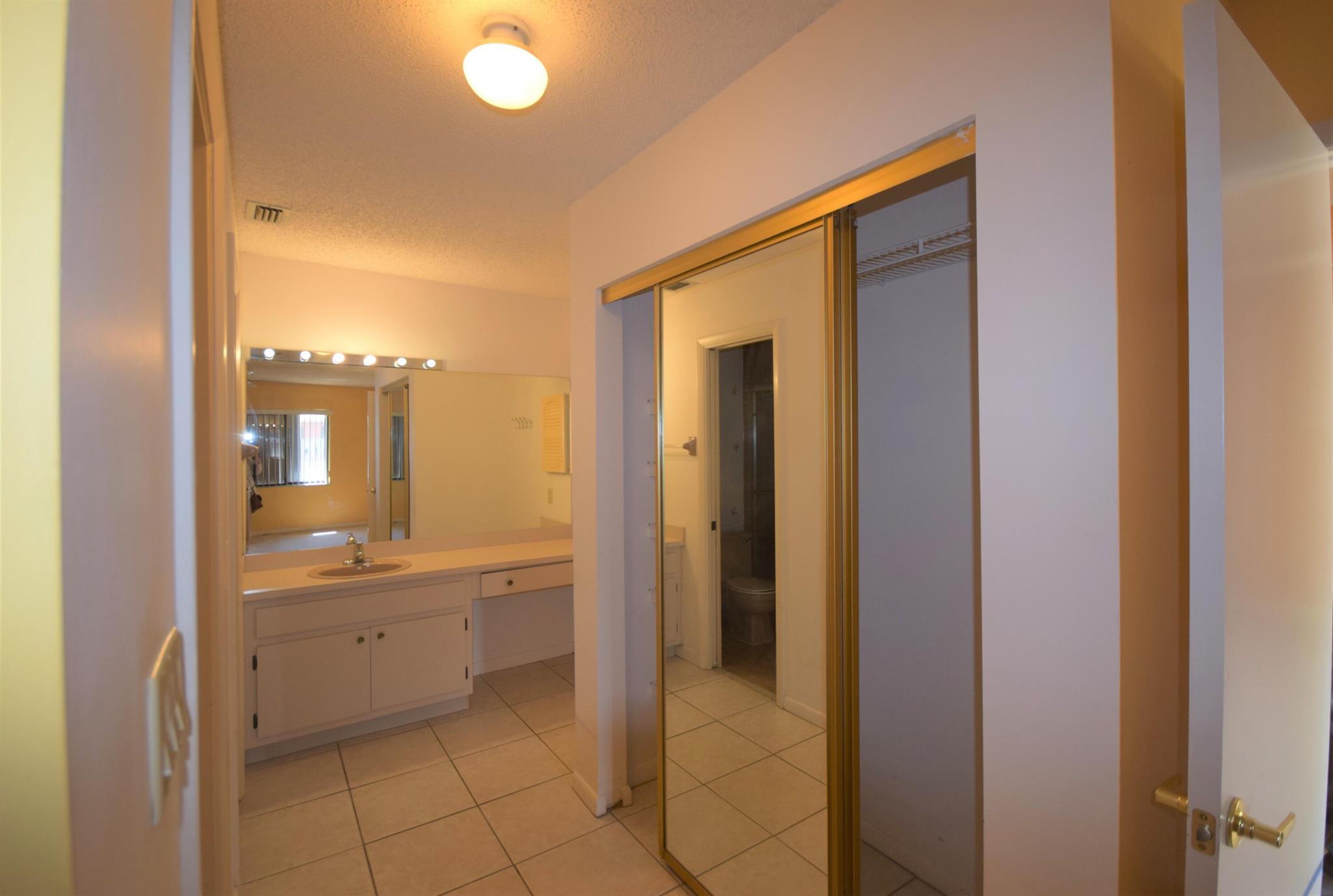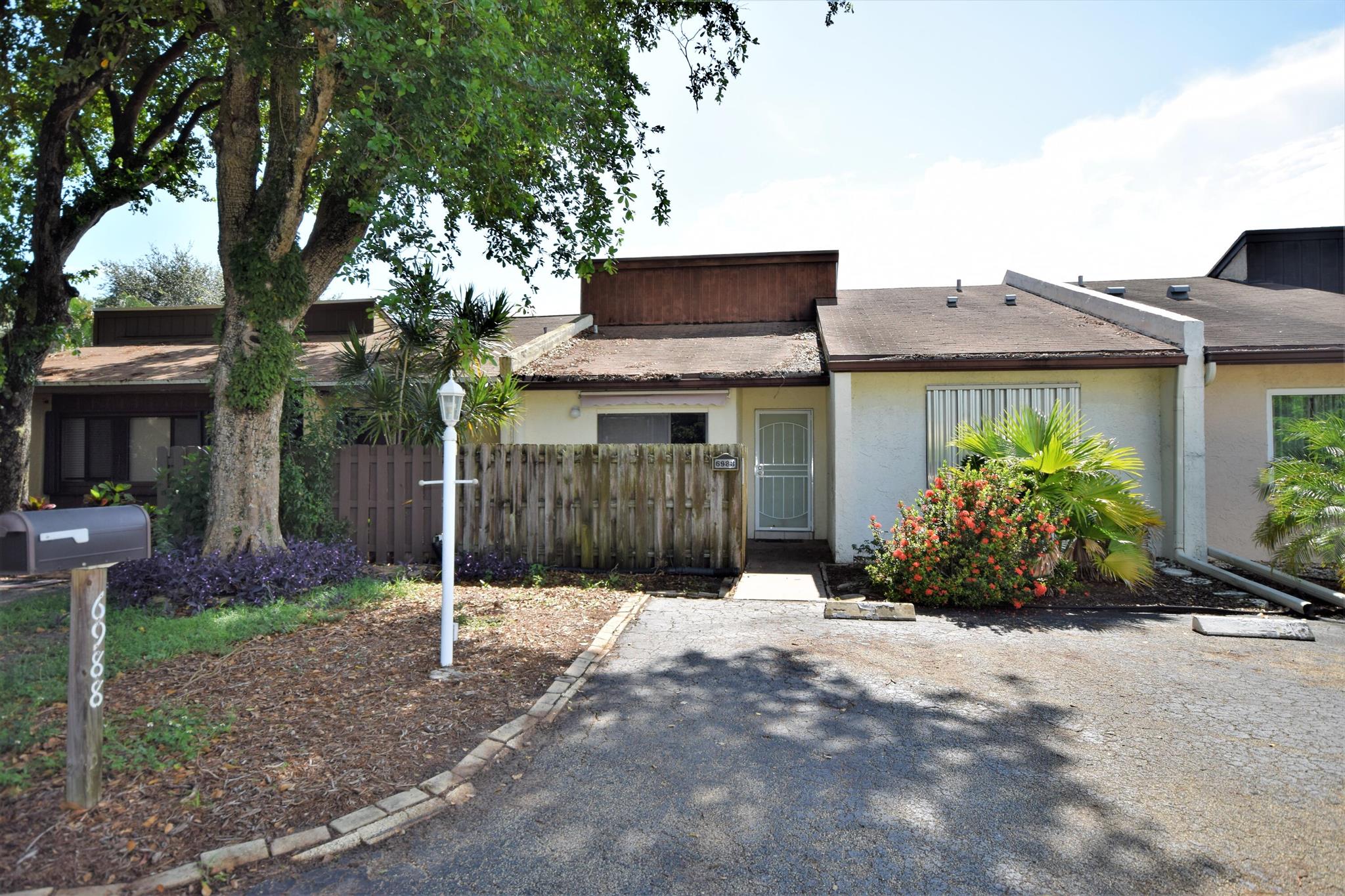 Welcome to this Two Bedroom Two Bath single story villa located in all ages community of Palm Aire Village. This villa features a charming front courtyard with sliders from the kitchen providing a cozy and intimate outdoor space to relax and entertain. Inside the villa features a split bedroom floor plan, tile throughout the living areas, newer kitchen appliances and a vaulted ceiling. The bedrooms are both carpeted and Master Bedroom features an en suite bathroom and walk in closet. The oversized utility room has a washer and dryer and room for storage. The fully fenced backyard area features a covered patio and a large open patio with pavers. This property presents a fantastic opportunity to buyers looking for a renovation project. No HOA and pet-friendly!