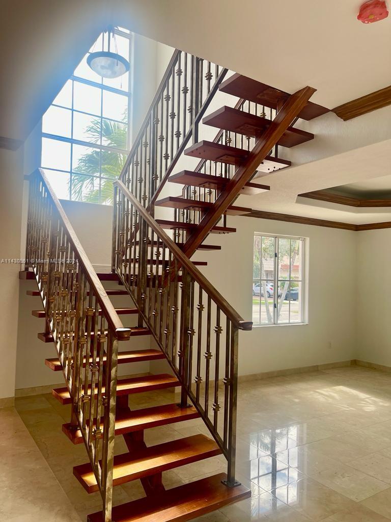This lakefront home has an elegant stairwell that leads up to the a large master bedroom with an updated master bathroom with a hot tub and bidet. The upstairs also has 2 large bedrooms with a full bathroom and a loft which possibly can be a 5th bedroom. The home features a fourth large bedroom on the first floor for in-law quarters or a guest bedroom with a full bathroom downstairs. Beautiful Marble floors on the ground floor and wood floors on the second level. The gourmet kitchen opens to the family room and breakfast nook, beautiful living room, and formal dining . French doors open to the patio with A Chickee hut, an outdoor bar, and a pool with a jacuzzi by the serene lake. Possible seller contribution . This house is located by Miami Lakes in Unincorporated Miami-Dade.