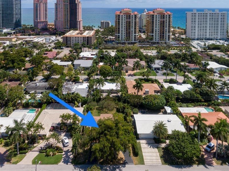 Just two blocks to the beach and one block to the North Gate of the 180 acre Birch State Park! This mid century home sits on a lot that's 8250 square feet. Great little vacation rental for income stream. The kitchen and bathrooms remain in almost perfect condition. Light colored terrazzo floors throughout which are also in great shape. The home is selling for lot value, but there's plenty to work with if you want to upgrade the existing house and lots of room for a nice pool. There's a great kid's park just two blocks away too. Walking distance to the new Auberge, SunTower and Pelican Beach resorts and restaurants.