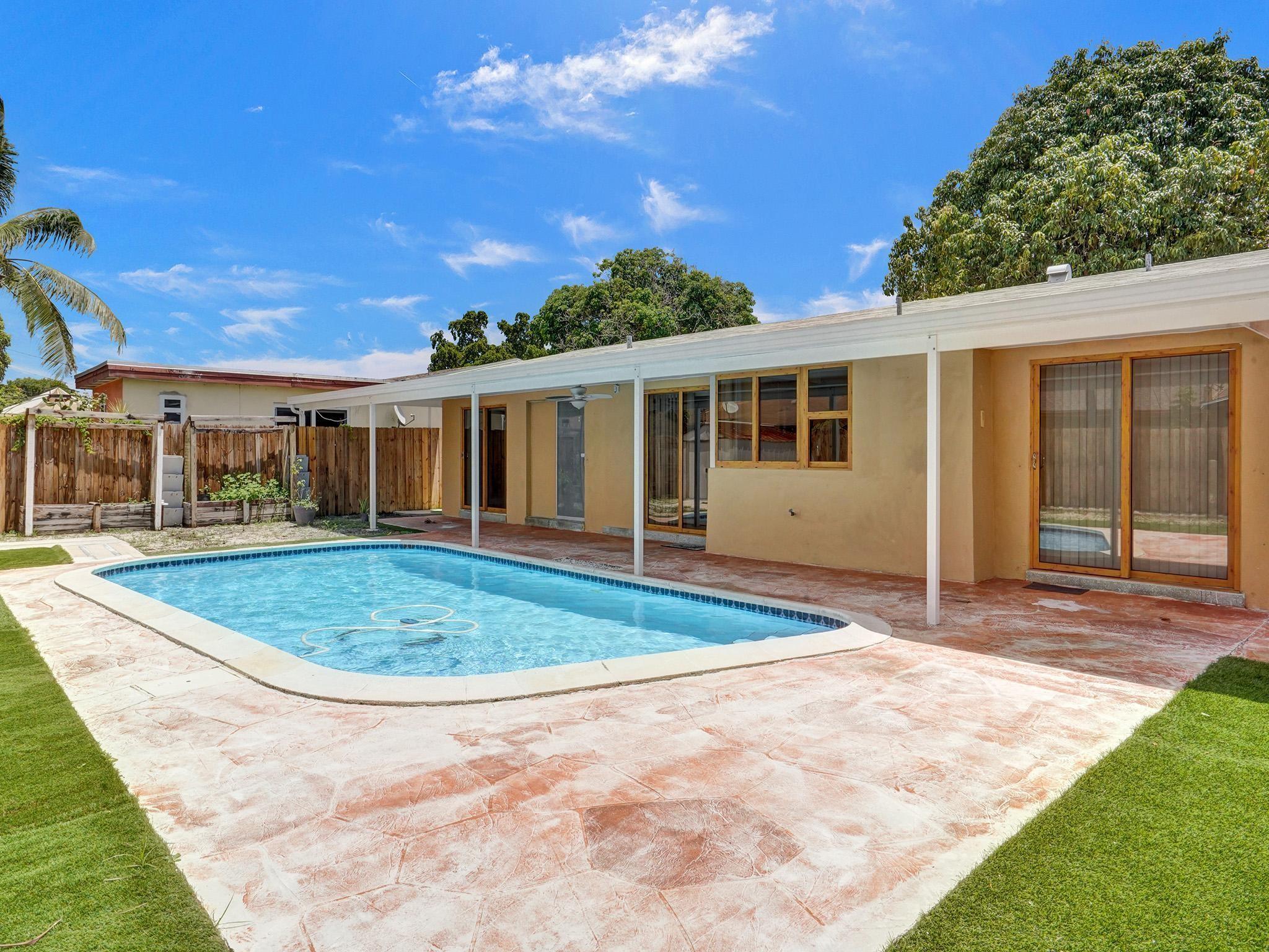 Welcome to this charming well maintained home, nestled in a quiet neighborhood of historic Miramar. The Spacious open floor plan boasts lots of natural light and windows. The main house is a 2 bedroom 1 bathroom with an extra office nook in the laundry room. There is a Full 1 bed studio in the garage with a separate entrance on the side. The garage can be converted back easily if desired or enjoy the extra space or as an income property. The Backyard is ex-large with a beautiful newly diamond brited pool and covered patio for entertaining family and friends. The kitchen has stainless appliances, granite counters, and ample cabinet space. This home has a Brand New 2022 Roof, circular driveway for ample parking and fully fenced in backyard. Don't miss this meticulously kept home!