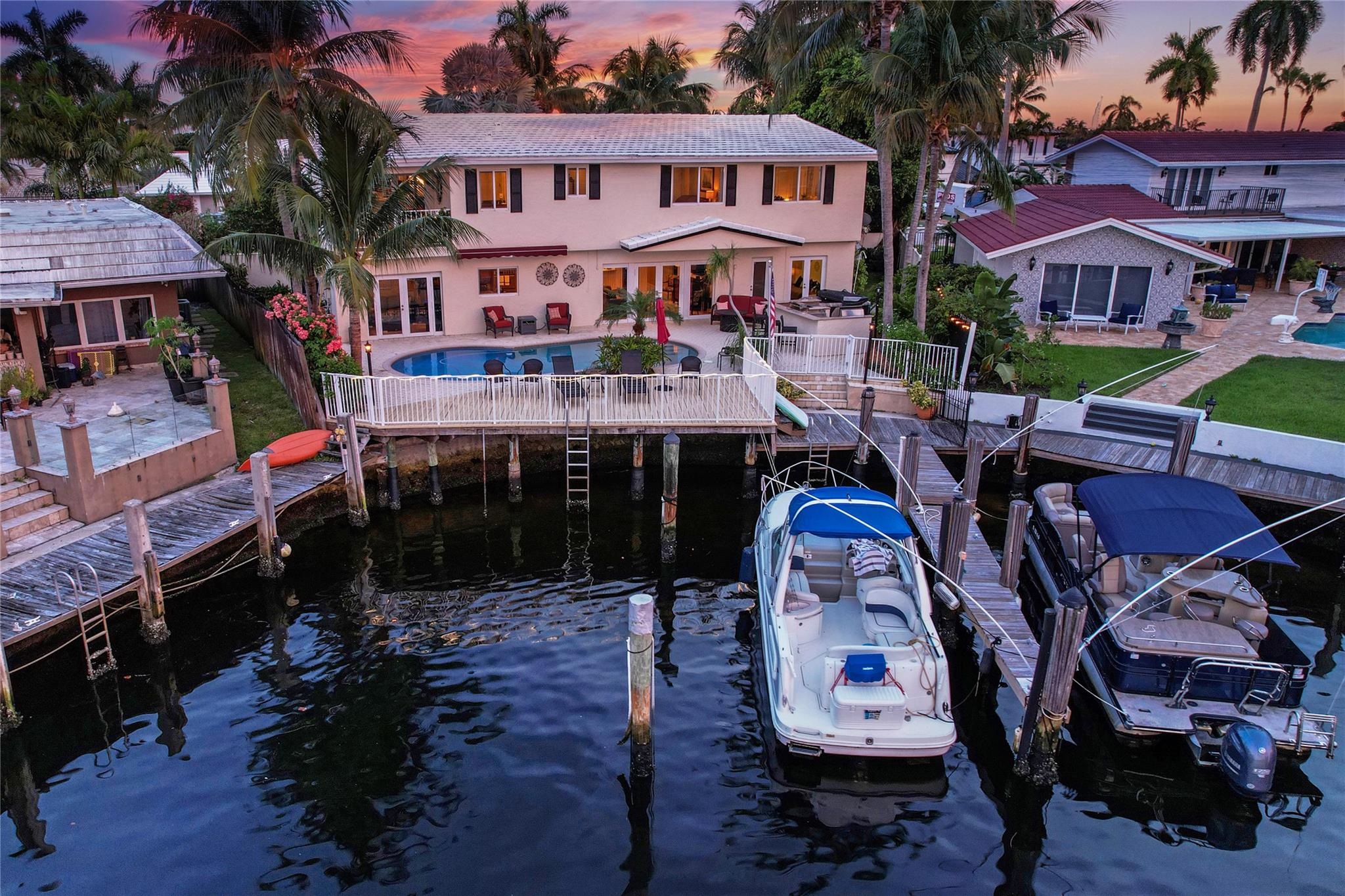 MAGNIFICENT 6 BEDROOM, 3.5 BATH estate located in the EXCLUSIVE SANTA BARBARA SHORES! This IMMACULATELY kept property offers an UNOBSTRUCTED view of LAKE SANTA BARBARA as well as 50' of DIRECT DEEP WATERFRONT! Add in a finger DOCK, UNRESTRICTED OCEAN ACCESS with the INTRACOASTAL minutes away and you have a BOATER'S DREAM! Updates include IMPACT windows & doors, ULTIMATE backyard set up with SUMMER KITCHEN, Hot Tub, HEATED pool with NEW pool pump, and WHOLE house GENERATOR! Add in a GOURMET kitchen, Sub-Zero WINE COOLER, HUGE MASTER SUITE that overlooks the lake and you have the ULTIMATE spot for ENTERTAINING or just ENJOYING the FLORIDA LIFESTYLE!