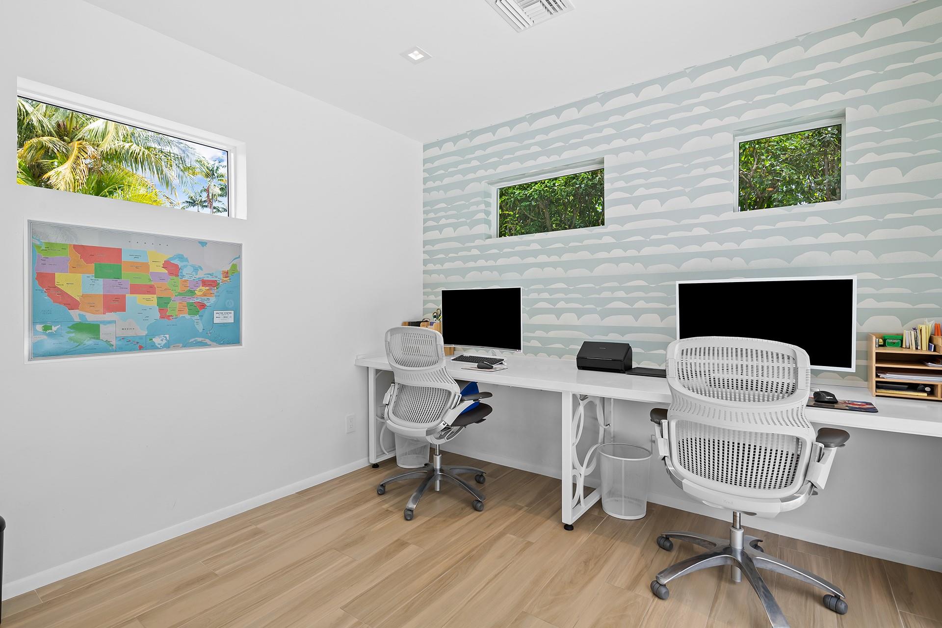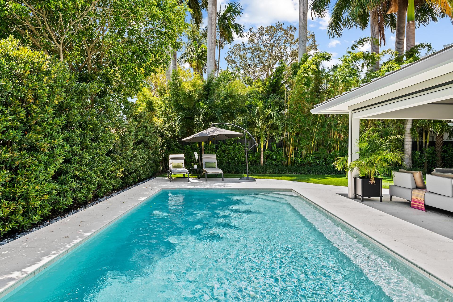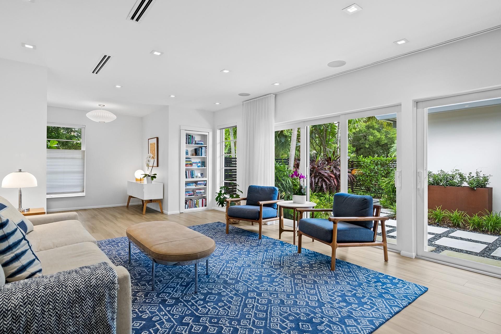 On the MOST beautiful street, in the MOST beautiful neighborhood - RIO VISTA - sits this highly renovated mid-century style "turnkey" residence offering 4 bedrooms, 3 Full baths, office/den, amazing outdoor living area with motorized phantom screens and gorgeous salt pool. Private/gated interior courtyard brings dappled sunlight inside, spectacular entertaining floorplan with center kitchen island, Italian appliances, opens onto the FAB outdoor living areas. Property is lush w/tropical landscaping adorning the 8869 SF lot. The front driveway can accommodate 4 vehicles comfortably. All impact windows/doors, roof, electric, plumbing, a/c’s, pool and water heater and gas generator hook up all new in 2019/2020.