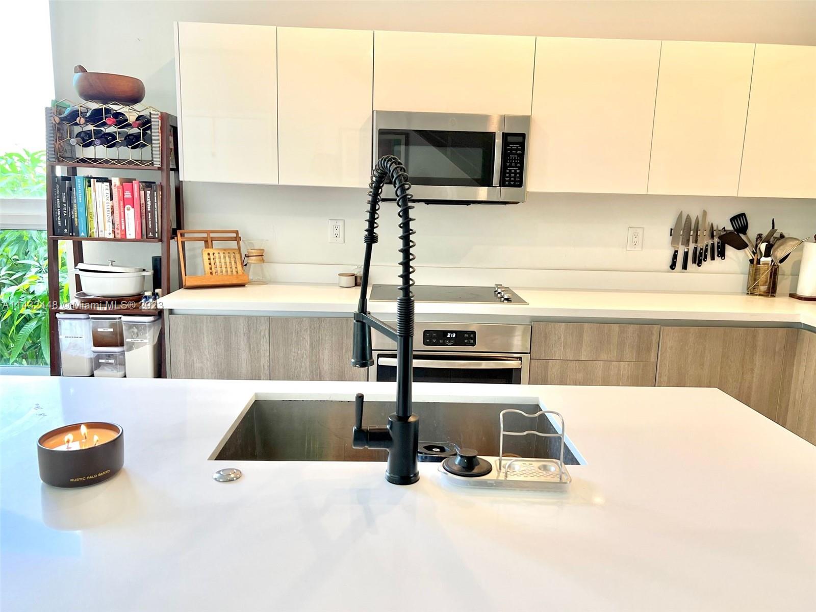 Explore quiet, pet friendly Parkview Villas with its corner lot home boasting driveway parking. Close to Arch Creek Park and Oleta River state park, this residence features a spacious open floor plan, 10' ceiling impact windows, and garden views. The chef's kitchen showcases Italian cabinets, steel appliances, and oversized quartz island. A full bath and large bedroom are on the 1st floor. Upstairs, find a master suite, laundry, 2 bedrooms, and a bath. HOA covers insurance, water, waste & maintenance.