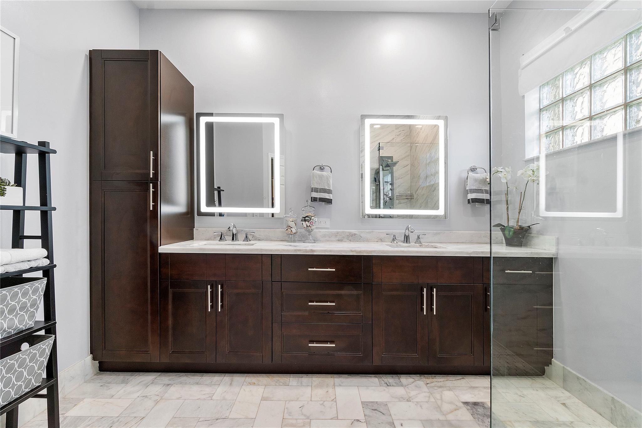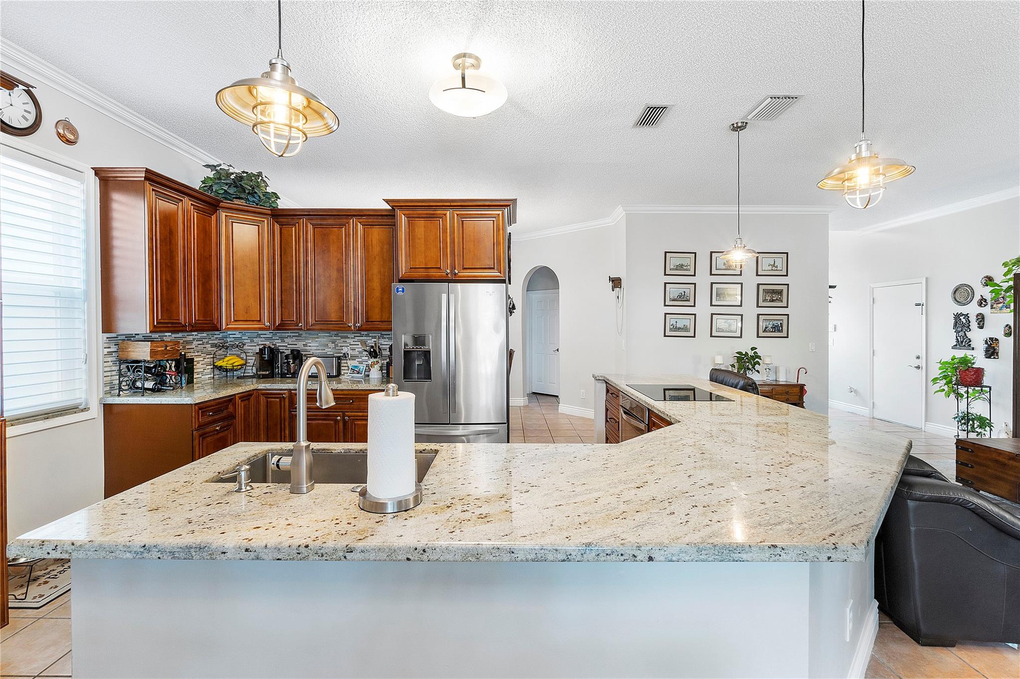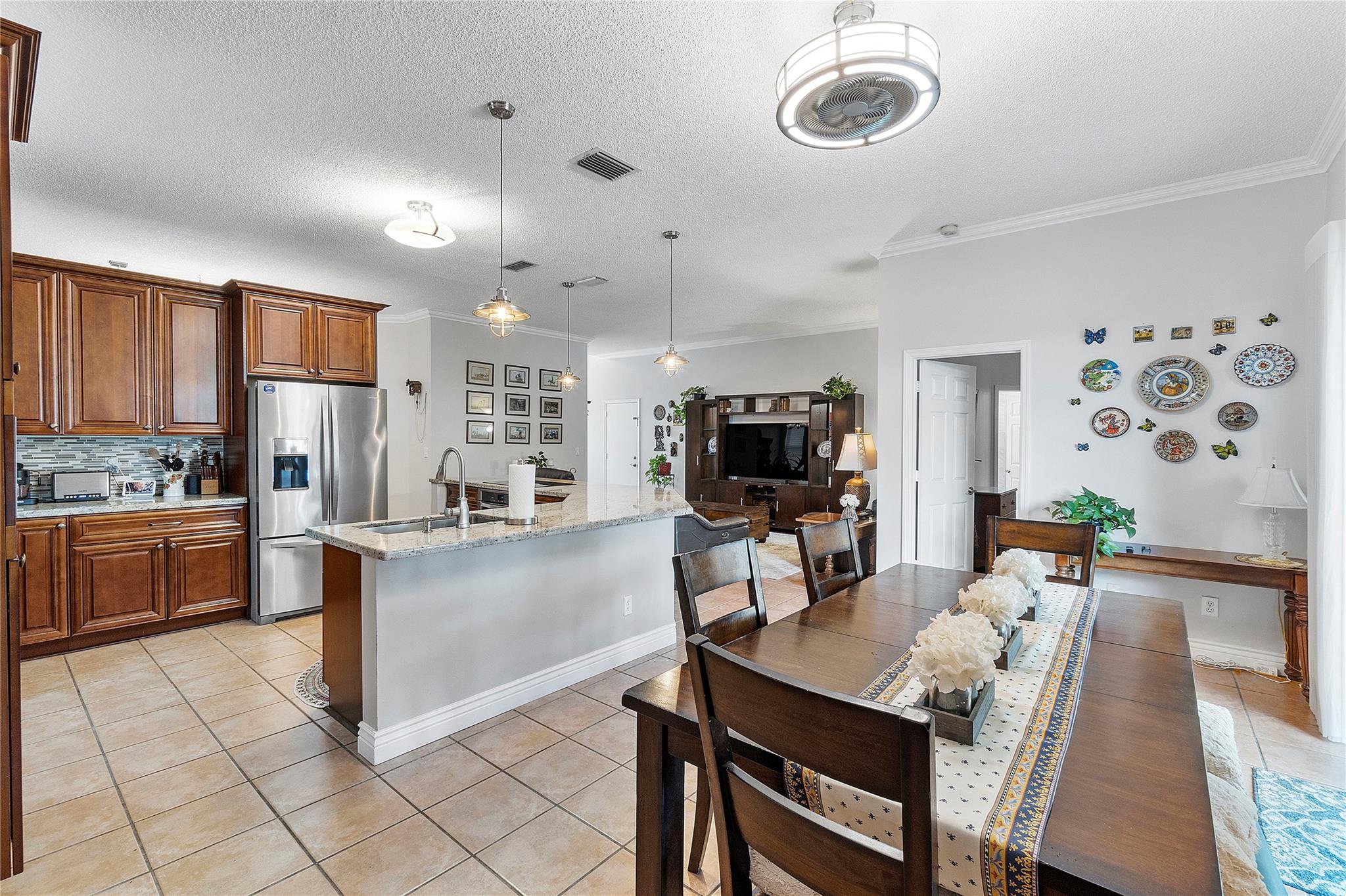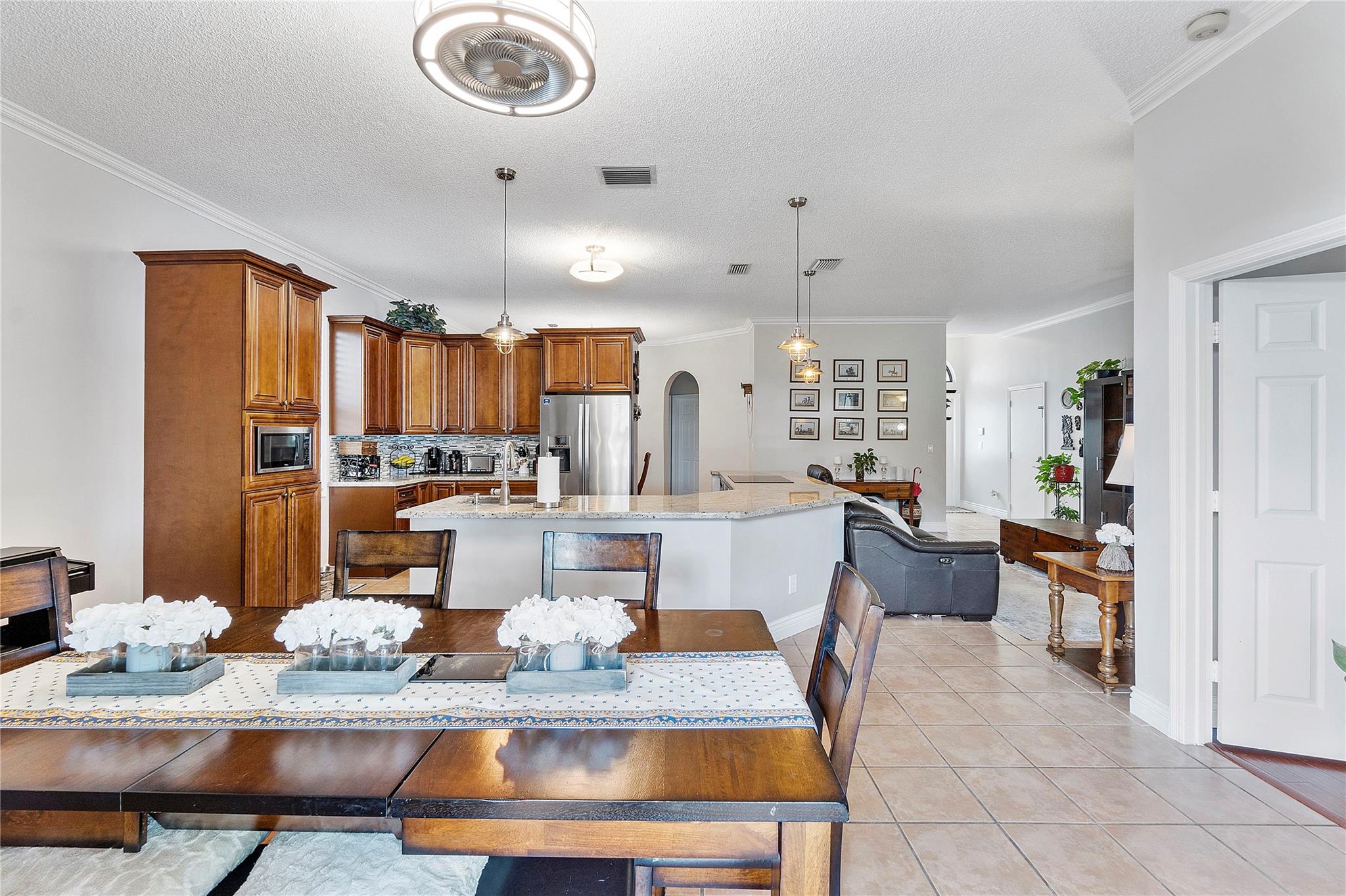 Highly sought after one story 3 bedroom home on the lake with spectacular views. You will notice the impact windows and doors throughout. The open concept kitchen with the spacious island for cooking and entertaining. Kitchen updated with granite and wood cabinets and all stainless appliances. Primary bedroom with wood floors and walk in closet-with recently updated ensuite frameless shower and dual sinks. Formal dining room and two additional bedrooms with another full bathroom. The garage was recently redone with cabinets and flooring to store everyones equipment, now can we talk about the back with the extended patio. The house also has recently installed solar panels. Don't miss out on making this your home in an excellent school district and close to major roadways and shopping
