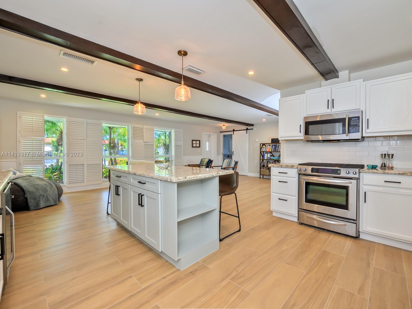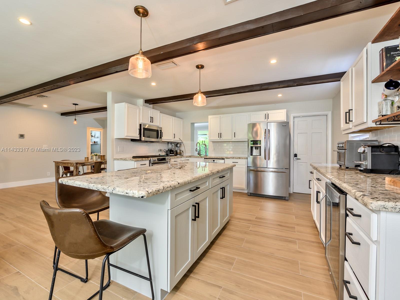 This beautiful home is the lowest priced 3/2 in prestigious Hollywood Lakes. Features impact windows throughout, for peace of mind & security. New porcelain tile wood-look floors exude elegance & the main roof replaced 2009 is barrel tile. The 2020 tankless water heater, new washer dryer & July 2023 AC install ensure efficiency. Indulge your culinary desires w/a 4-burner gas range, granite countertops & stainless-steel appliances. The kitchen features a 2 tap kegerator. Entertain outdoors on the extended patio, redone in 2022 w/new aluminum roof & stamped concrete floors. Features PVC plumbing & a 1 garage. Revel in the prestige of Hollywood Lakes, where beaches are mere minutes away. Positioned between Miami & Fort Lauderdale, a centrally located gem offers the best of both worlds.