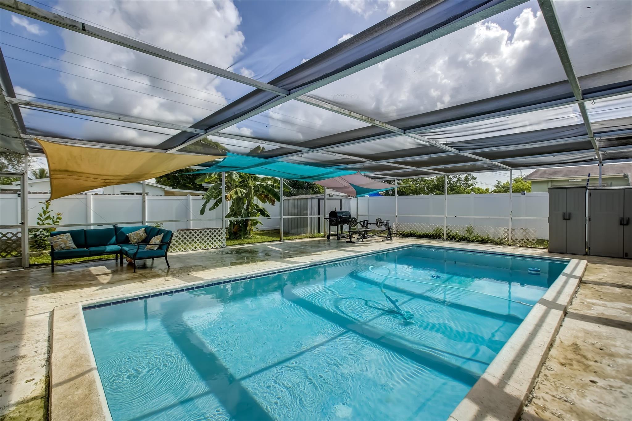 RARE & UNIQUE 5 BEDROOM HOME WITH IN-LAW SUITE. Impact windows and doors throughout. Great in-ground pool. Smart Home. New electrical panels inside and out. New water heater. Other upgrades include new insulation in the attic, new exterior paint, newer A/C along with AC ducts and vents, & new flooring throughout. Roof only 8 years old. Ring camera and nest thermostats. Current configuration has a separate efficiency (in-law suite) with kitchenette, walk in closet and full bathroom. Currently rented month to month for $1350. The studio has private entrance and fenced in yard space for privacy. Easily converted back into the main house. Efficiency video on virtual tour. $5,000 SELLERS CREDIT TO BUYER WITH FULL PRICE OFFER OR ABOVE. Don't let this RARE opportunity pass you by.