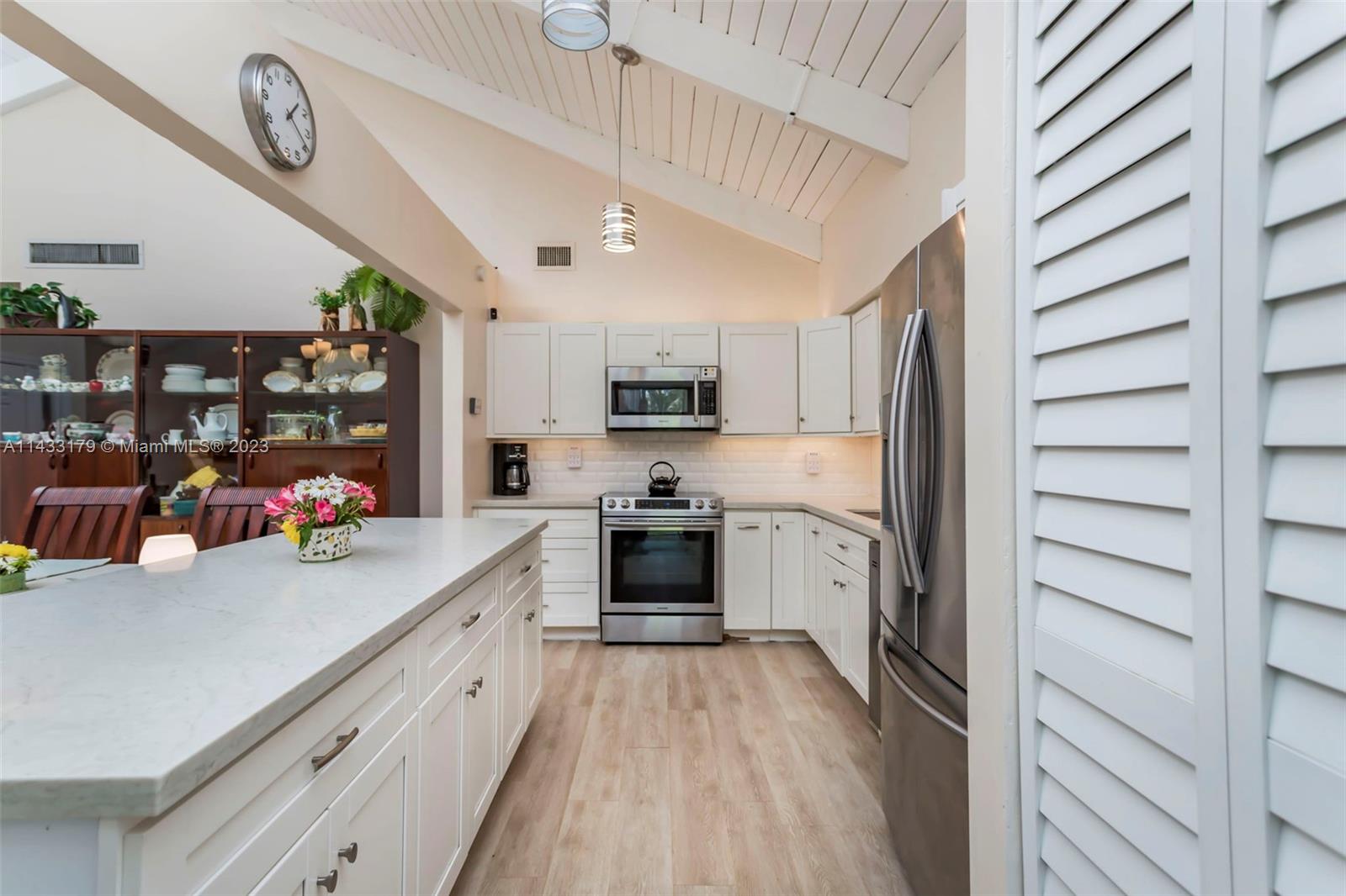 SUPER CUTE 3 BEDROOM 2 BATH WATERVIEW VILLA IN THE HEART OF DAVIE! GREETED BY HIGH VOLUME WOOD PLANK CEILINGS, OPEN MODERN KITCHEN FEAUTURING STAINLESS STEAL APPLIANCES & QUARTZ COUNTER TOPS PERFECT FOR ENTERTAINING, LARGE LIVING SPACE WITH BEAUTIFUL VIEWS OF THE OPEN BACK YARD. MODERN VINYL FLOORING THROUGHOUT. BOTH BATHROOMS HAVE BEEN UPDATED. 2020 A/C. TANKLESS WATERHEATER. EXTERIOR FEAUTURES INCLUDE ACCORDION SHUTTERS, PATIO FROM THE PRIMARY, SCREENED IN PATIO, OUTDOOR PATIO WITH VIEWS OF THE WATER AND FRUIT TREES (MANGO & AVOCADO). PRIME LOCATION TO SHOPPING, GROCERIES, RESTAURANTS, PLUS EASY ACCESS TO 595 AN 95! LOW HOA WITH TWO COMMUNITY POOLS. 2 ASSIGNED PARKING SPACES