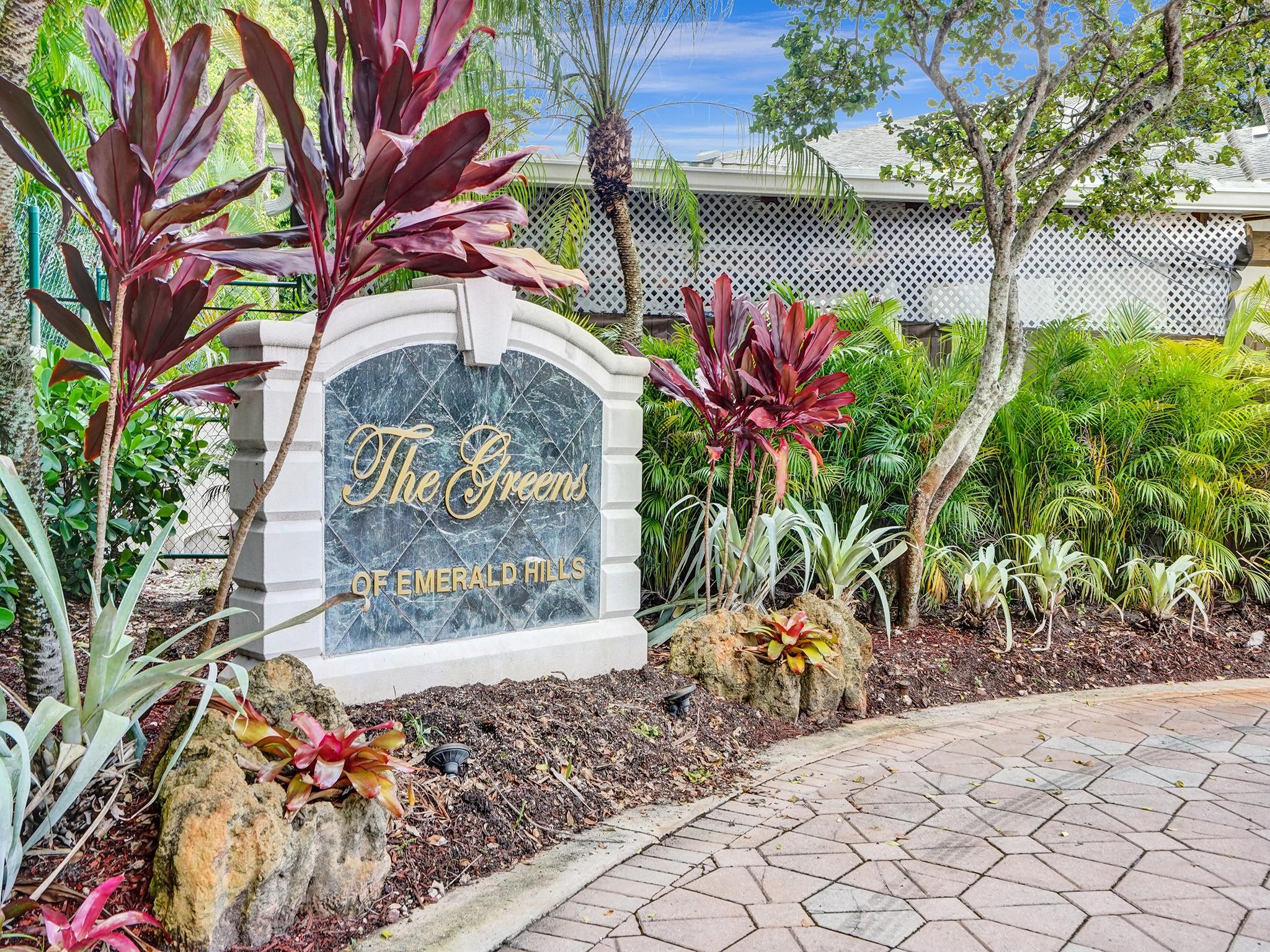 Welcome Home! Nestled in the coveted gated community of The Greens of Emerald Hills on a corner lot, you will love this 3BD/2.5BR Pool home. Walk in to an open flow home with split bedroom layout. Kitchen, Master & LR have sliding doors opening up to the LARGE pool & patio area w/ a new pergola & turf. TREMENDOUS room on patio for a BBQ & comfortable outdoor living. LOVELY Master BD w/ updated BR & BIG walk-in closet. Granite countertops in kitchen w/ newer appliances. GORGEOUS vaulted wood beam ceiling. New insulation in the attic, AC unit, Air ducts and Smart Thermostatic installed. WONDERFUL community on the golf course, extremely well maintained! Close to dining, houses of worship, shops, I-95, Turnpike, airports, only a few miles from the beach & more! THIS WON'T LAST! SEE IT TODAY!