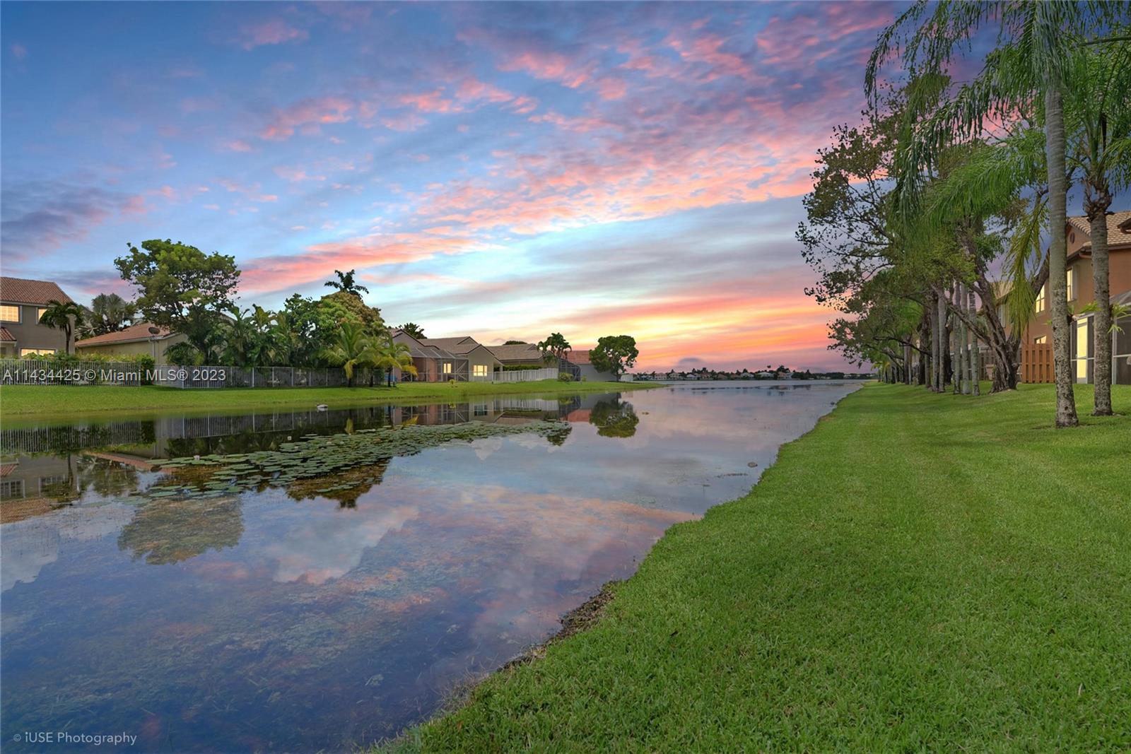 Immaculate 3 Bed/2.5 Bathrooms Townhouse on water in sought-after Weston, new paint inside & outside, upgraded aluminum kitchen appliances, impact windows & accordion shutters give high level of protection. His & Her closet in MB, Two Good size Bedrooms with Jack and Jill Bath, high hats led lights in kitchen & dining, tiled screened patio overlooking waterfront, alarm system ready, high speed fiber internet available. Community pool and recreation area, A+ schools (Gator Run, Falcon Cove, Cypress Bay), easy access to I-75, I595, Sawgrass. Equal Housing Opportunity.