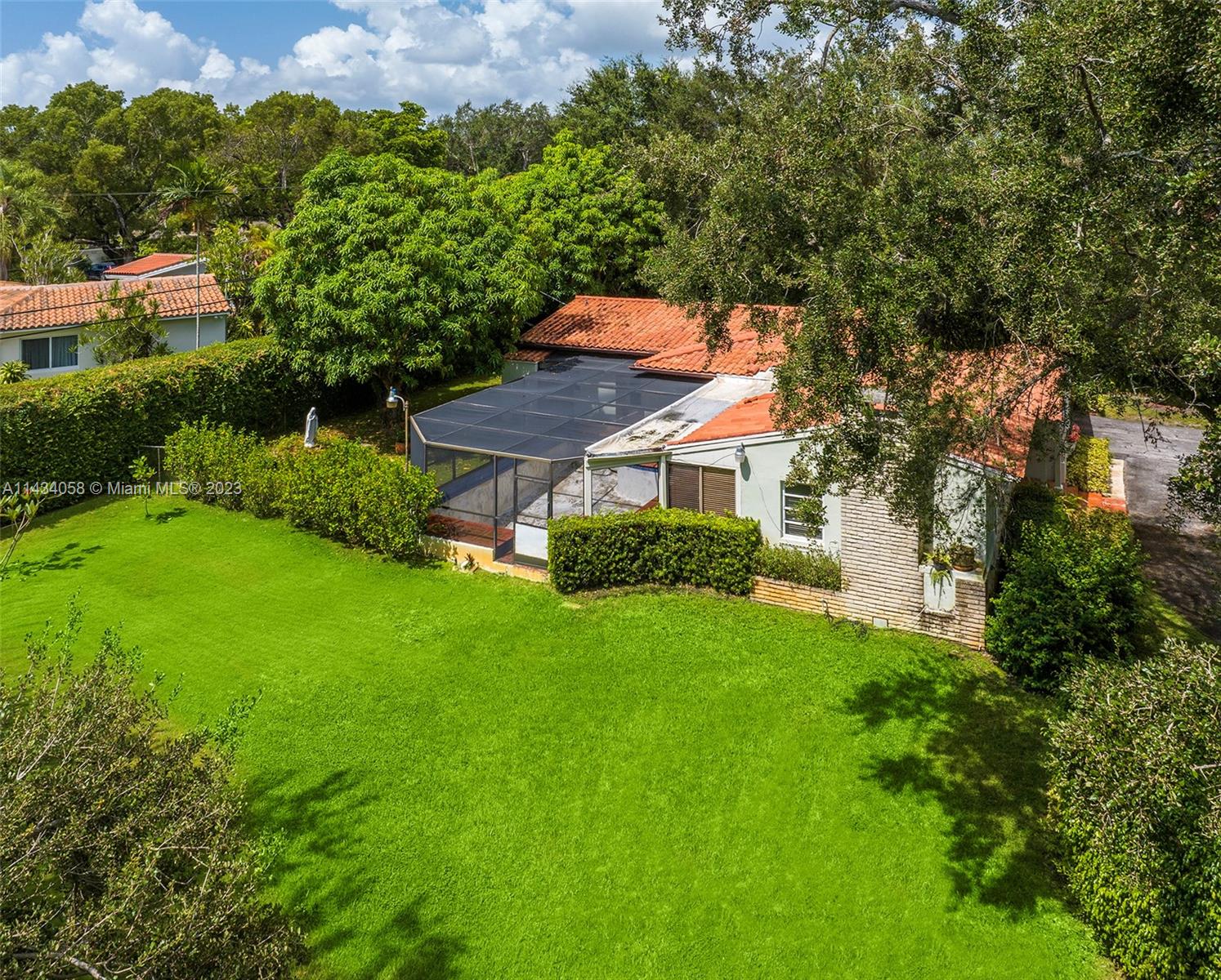 Rare double lot on Catalonia Avenue, in Coral Gables. Great opportunity to build your dream home, or remodel. Beautiful 17,604 SF double lot, with oak trees, and lush landscaping. The property is situated on a lovely quiet street in one of the most prestigious residential, and historical areas, of Coral Gables. The existing 4 bed/3 bath residence features a charming living room with original Florida pine wood paneling, cathedral ceiling, glass sliding doors with pine moldings, and original terrazzo flooring. Steps to The Biltmore Hotel and Golf Club, Coral Gables Golf Course and Miracle Mile.