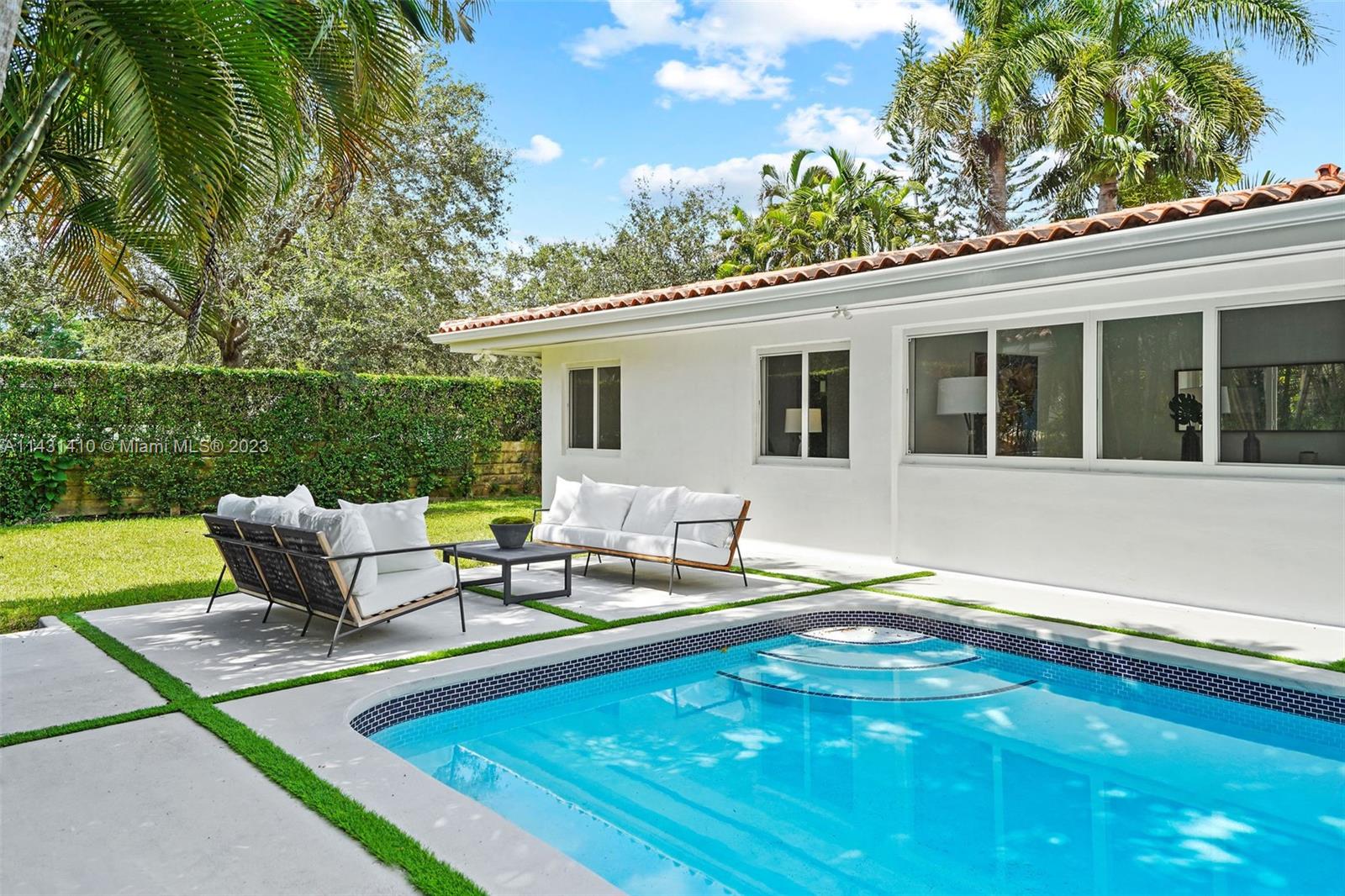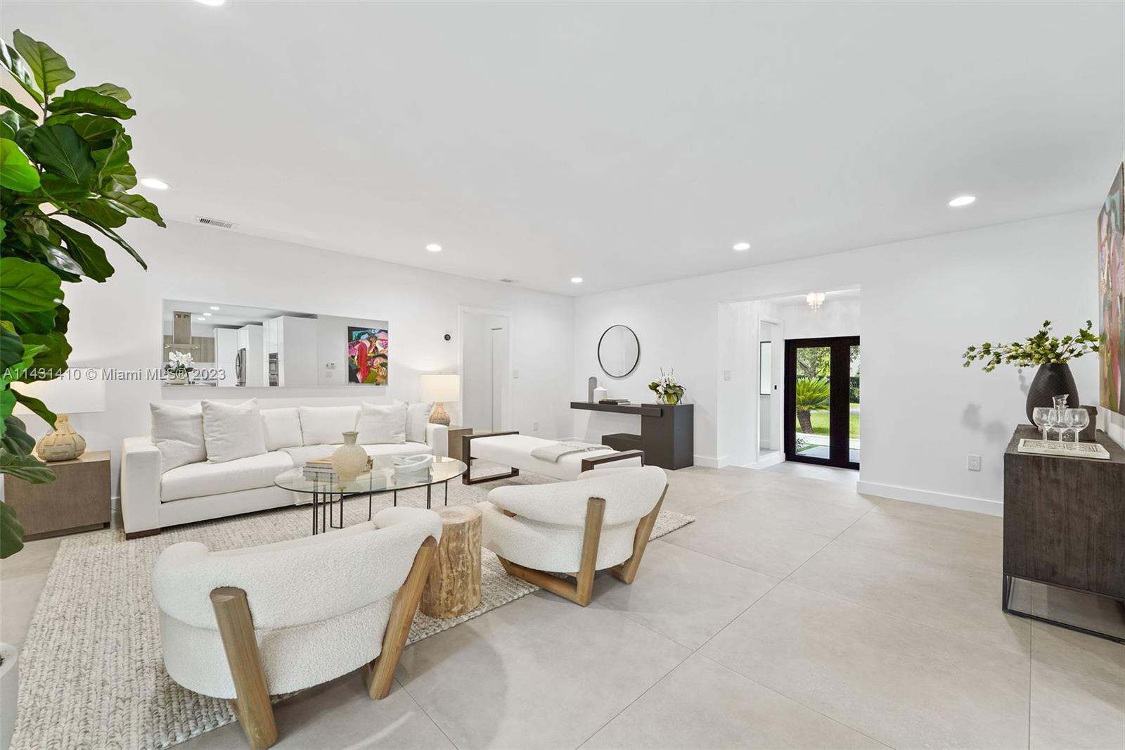 Beautiful, renovated home in best location in Coral Gables. Open concept living areas with excellent distribution of 4 bedrooms with 4 "en suite" baths plus guest powder room for your guests. Elegantly appointed kitchen w/ smart appliances, Italian YAMINI kitchen and quartz countertop island. Four sets of french doors overlooking the pool provide a light, bright home and all flooring is seamless 40” tiles, very easy to maintain. New hurricane Windows with double front door, new landscaping with mature royal palms. New A/C units, SMART House, 2 Car Garage. Must see family home with best schools and 1 block to Riveria Country Club and close to Biltmore. Walk to Baptist Hosptial and UM. Great family home or investment. Available immediately. May be larger than tax records.