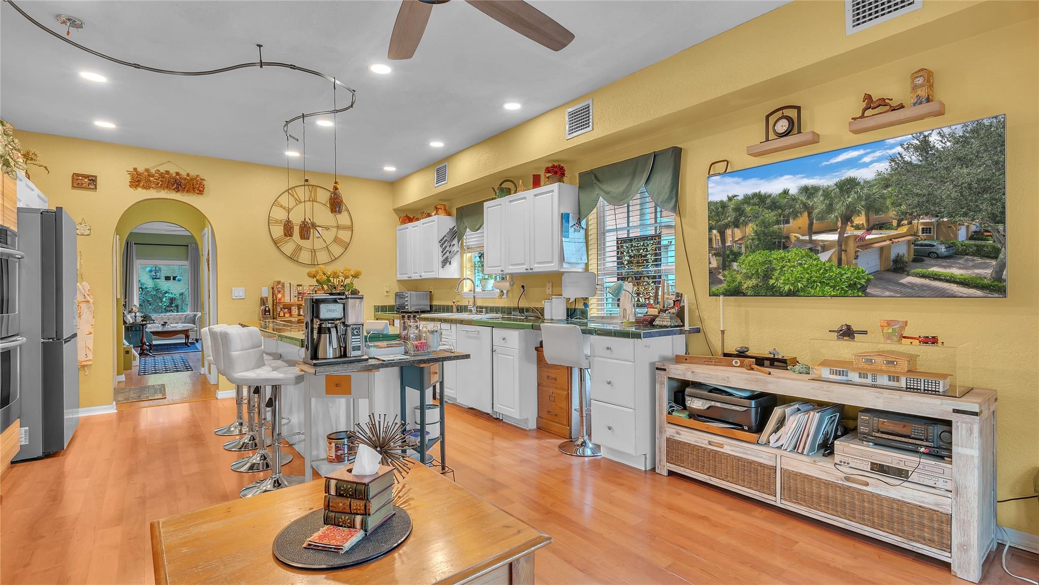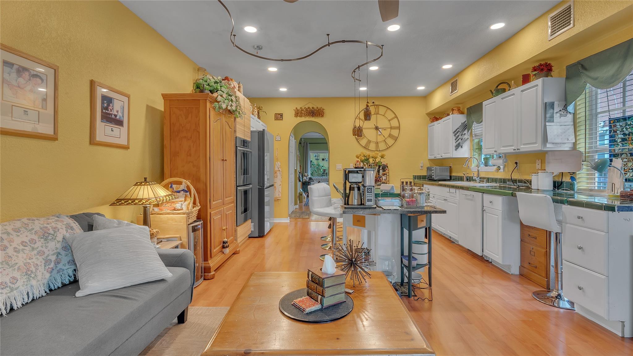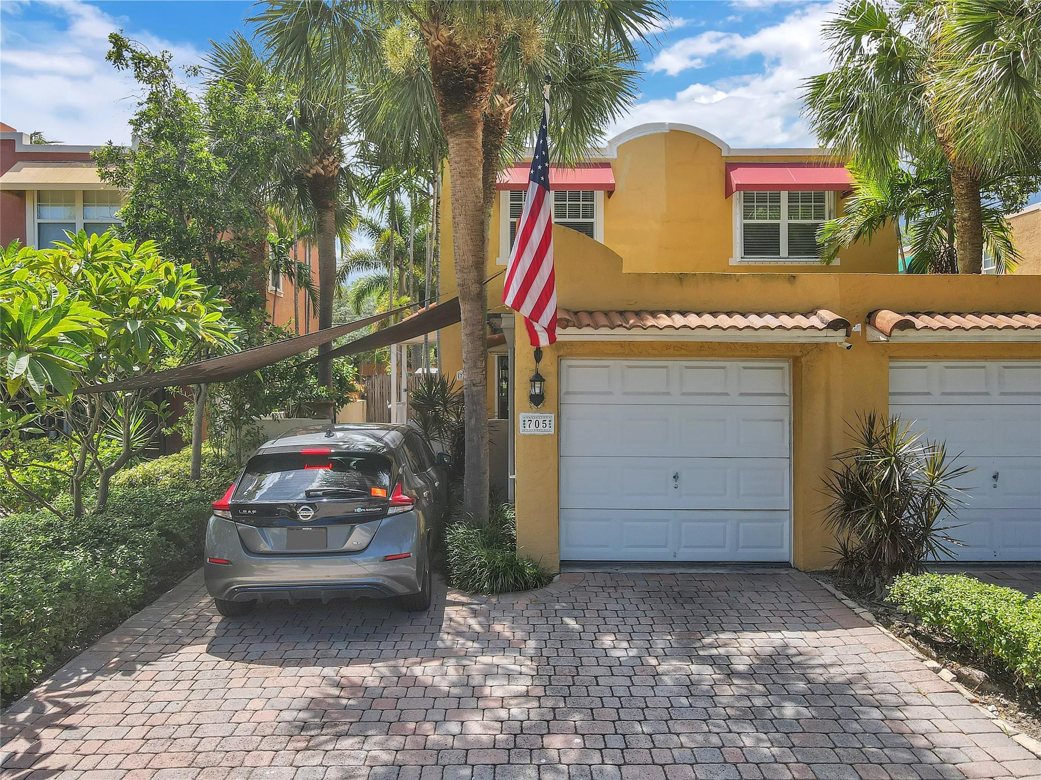 Elegant Spanish-style townhome nestled in Old Progresso Village, a trendy hotspot of Ft Lauderdale. Paver driveway leads to a detached garage, complemented by a quaint courtyard. Inside, an open floor plan seamlessly connects the living, dining, family, and kitchen spaces - perfect for modern living. Step out to the back paver patio where a plunge pool and flow-over hot tub invite relaxation. The main level offers a full bath, with 2 beds and 2 baths upstairs. Embrace eco-friendly features: solar water heater, rubber-sealed and insulated roof, rain barrels w/pump, and LED landscape lighting. Impact windows/doors. Security/camera system included. Just moments to Sistrunk Marketplace, FAT Village, The Wharf, Las Olas, Brightline, beaches, lively bars, and eateries!