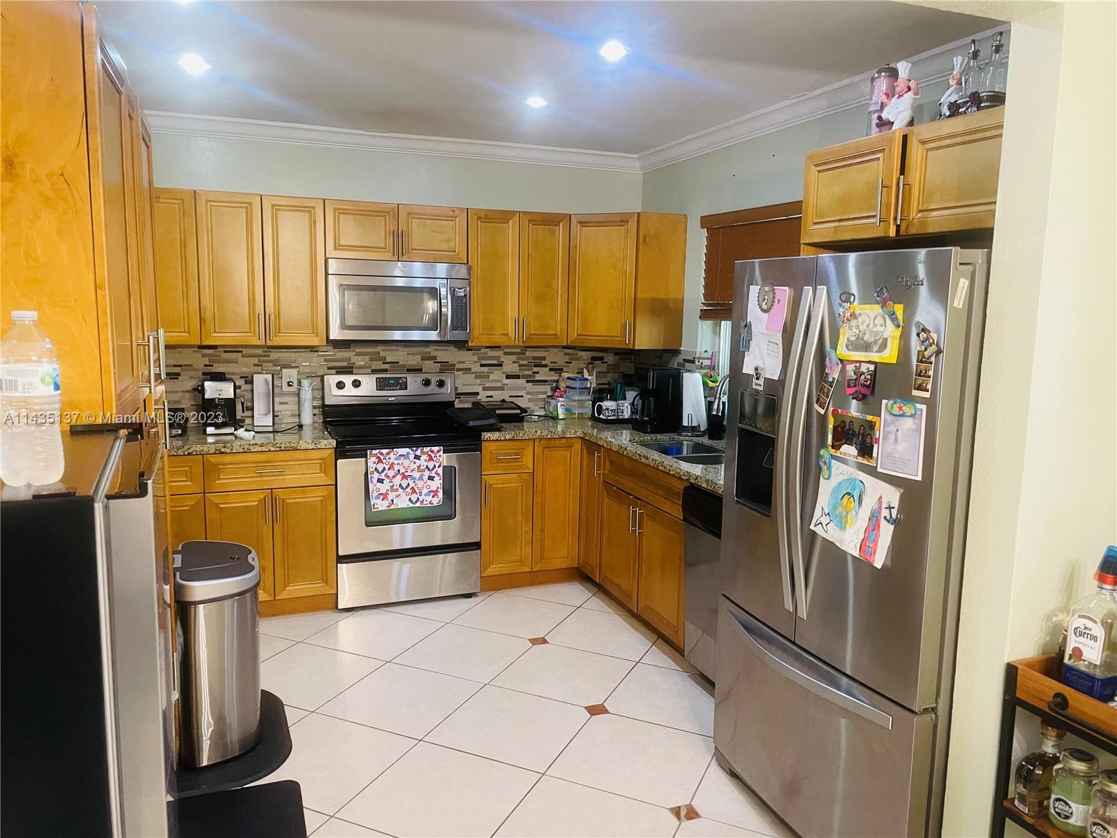 Corner house in Pembroke Pines with double garage facing the side of the house. Master bedroom on the opposite side from the rest of the bedrooms. The roof was replaced recently. Hurricane accordion shutters in all windows. Nice sized terrace. Spacious kitchen. Master bedroom has a separate entrance by the side of the house. Double garage is tiled and can be there easily converted to a in-laws quarters with entrance by the side of the house.