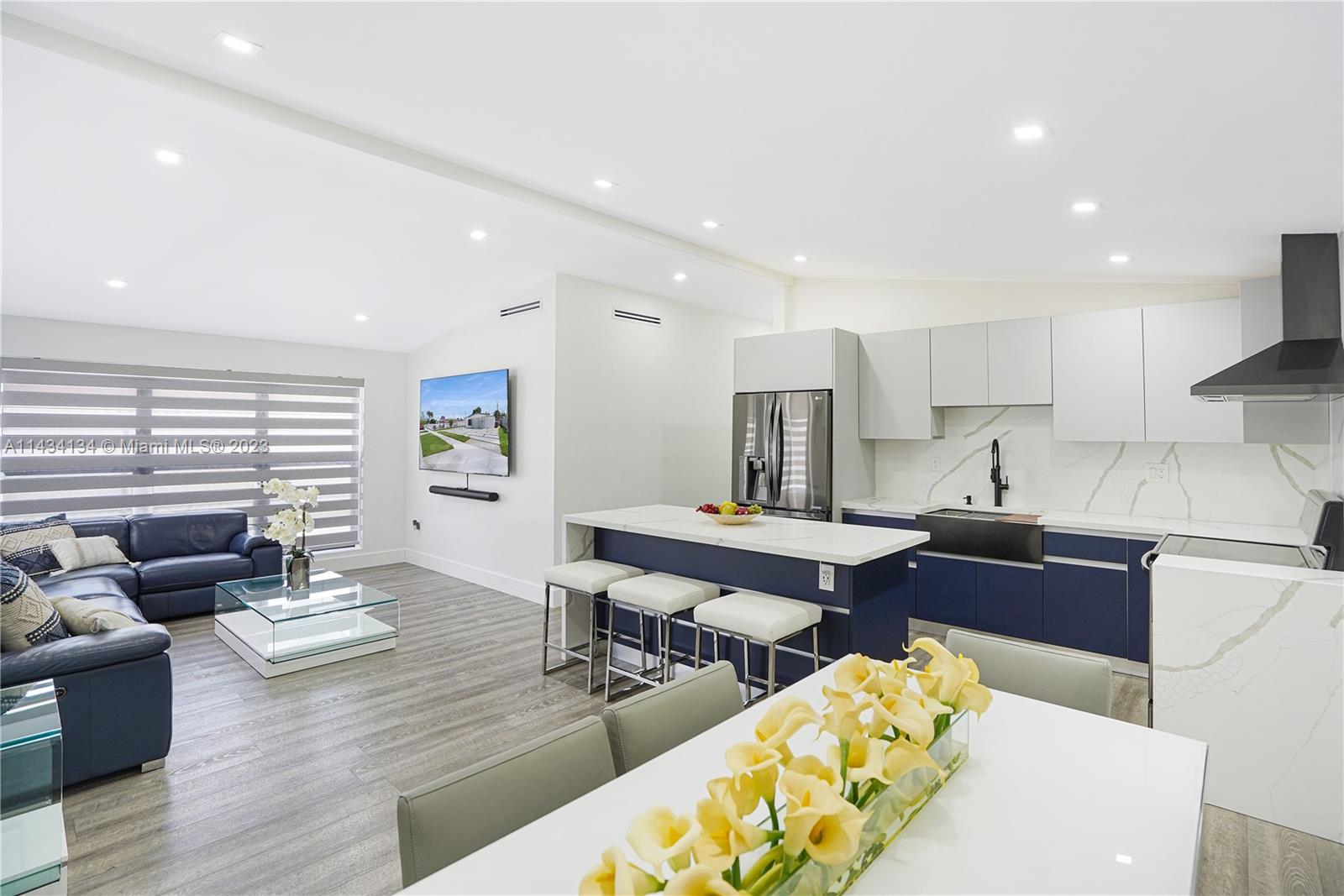 Spectacular & meticulously renovated, 1 of a kind SFR in highly appreciating Essex Village in Hialeah, FL. Boasting seamless integration of open, bright & airy 3 bed & 1.5 bath floorplan, grand volume ceilings, stunning gourmet kitchen featuring all SS appliances, striking quartz countertops & backsplash, sleek 2 tone cabinetry & grand waterfall island w/ seating, recessed LED lighting & a myriad of other detailed upgrades & enhancements. Spacious bedrooms, spa-like bathrooms 7 glass shower doors. 2021 (25) year roof. New floors, AC, water heater, washer/dryer. Insulated walls & ceiling. Upgraded plumbing & entire new electrical, remote control Zebra blinds, impact windows/doors. Separate Boat/RV parking, expansive square grid cement driveway for multiple vehicles (& commercial too) NO HOA