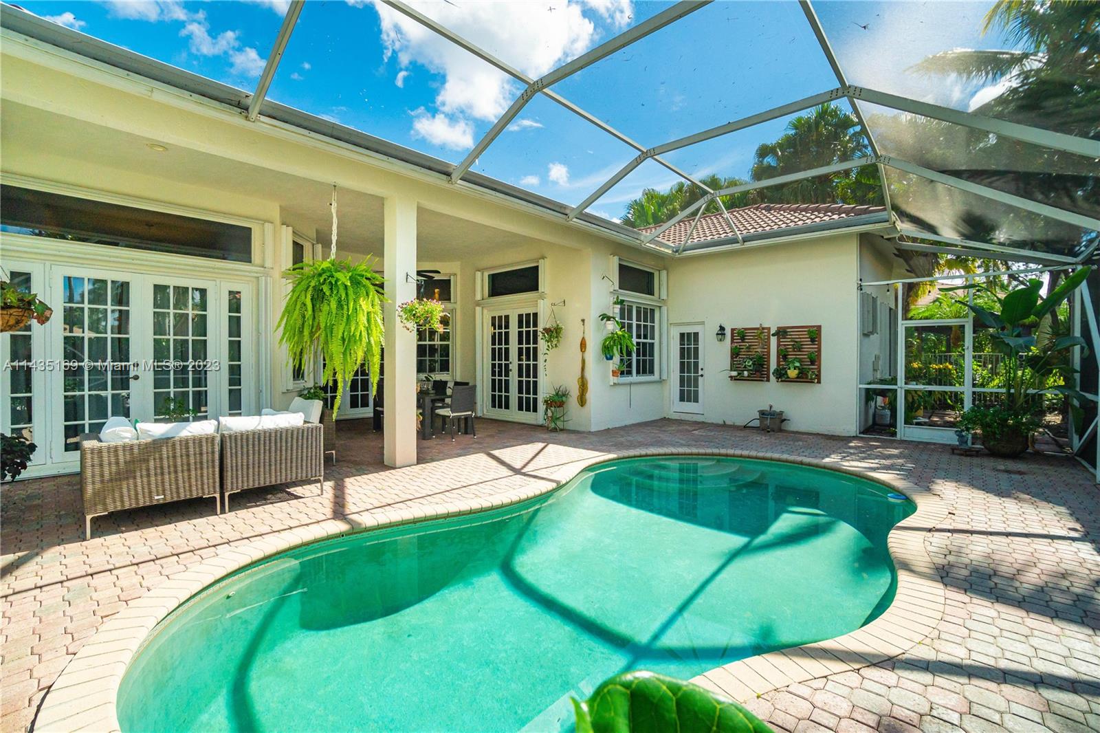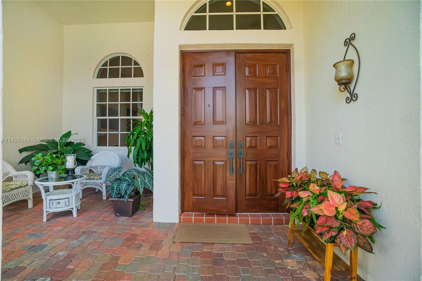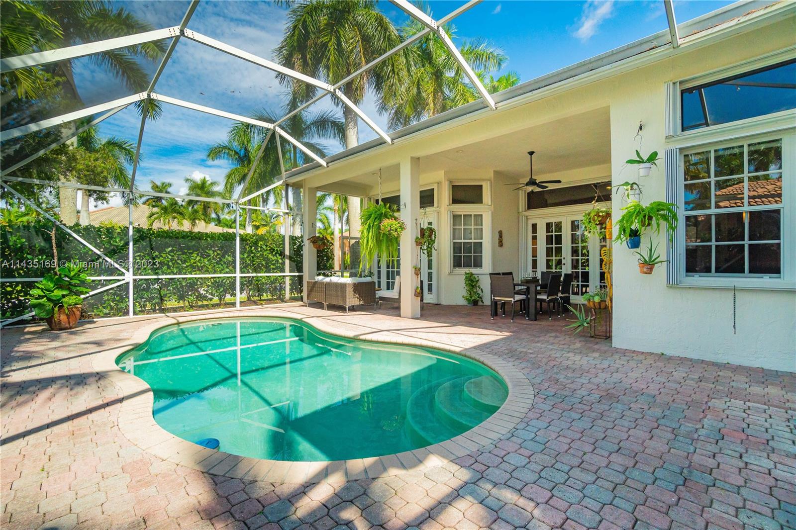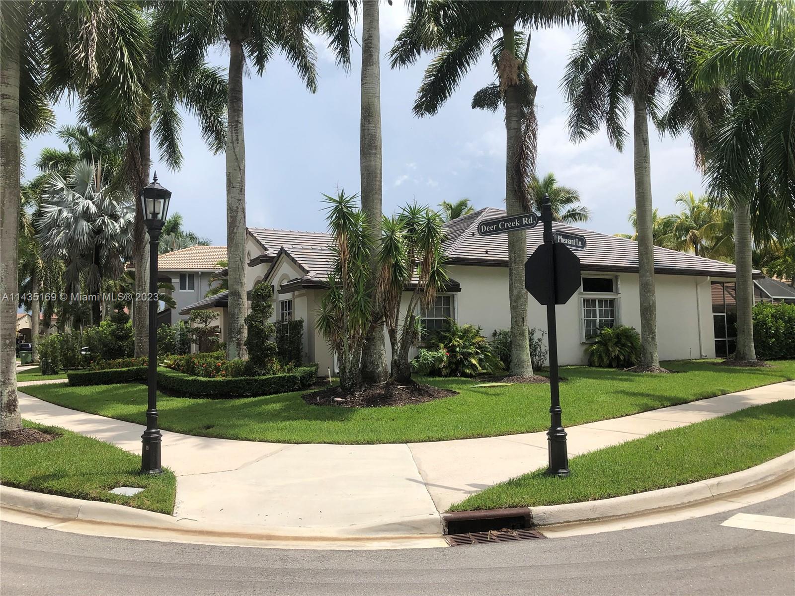 BACK TO THE MARKET WITH A NEW ROOF. Beautiful corner lot one-story home in Weston Hills Country Club Community; 4 bedrooms, 3.5 Bathrooms with a library/office. High ceiling bright house. Kitchen with custom double cabinets, SS appliances, and granite countertop. Huge Master Bedroom. Modern master bath with jacuzzi. All baths are renovated with modern concepts. All the bedrooms and offices with dark wood floors and living areas and baths with Italian porcelain tile. Cousy screed patio with a pool to feel the retread and tranquility in your own paradise. Accordion shutters and impact doors