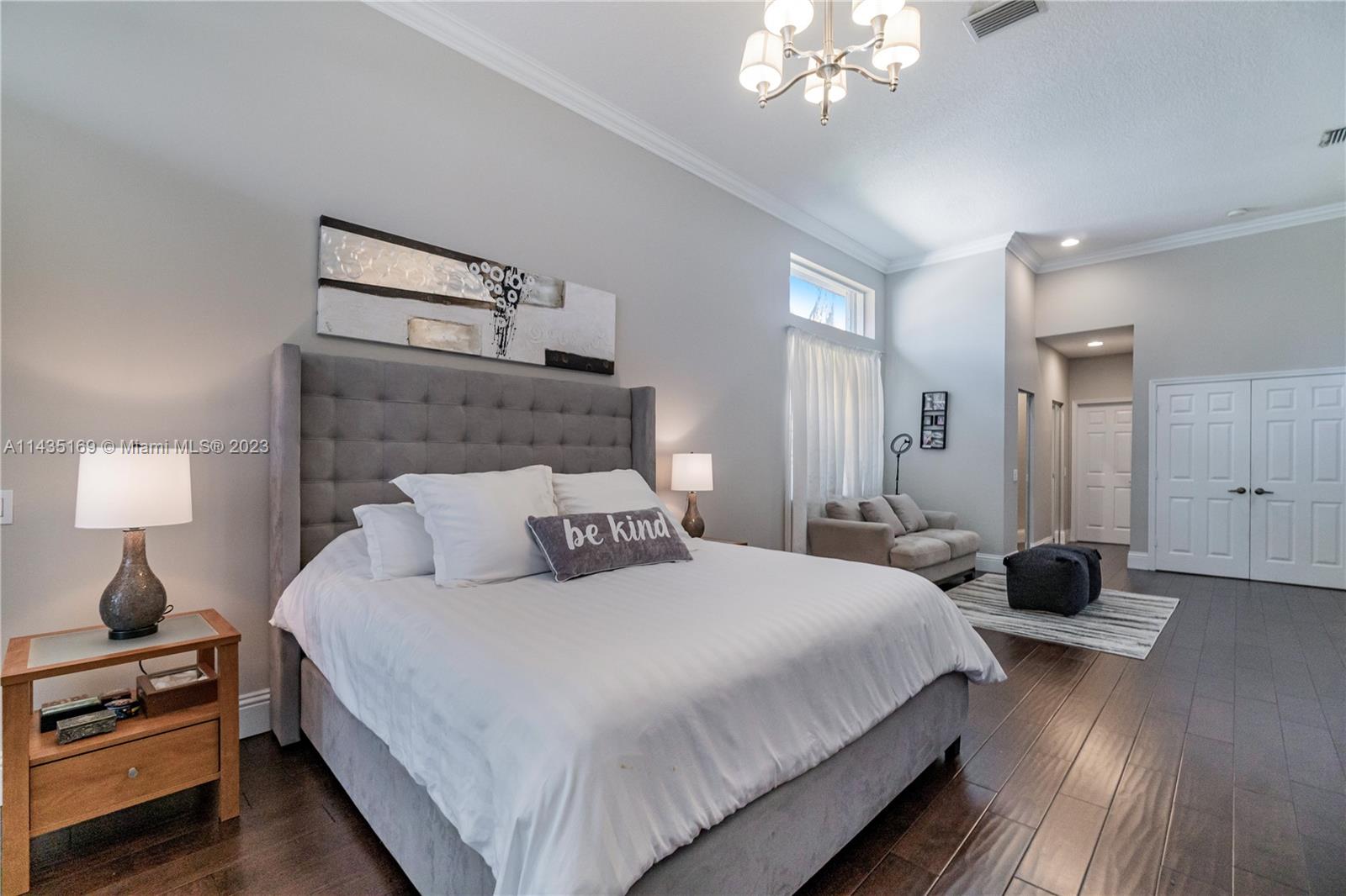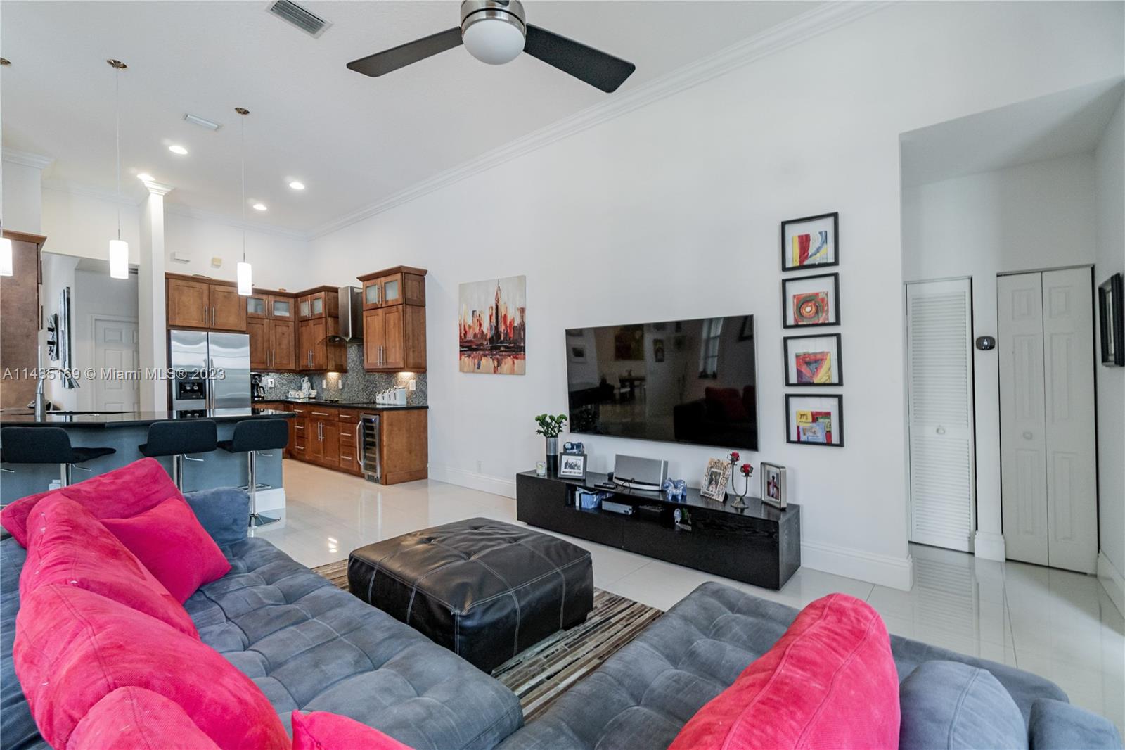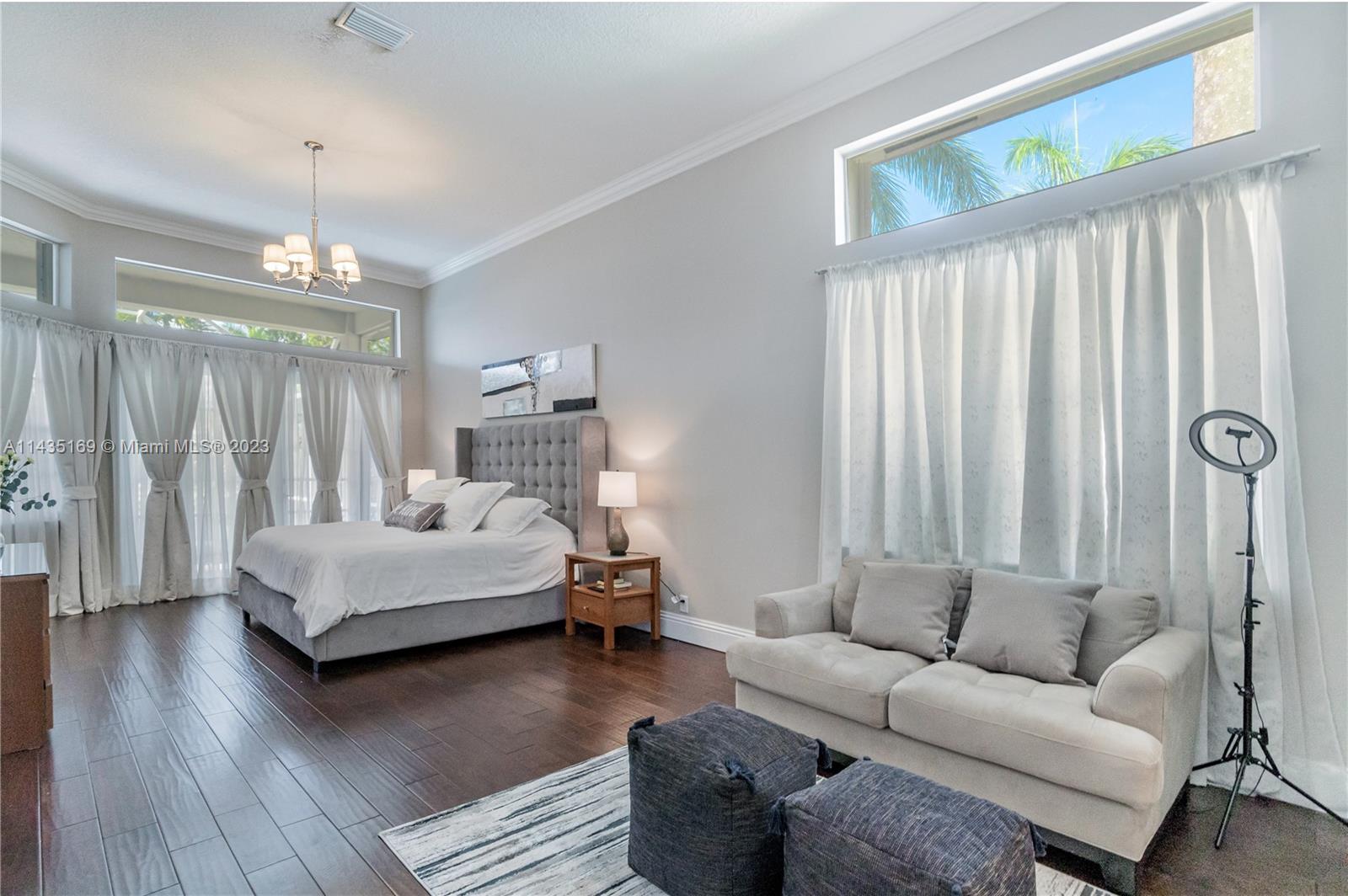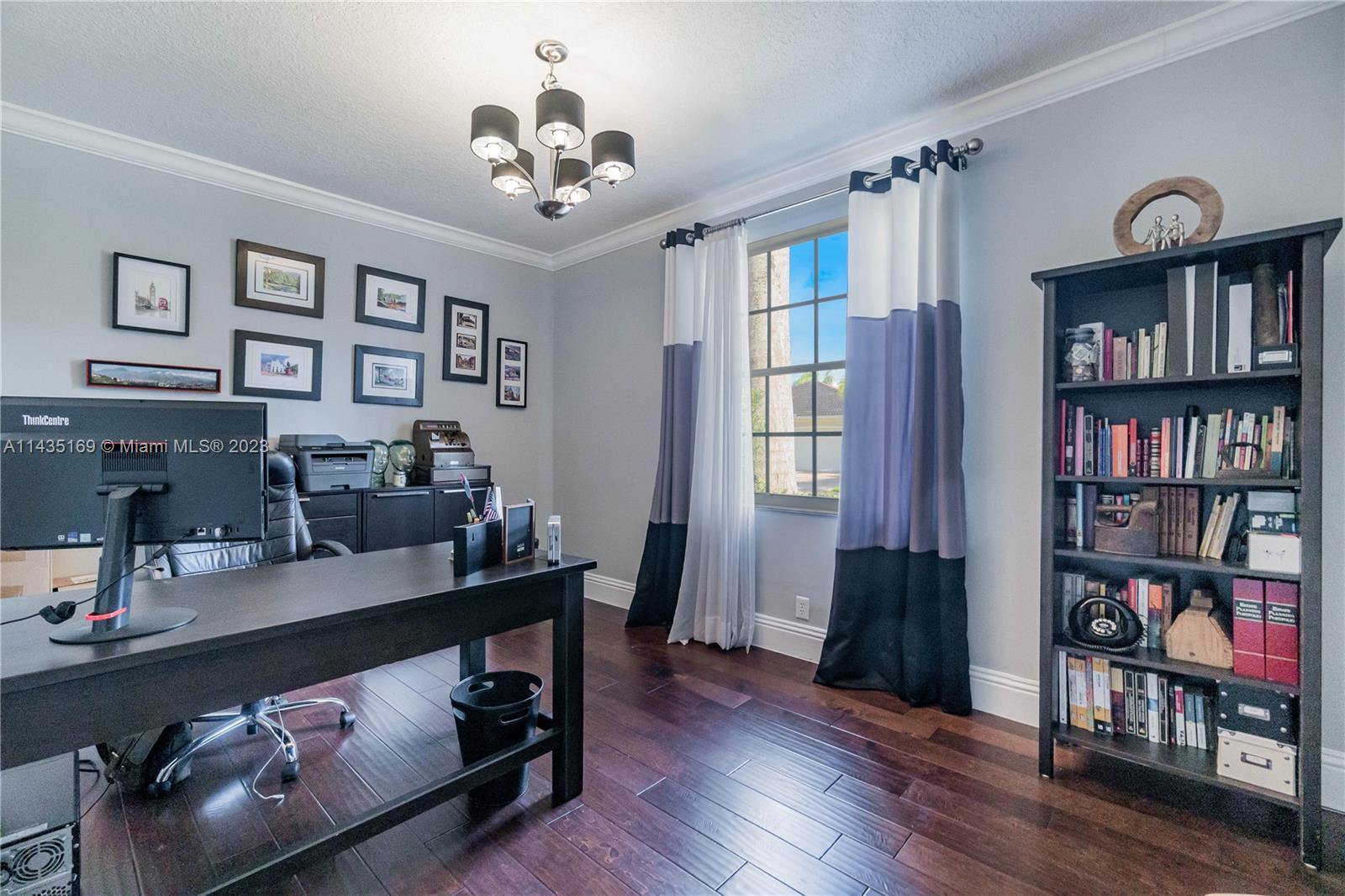 BACK TO THE MARKET WITH A NEW ROOF. Beautiful corner lot one-story home in Weston Hills Country Club Community; 4 bedrooms, 3.5 Bathrooms with a library/office. High ceiling bright house. Kitchen with custom double cabinets, SS appliances, and granite countertop. Huge Master Bedroom. Modern master bath with jacuzzi. All baths are renovated with modern concepts. All the bedrooms and offices with dark wood floors and living areas and baths with Italian porcelain tile. Cousy screed patio with a pool to feel the retread and tranquility in your own paradise. Accordion shutters and impact doors