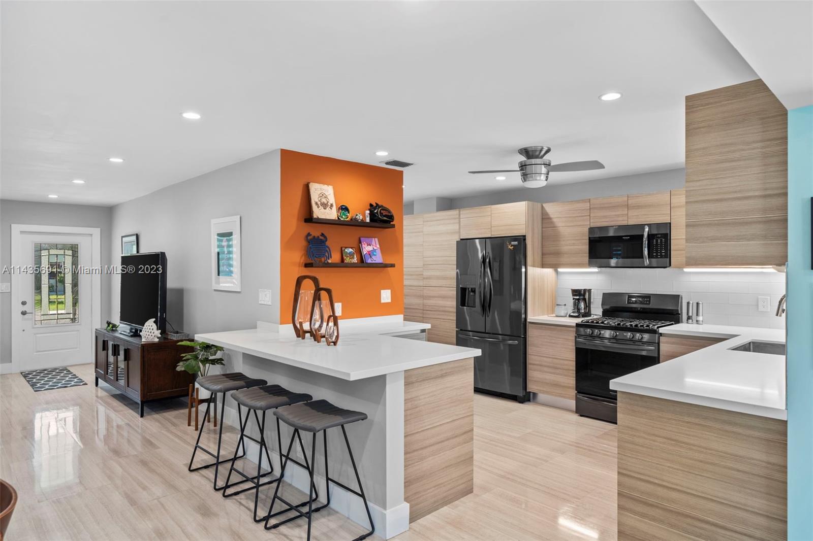 Welcome to your dream home!This recently renovated property is hitting the market and is ready for its new owners.The renovations don't stop at mere aesthetics; they extend to functionality and security as well. The kitchen boasts Italkraft custom cabinets, offering ample storage and a sleek, modern look. The house is equipped with a brand new AC system and a Navien water heater, ensuring optimal comfort at all times. We've also converted the house from electrical to gas, contributing to energy efficiency. The property also features hurricane-proof windows and doors for maximum safety. The beautiful backyard is an oasis of tranquility, complete with a newly renovated heated pool. Located conveniently east of US1, this home is a stone's throw away from the beach, parks, and shopping center.