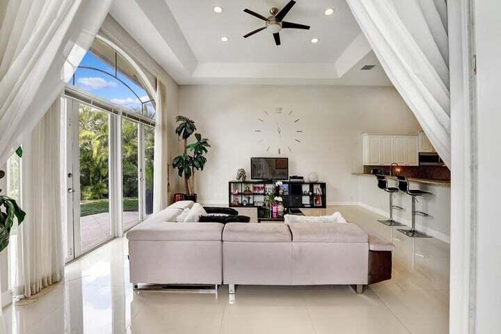 Gorgeous 5 Bedroom, 3 1/2 Bath Mediterranean Estate home in West Davie. Split floor plan with Front office next to Master Bedroom. Located on one of the largest lots on a quiet cul-de-sac in a gated community with only 15 homes. Heated Salt water pool in a private fenced oasis backyard with screened lanai perfect for entertaining. Large 32X32 Porcelain Tile (2021) throughout home with 14'' vaulted ceilings throughout. Gourmet Kitchen with Granite countertops and stainless appliances (2018), Formal Living room/Dining Room, and Family room that offer Tray Ceilings with elegant light fixtures. 2 AC Units, 2 Tankless Hot Water heaters, Washer/Dryer 2018. Large circular driveway with 2 car garage. Near Turnpike, Seminole Hard Rock, and I-595
