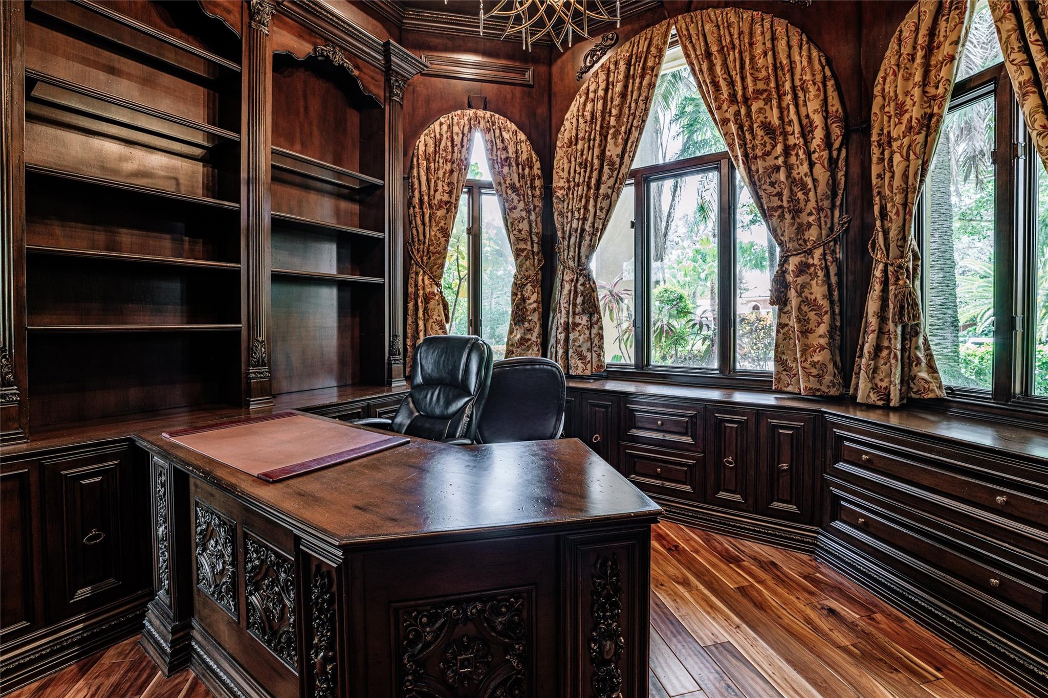 Magnificent & palatial home in the gated community of Windmill Ranch Estates, &may be classified as having the finest homes in South Florida. A private setting and situated on a cul-d-sac, this beautiful estate home offers it all from the grand entry when you first enter, to the in-law’s quarters. Marble/inlay flooring throughout living areas, medallions, custom woodwork, built-ins, columns, stone archways, traditional decorative interiors throughout,& so much more custom detailed finishes. This home offers 5bed and 4bath, gorgeous water views from the master bedroom and main living areas, new roof (2022) custom woodwork, oversized 3 car garage, entertainment pool area, summer kitchen, travertine pavers, fountain, pergola, majestic landscaping,& so much more. Horses are permitted.