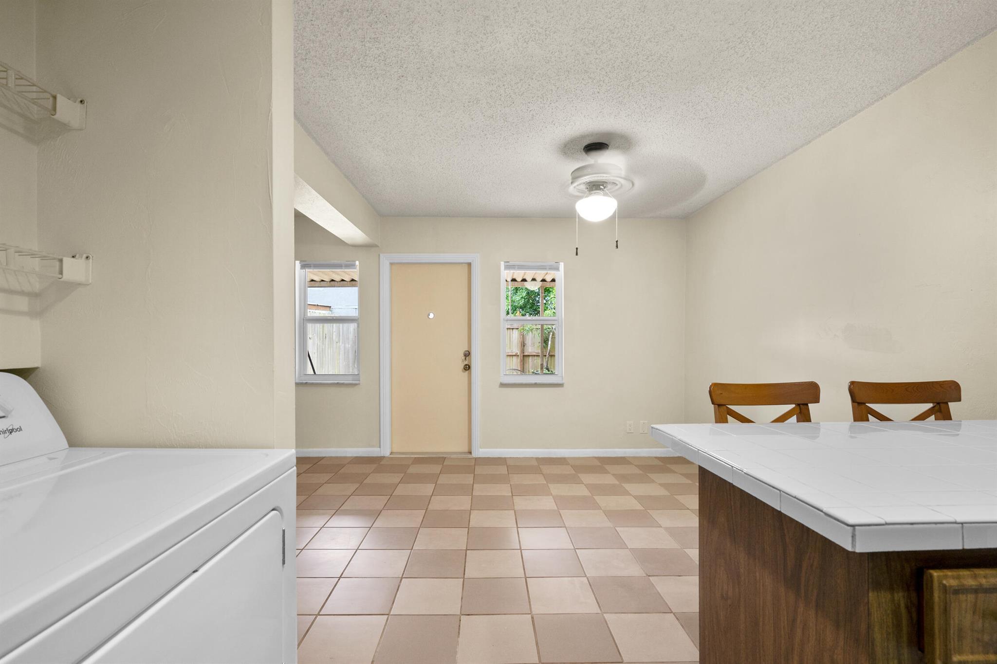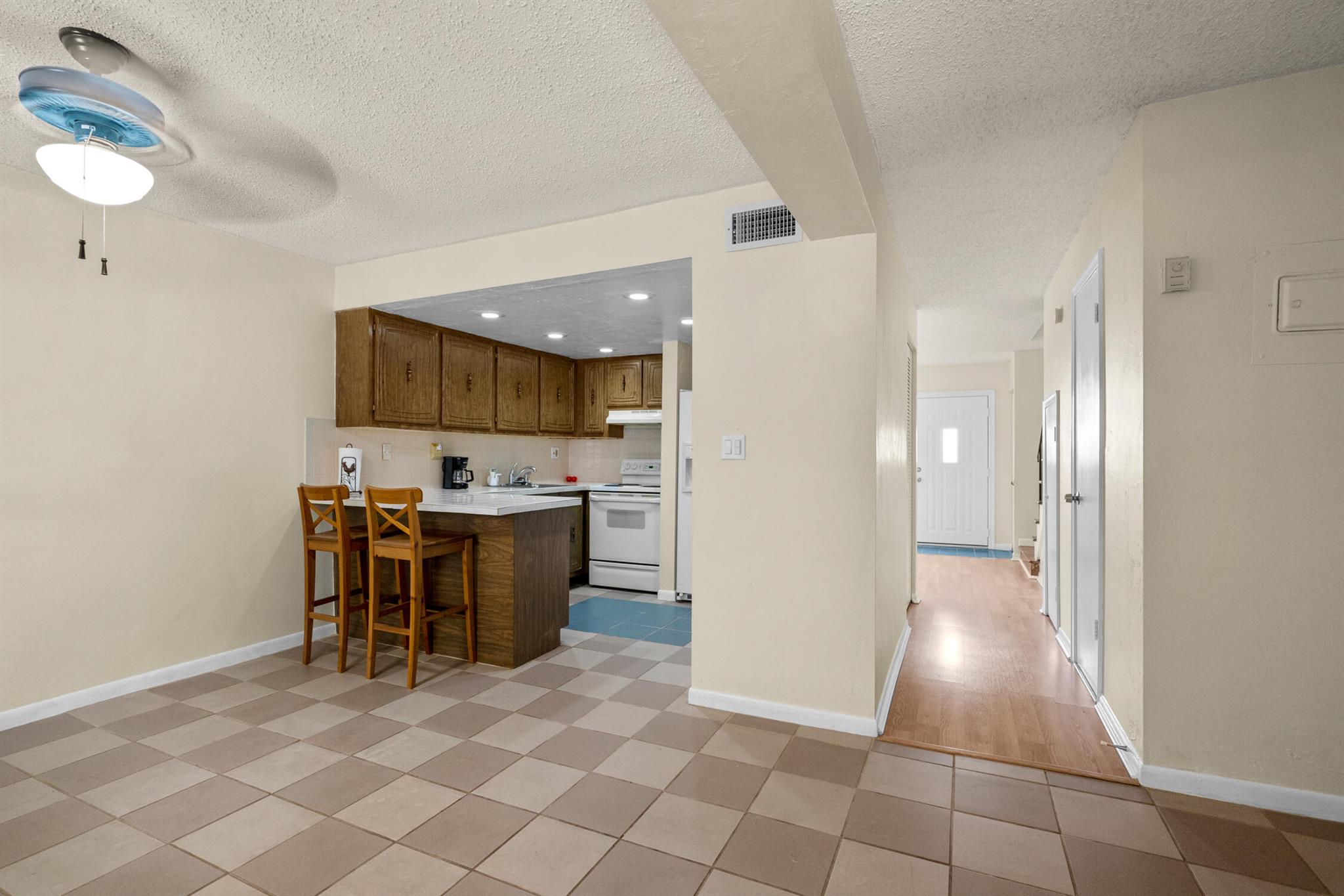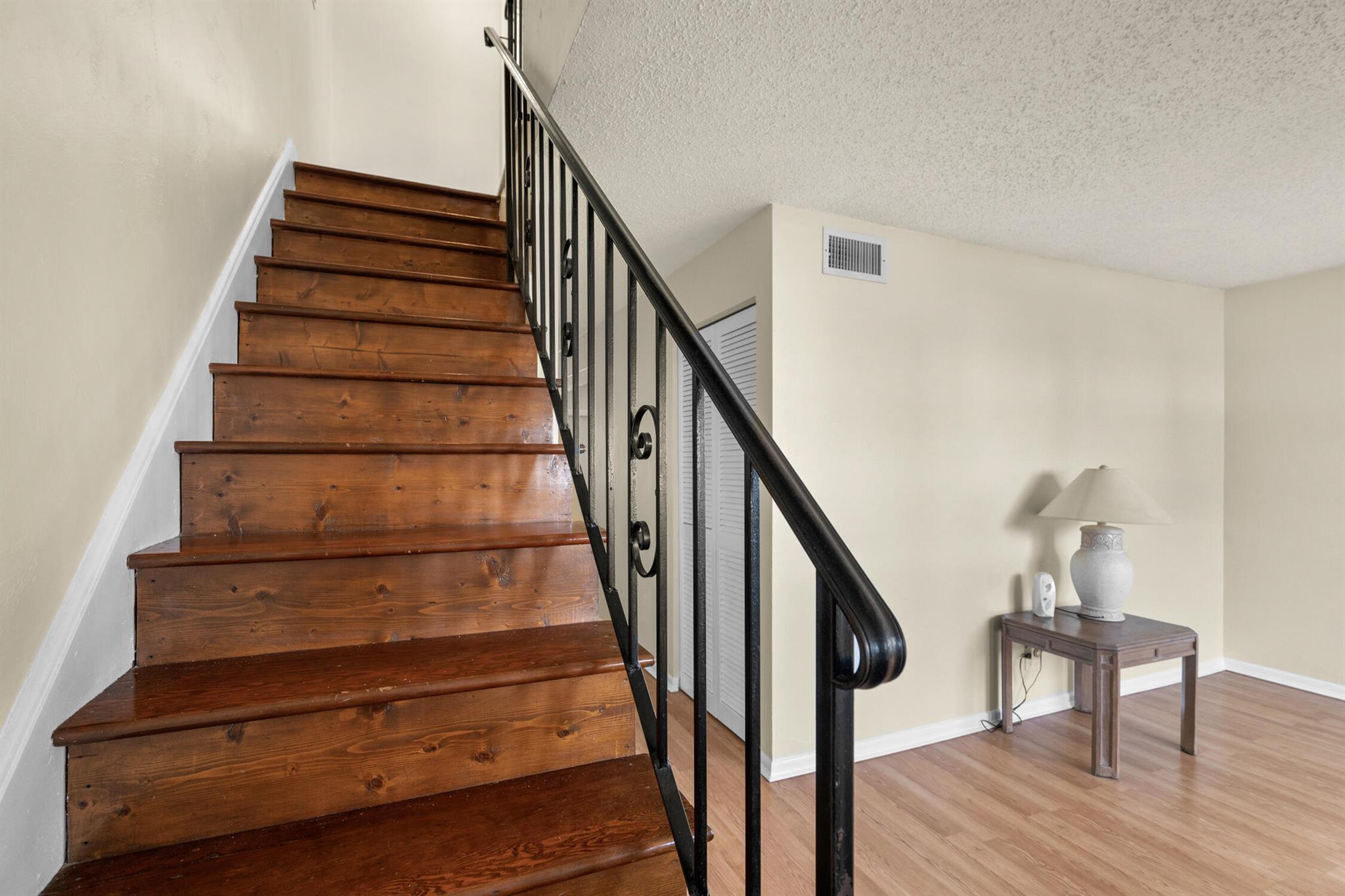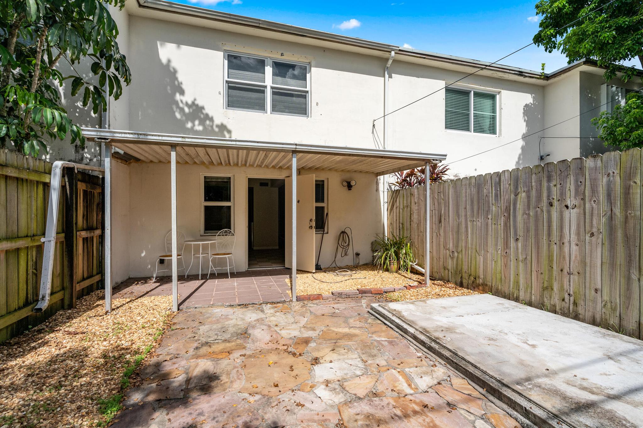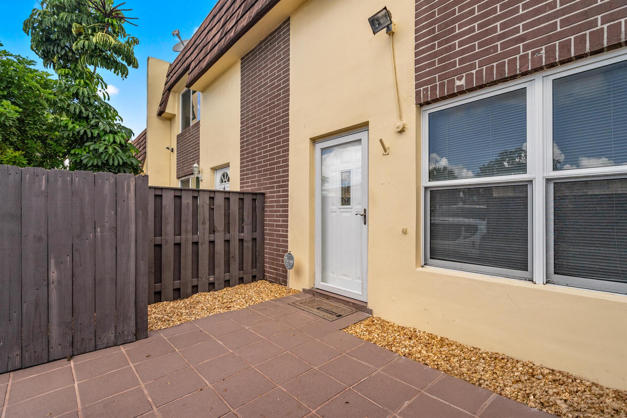 Florida Living without the MAINTENANCE! Introducing this 2 bedroom|1.5 Bathroom Townhome located IN THE HEART of DAVIE! Original Retro Florida Classic! Very well maintained ONE OWNER home is ready for immediate occupancy. Designated Parking convenient to fenced private courtyard welcomes you to create an adorable setting. Family room expanded with Laminated Wood Plank flooring open to the wrought iron spindled REAL WOOD staircase is sure to impress. This split floor plan opens to the ample sized kitchen equipped Solid Wood Cabinets, sleek tile countertops, Range, Refrigerator with Icemaker, Hood/Lighting, BREAKFAST BAR, Recessed lighting and a full-sized washer/dryer within steps to the OVERSIZED OUTDOOR BACKYARD OASIS! Fully fenced, cleared canvas is ready for your private garden with C