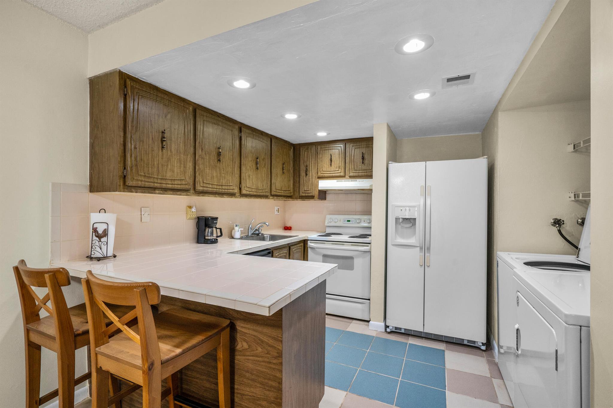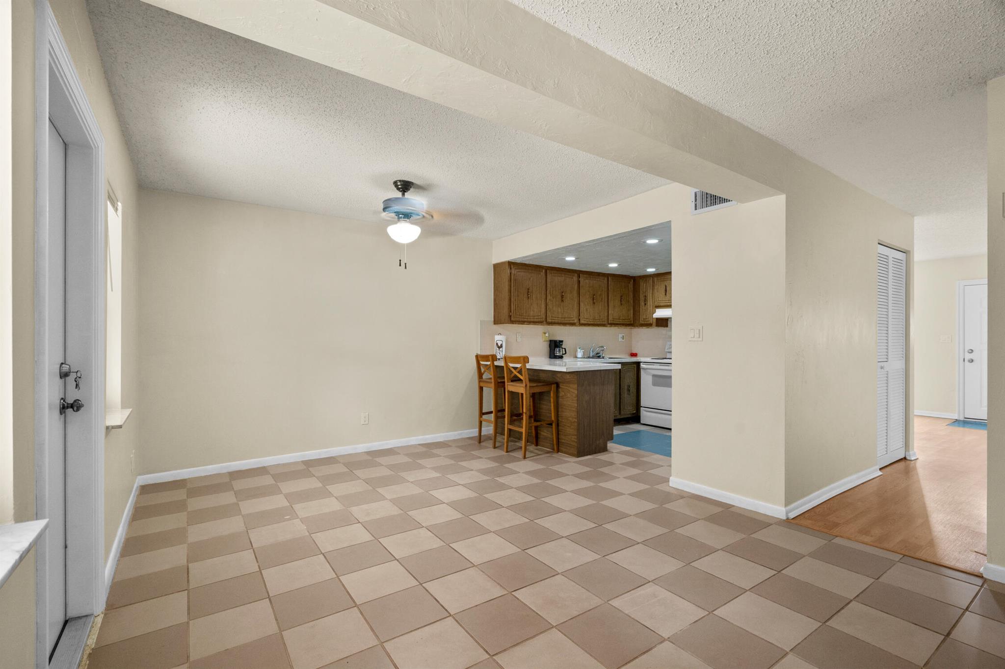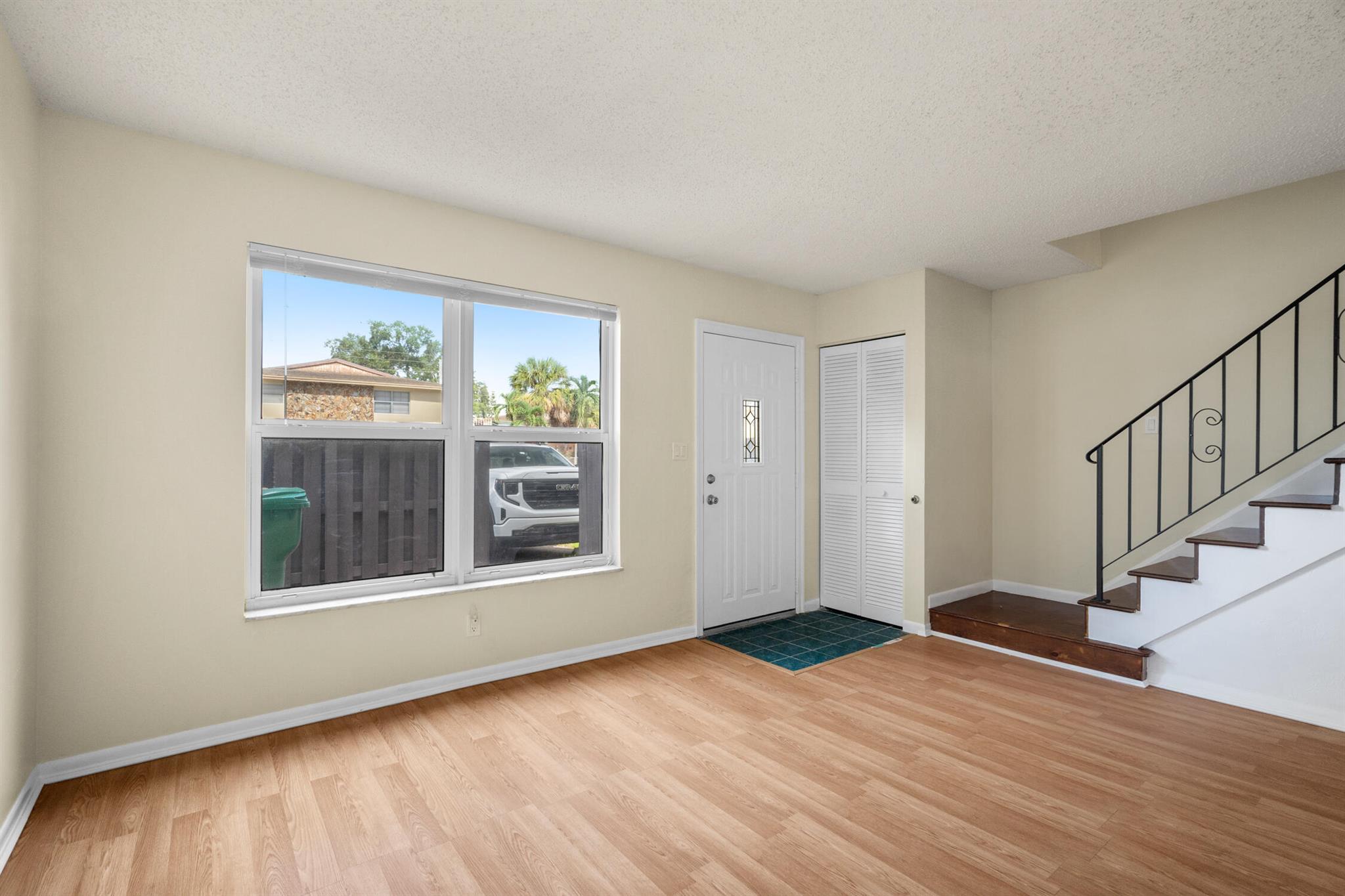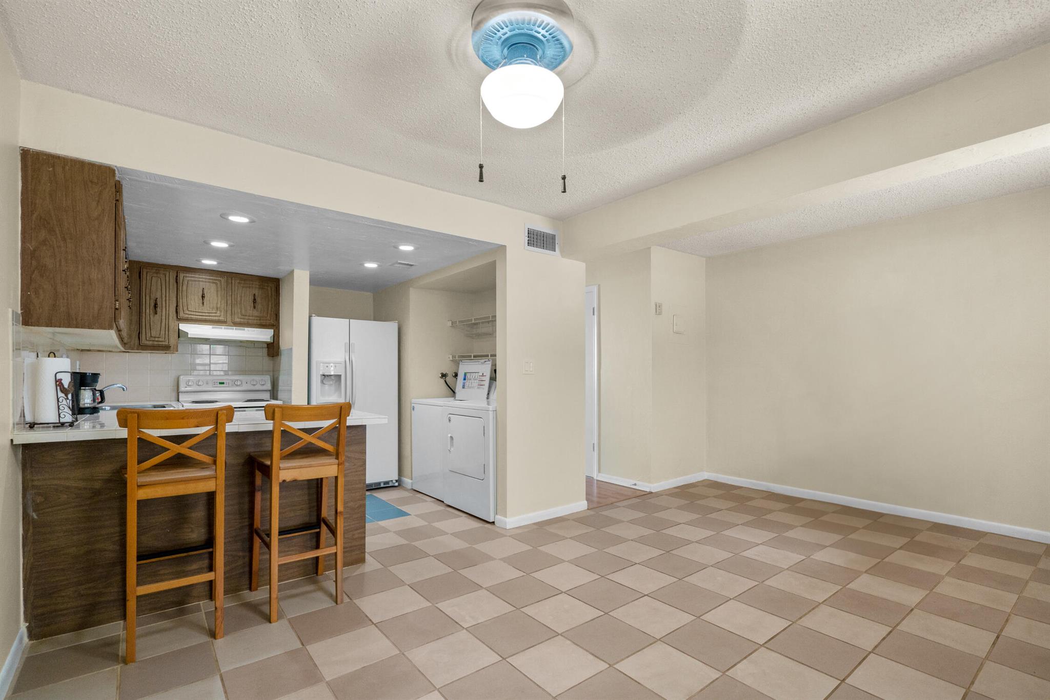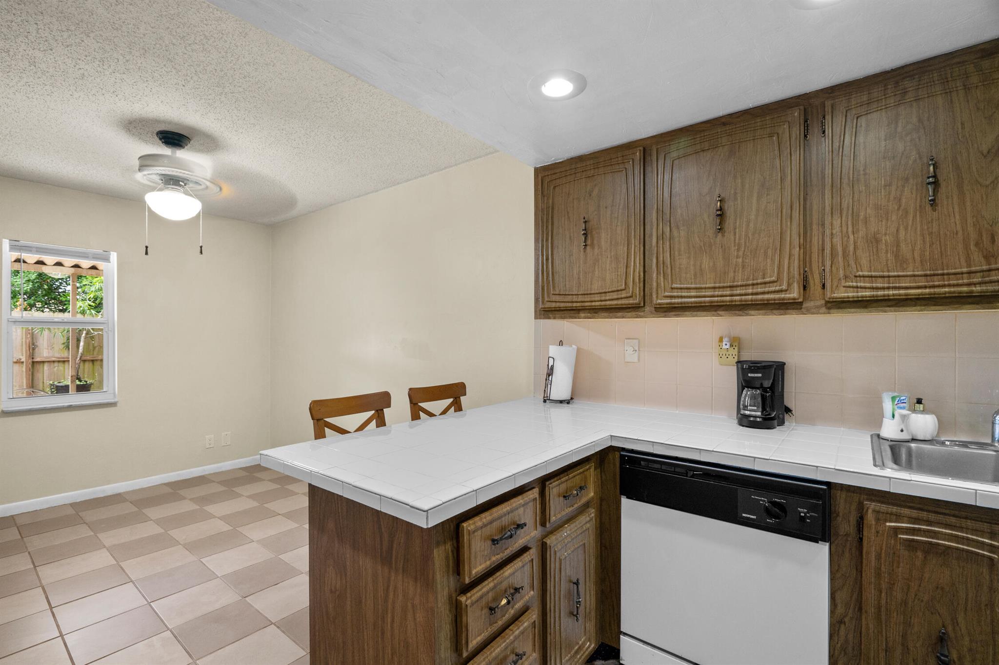 Florida Living without the MAINTENANCE! Introducing this 2 bedroom|1.5 Bathroom Townhome located IN THE HEART of DAVIE! Original Retro Florida Classic! Very well maintained ONE OWNER home is ready for immediate occupancy. Designated Parking convenient to fenced private courtyard welcomes you to create an adorable setting. Family room expanded with Laminated Wood Plank flooring open to the wrought iron spindled REAL WOOD staircase is sure to impress. This split floor plan opens to the ample sized kitchen equipped Solid Wood Cabinets, sleek tile countertops, Range, Refrigerator with Icemaker, Hood/Lighting, BREAKFAST BAR, Recessed lighting and a full-sized washer/dryer within steps to the OVERSIZED OUTDOOR BACKYARD OASIS! Fully fenced, cleared canvas is ready for your private garden with C