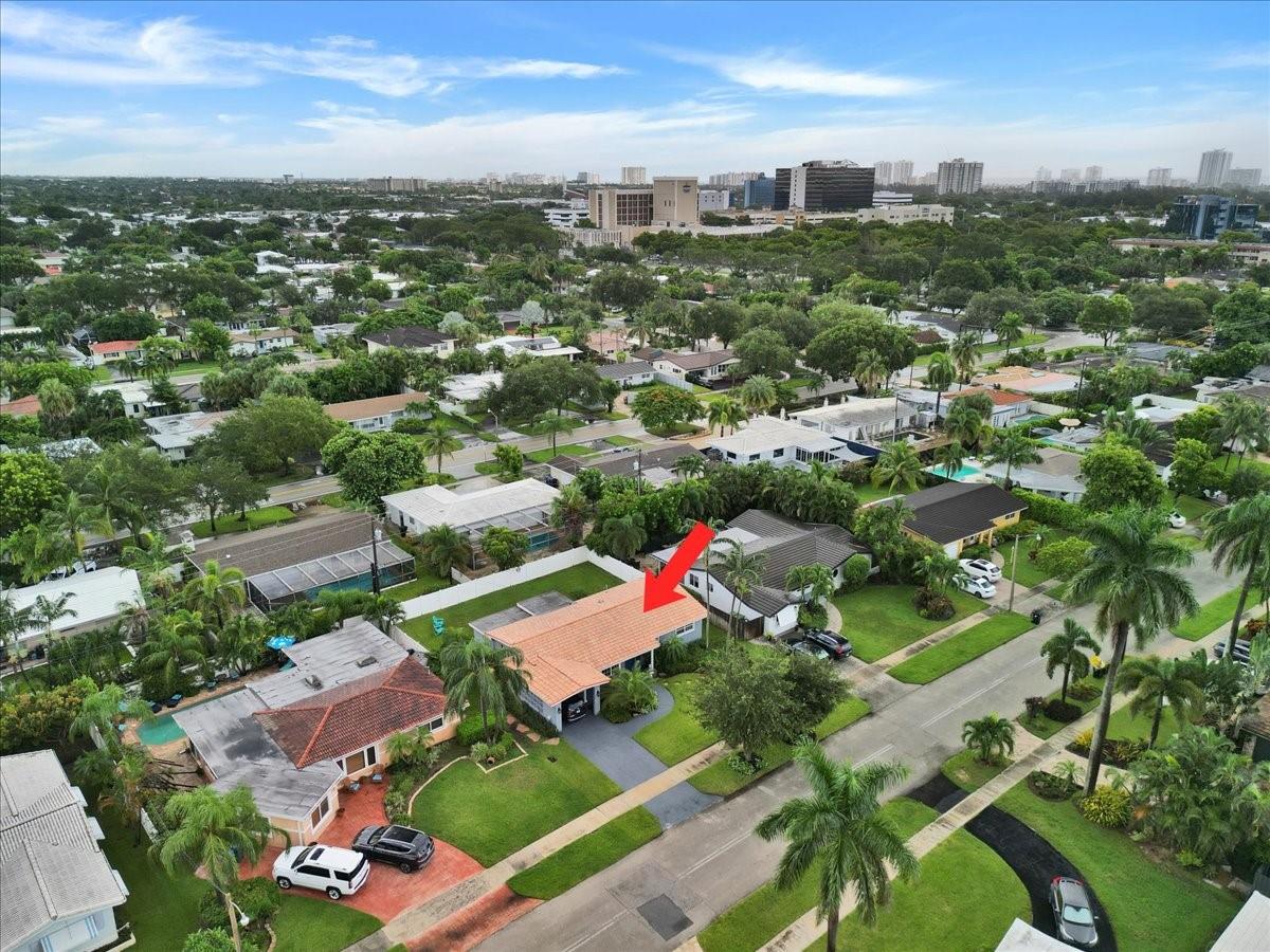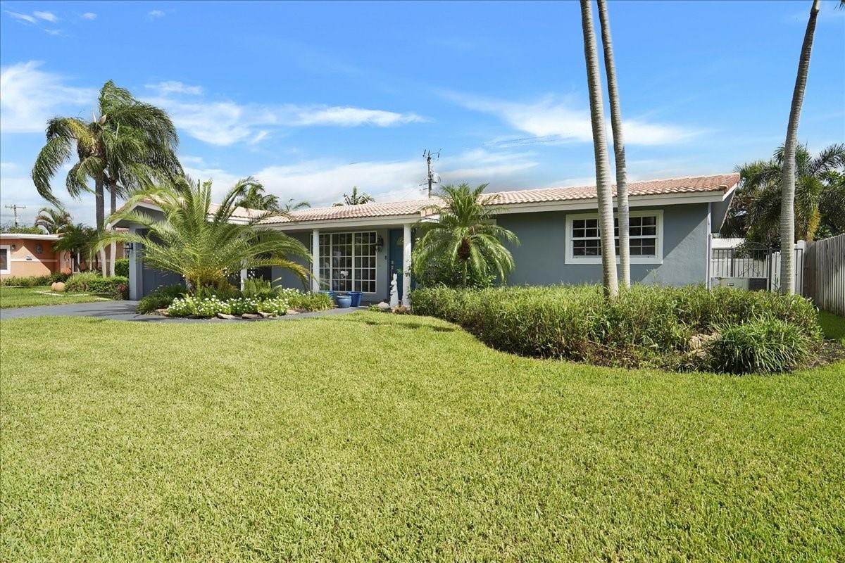 Privacy, style, and location blend seamlessly in this meticulously maintained 2-bedroom 2-bath residence nestled in the outstanding & highly sought-after Imperial Point neighborhood within the heart of Fort Lauderdale. The interior boasts impact windows in front, beautiful wood built-in library, plantation shutters throughout, high tech Vivant alarm system, along with a flexible bonus den suitable for an office, playroom, or additional living area. Featuring updated bathrooms, 2022 flooring, landscaping and newer appliances. Location is perfect for health care workers (around corner from Holy Cross Hospital, Broward Health, clinics, etc). Enjoy the fenced-in-yard in a prime location & just an 8 minute drive (2.5 miles) to the beach, downtown, upscale dining, shopping, schools, and parks.