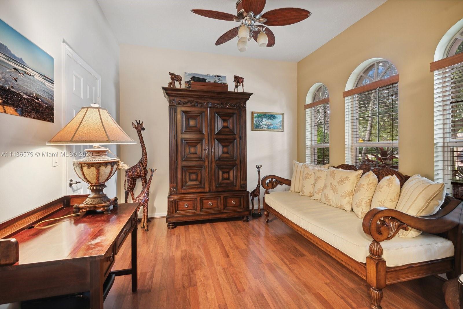 Coveted gate-guarded community of Lake Estates at Rolling Hills, in the heart of Davie, FL. Close to NSU, the academic village, major roadways and ALL conveniences. Pride of ownership and warmth exudes in this 4/4 (4-way split bdrms) plus Hobby Room, pool home. Kitchen offers a Wet Bar, Maple cabinets, S/S appliances, large pantry. Relax in this private backyard oasis, enjoy sunrises, sunsets and endless views of holes 7 & 8 of executive golf course. Heated pool (built 2013) w/salt-water system, waterfall feature. Elegant details, 13' high ceilings. A/C in 2019, W/H in 2011. 3-car wide driveway. HOA dues of $900/Qtr. include: 24/7 gate-guarded, basic cable, HBO, highspeed internet, alarm monitored.