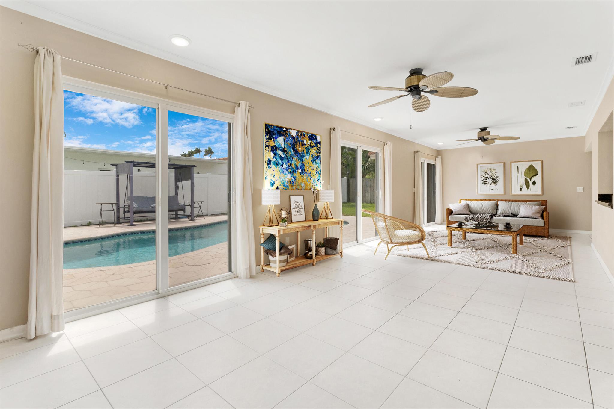 PRICE REDUCED $100k. BRING OFFERS TODAY w/proof of funds! FANTASTIC HOME 2 miles to the BEACH in the heart of RENOWNED IMPERIAL POINT ! COURTYARD ENTRY, 3 bedrooms PLUS a DEN/OFFICE, nearly 2000 sft, ROOF 2006, TWO CAR GARAGE, FOAMED INSULATED ATTIC, and ALL IMPACT WINDOWS - all built on a HUGE, beautifully fenced/landscaped, CORNER LOT that WATERS FROM A WELL(SAVING $$$ on the WATER BILL. Step into the foyer to the OPEN CONCEPT: 2 LARGE LIVING AREAS w/tons of windows and a triple BAY WINDOW in the Living Room. (note: some photos are staged but no walls moved) The extra large KITCHEN has room for an EAT-IN area and a direct view of the POOL. The MASTER BEDROOM will surprise you with a Triple-Door Wall Closet and a large Walk-in Closet for more clothes and shoes than you can imagine !