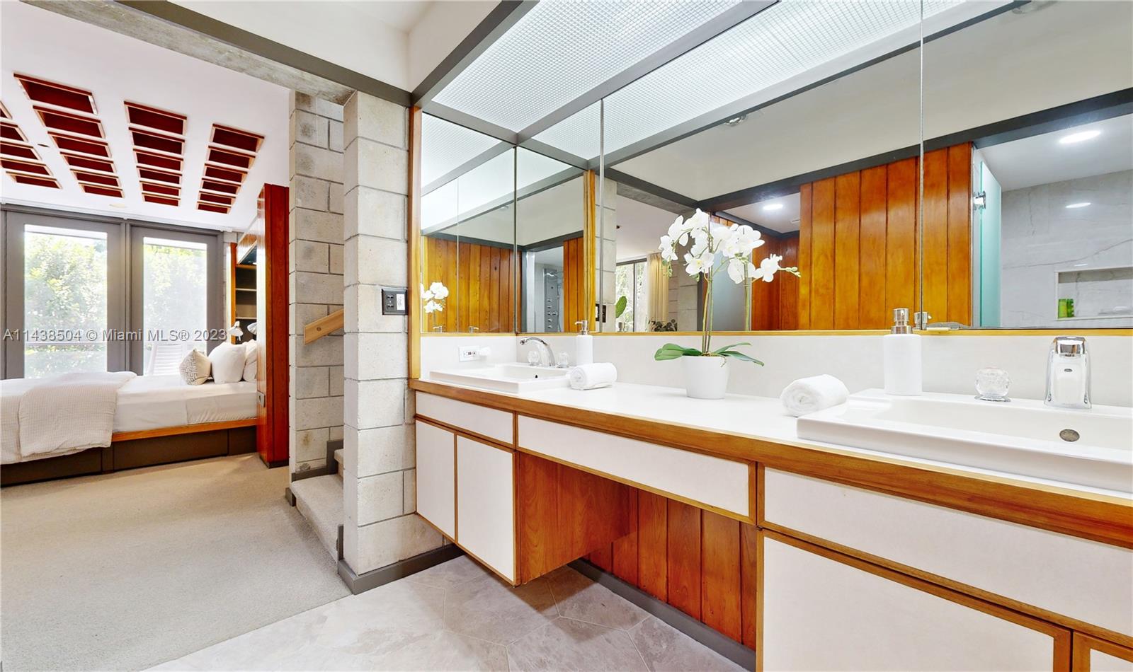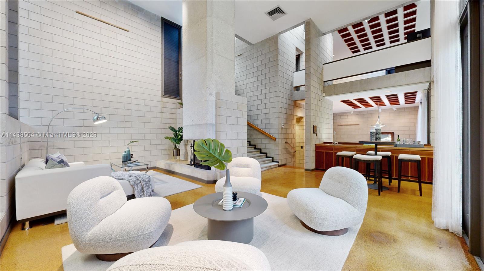 Spectacular 4 bed/4bath/2 half bath, 5,332 sf contemporary home surrounded by a "Lush Tropical Oasis" in the exclusive community of Devonwood in Pinecrest. Open kitchen with new Viking stove top w/counter bar opens to grand family rm. Primary bdrm on 2nd level w/enclosed balcony features large office/loft overlooking expansive living room with fireplace. Volume/high ceilings with impact windows and drs. Ample natural light illuminates interior w/garden views in every rm. 3rd level bedroom with roof deck ideal for stargazing. 3 newer A/C units and upgraded baths. New roof and 1000 gal prop generator added in 2019.Tranquil open patio terrace Zen-like feel w/garden pond for Yoga or entertaining. FHP security patrolled.