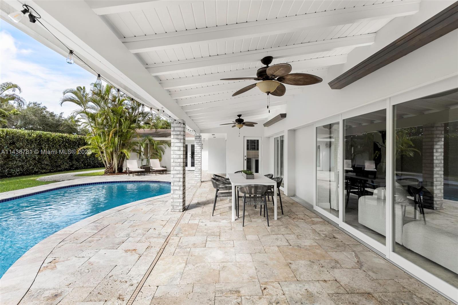 Experience this peaceful and spacious Pinecrest sanctuary, consisting of 4 bedrooms, 2.5 bathrooms, plus 1/1 guesthouse. This tranquil abode features a pool, terrace, and lush garden with mango, avocado, starfruit, and coconut trees. With updated electrical and plumbing, travertine flooring, impact windows and doors, and abundant closet storage, it's a perfect blend of modern convenience and timeless elegance. The oversized master suite offers serene pool views, while a contemporary kitchen shines with quartz countertops. Vast living and dining areas flow effortlessly into the pool area thanks to large sliding pocket doors. Complete with a secure gated entrance, a double garage, and ample space for additional vehicles or recreational gear, this home can become your ultimate homestead.
