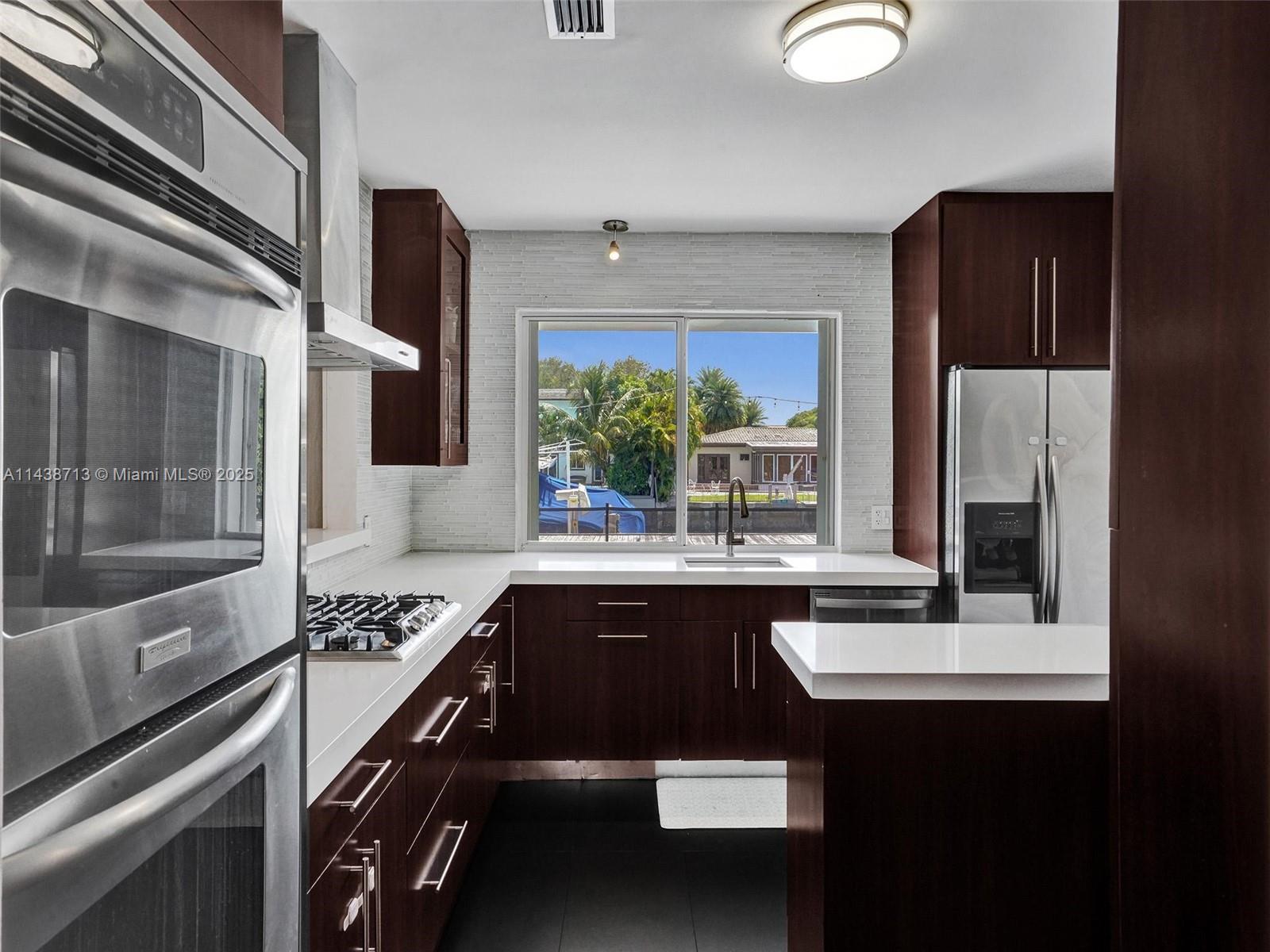 Be ready to fall in love with this beautifully remodeled waterfront home located in the exclusive gated community of Sans Souci Estates. This 4 bdrm, 3 bath property offers an open layout, 2 car garage, recessed lighting, 75FT of water frontage, large pool, outdoor patio, private dock w/20k lbs boat lift, & only a one minute boat ride to the open bay. Open kitchen w/SS appliances, gas cook top, double oven, a breakfast area, new bathrooms, & an immense amount of natural light. Spacious master bdrm w/en suite bathroom, finished walk-in closet w/built-ins, & French doors leading to the covered patio in the backyard. Entertainment galore in the beautiful backyard that overlooks the tranquil canal. FAST ACCESS TO THE OCEAN, NO FIXED BRIDGES.