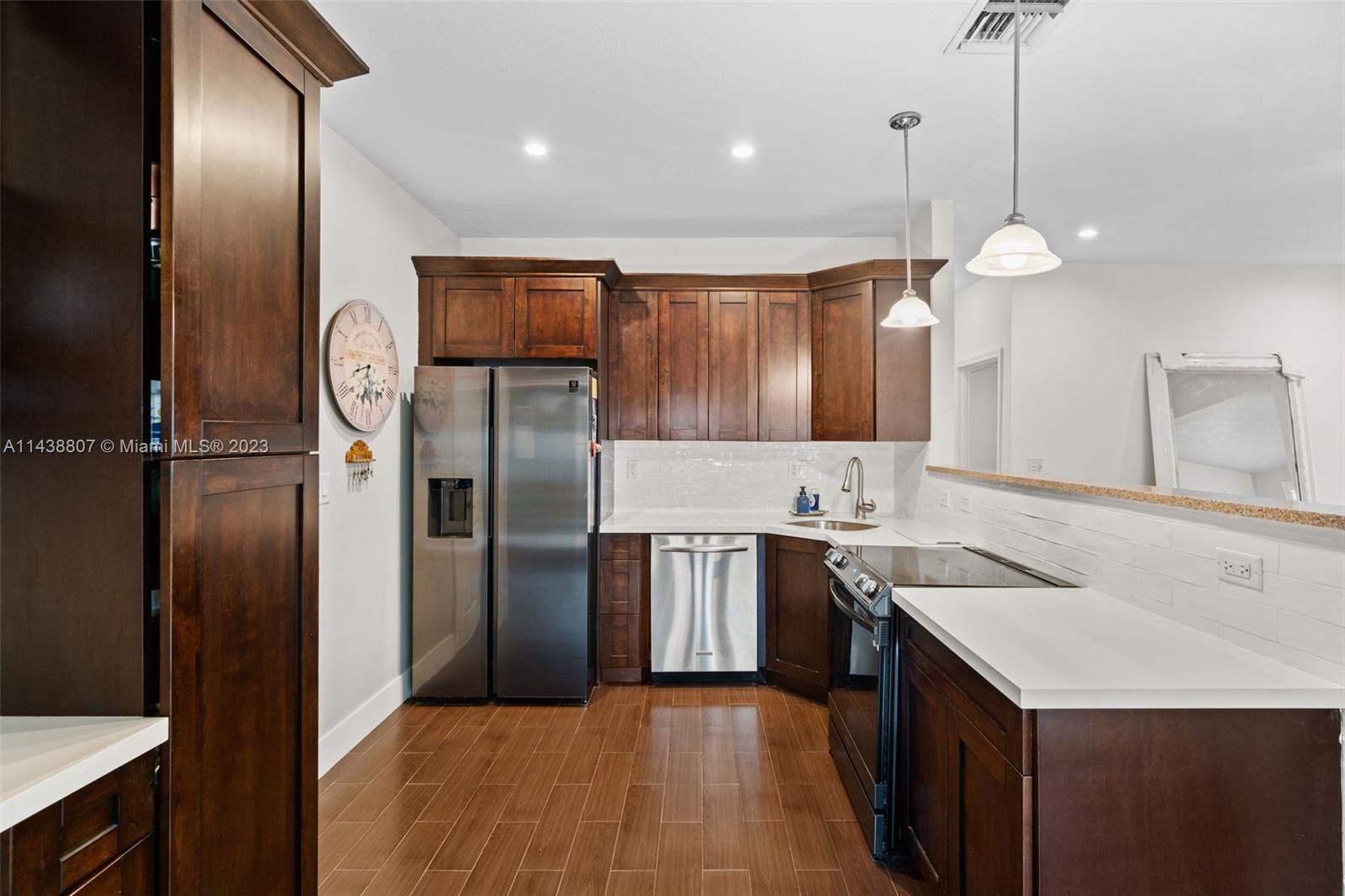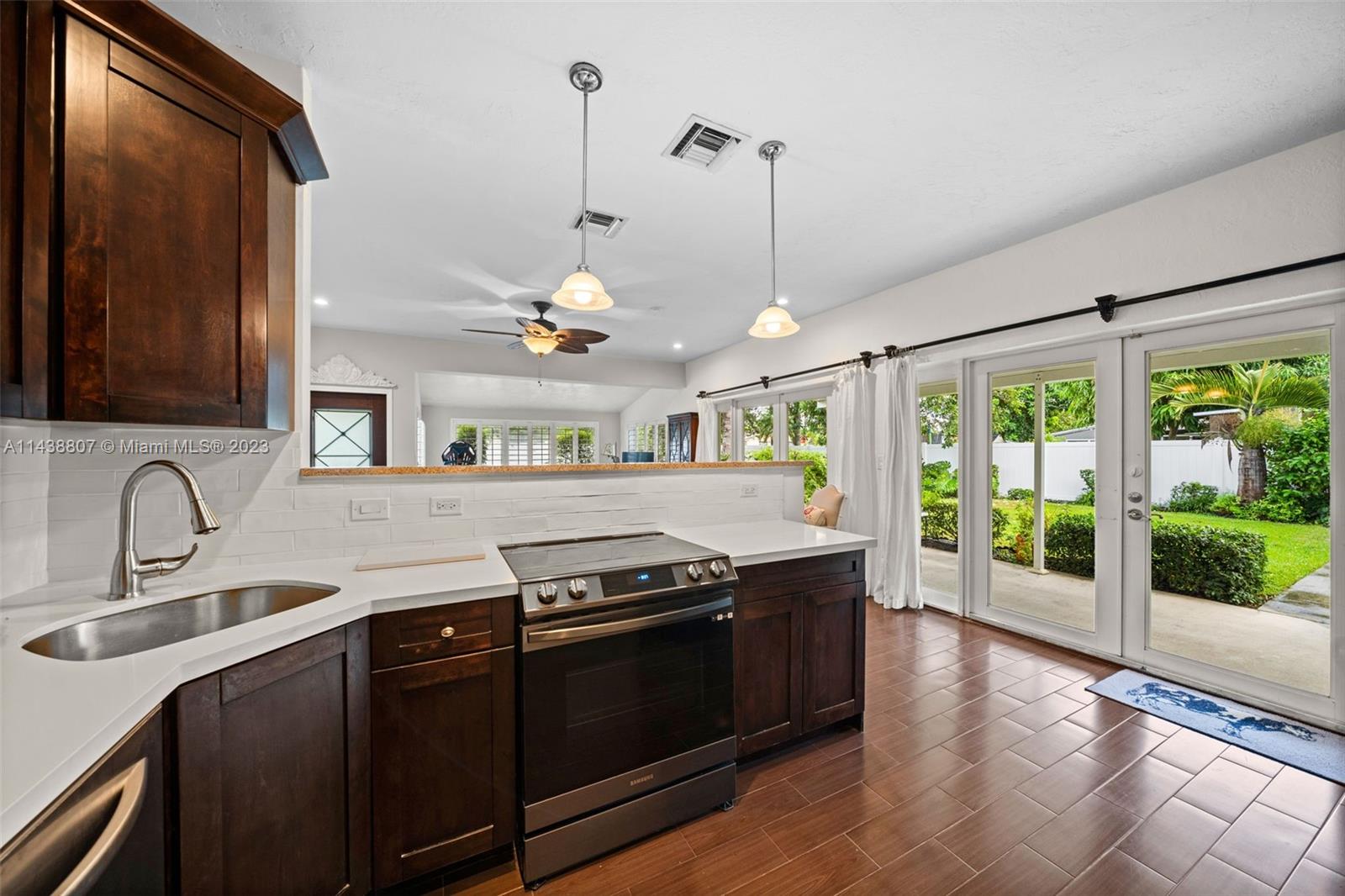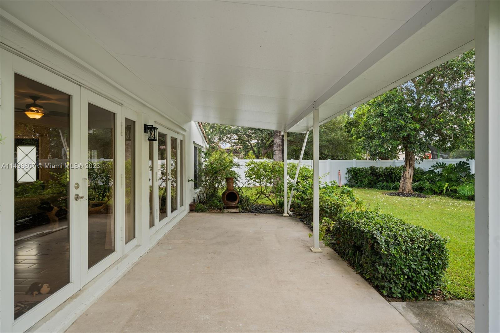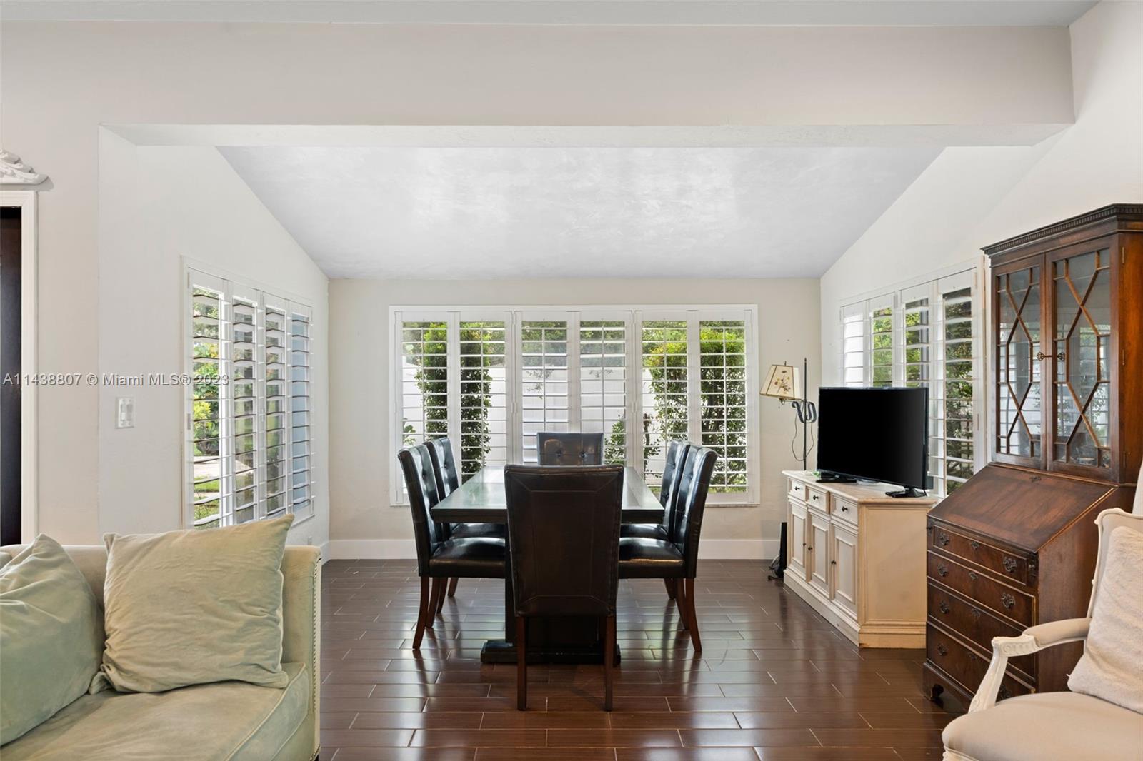 1,389 sq foot, 3-bedroom, 2-bath corner home in NE Hallandale Beach. well-maintained home with a circular driveway, a barrel tile roof, and beautiful landscaping. Once you enter this home, you will notice all the natural light through the plantation shutters and two French doors open to a covered porch overlooking the backyard with a she-shed. The primary bedroom has a full bathroom and a patio with French doors overlooking the front yard. The home is a split-bedroom floorplan with an open kitchen to the living and dining area. Other improvements are the exterior freshly painted in 2022, a new PVC fence, and beautiful landscaping. The she-shed has A/C, lighting, and two lofts, permitted on a concrete slab. Easy to show; appointment required. Attachments are included on the MLS.