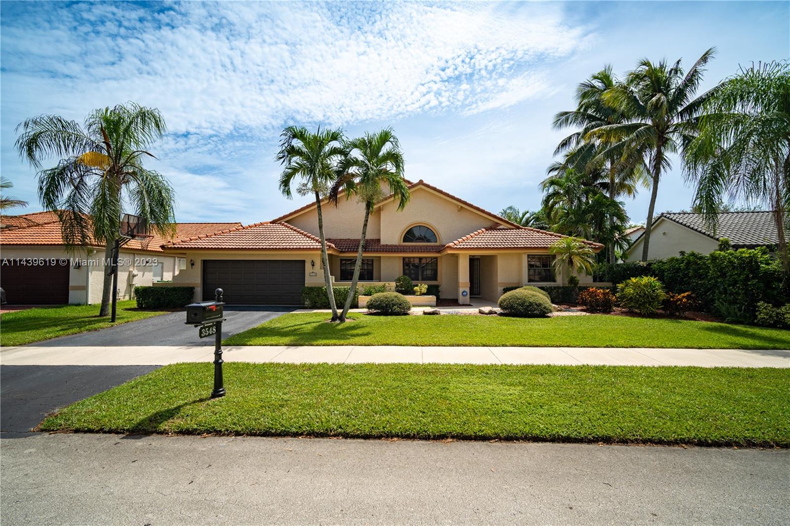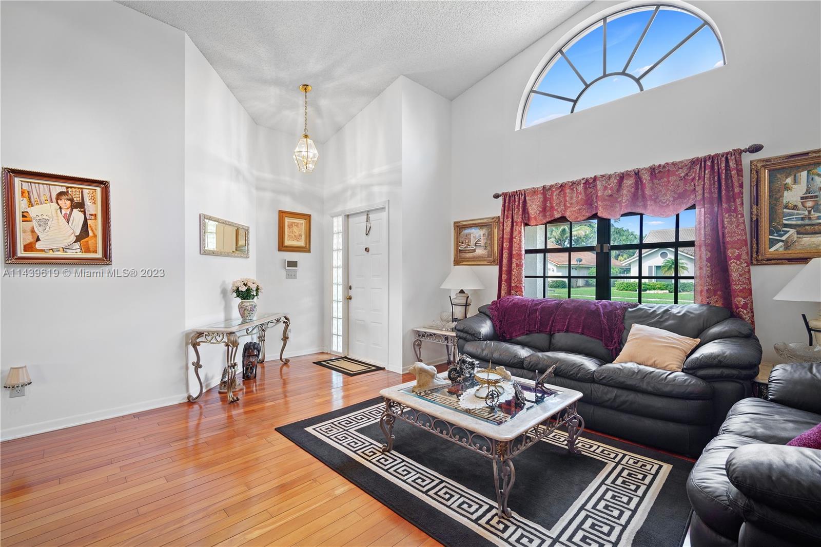 Discover your dream home in the Forest Ridge community! Spacious 4-bed, 2-bath gem offers a 2-car garage, a pool with waterfall feature, an oversized lot perfect for outdoor enjoyment. Stepping inside the home you'll be captivated by the volume ceilings, creating an open & airy atmosphere. The open layout invites you to explore the spacious living areas, with lots of natural light filtering through large windows. The heart of the home boasts a large open kitchen with sleek countertops, The living room offers a cozy ambiance for gatherings, while the formal dining offers an elegant setting for guests. Glass sliding doors connect the indoor & outdoor spaces, leading to the patio & pool. With a lakefront view adding to the charm, this property combines comfort, with a picturesque setting.