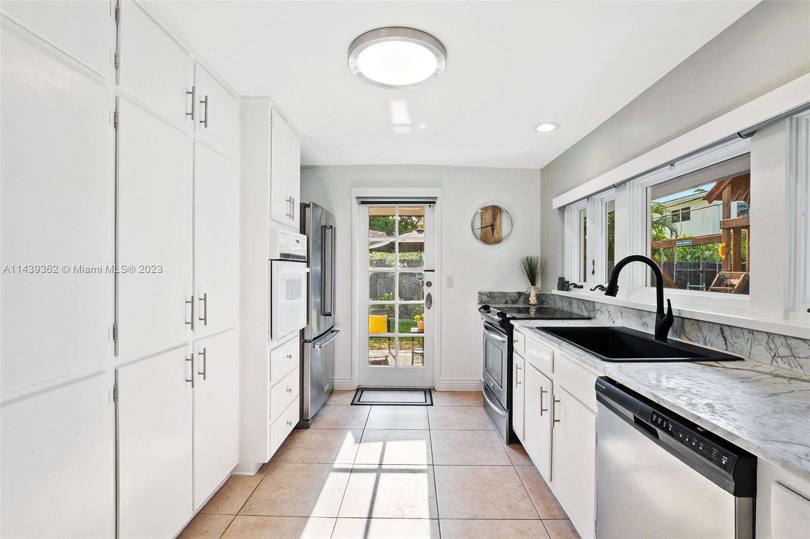 Beautiful 3/2 mid-century modern home located in the highly-desirable Coral Ridge neighborhood of Ft Lauderdale. East of US1 & A+ rated Bayview school district, home has a split bedroom layout, open floorplan with lots of natural light. Enjoy a southern-facing renovated pool, new tiles, pool pump, kid-friendly pool fence, LED lighting & tropical landscaping to give that South Florida vibe. Home comes with impact windows, Bahama roof, remodeled main suite, s/s appliances, security system & cameras, tankless hot water heater, hot water tank (40 gal) & updated electrical panels. Lots of storage space such as a double garage, shed, & a paved patio area to store your boat, jet ski, golf cart & more! New exterior paint & new silicone roof paint.