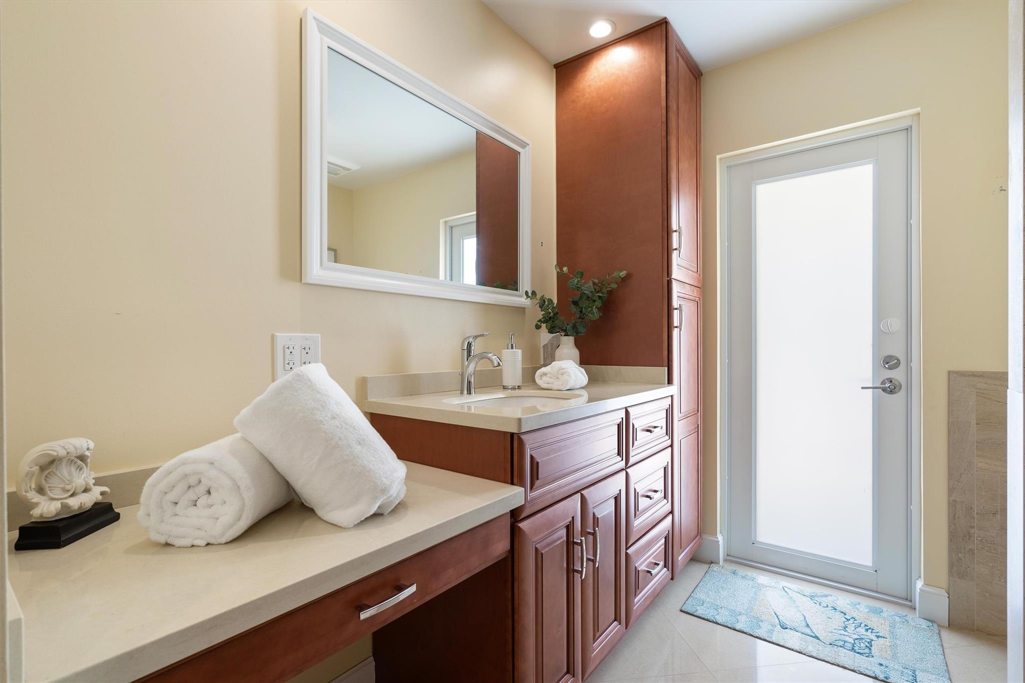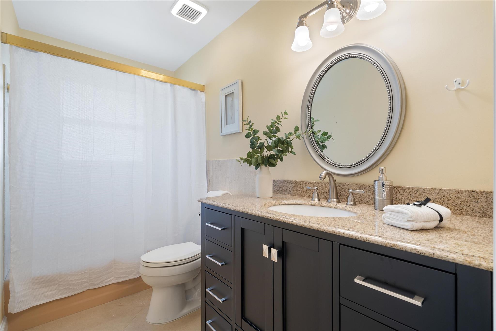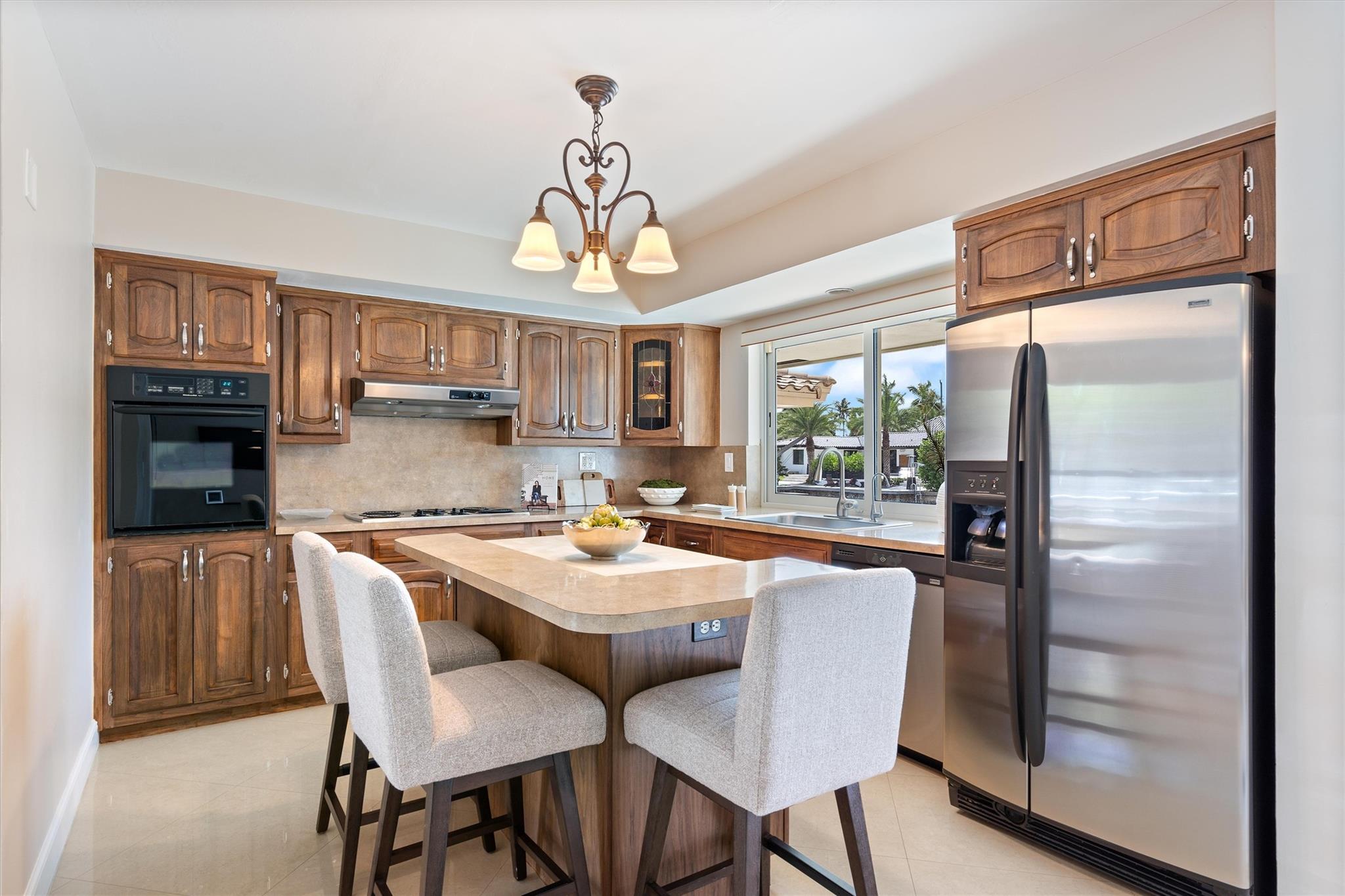 A stylishly updated pool home with ocean access waterfront. 3 bedrooms & an uncommon 3rd bathroom. Complete hurricane protection with a newer roof & all windows, doors & 2 car garage door being hurricane impact. The backyard is completely redone & upgraded. Seawall is reinforced; new dock, the pool has new River Rock, glass tile, pool pump & light fixture. New travertine pavers complete the beautiful entertaining area. Inside this lg home are ceramic tile floors, an upgraded kitchen, natural gas & adjacent pool bath, the main bedroom with new en suite bathroom & walk-in closet. The living areas were freshly painted, very lg pantry-laundry room with new washer & dryer. You’ll find this home resides on a lovely tree-lined, culdesac with sidewalks & gorgeous sunsets.