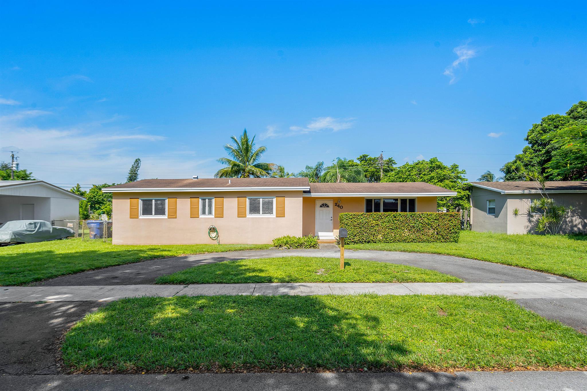 Embrace South Florida's sunshine lifestyle with this 3-bed, 1.5 bath single family home in Hollywood. Enter into a light and airy living space conveniently connected to a sunroom, spacious family kitchen with gas range and separate laundry room. Kitchen is adorned with custom cabinets providing more than ample storage.Property has a circular driveway and is surrounded by an abundance of lawn space and a large back yard with plenty of room for a swimming pool. Garden shed also included for additional exterior storage. Hurricane impact windows installed throughout ensuring you're always prepared for the unexpected. Great location, less than 9 miles from Hollywood's beautiful sandy beaches, famous 2.2 mile Boardwalk, recently named one of America's Best Beach Boardwalks.