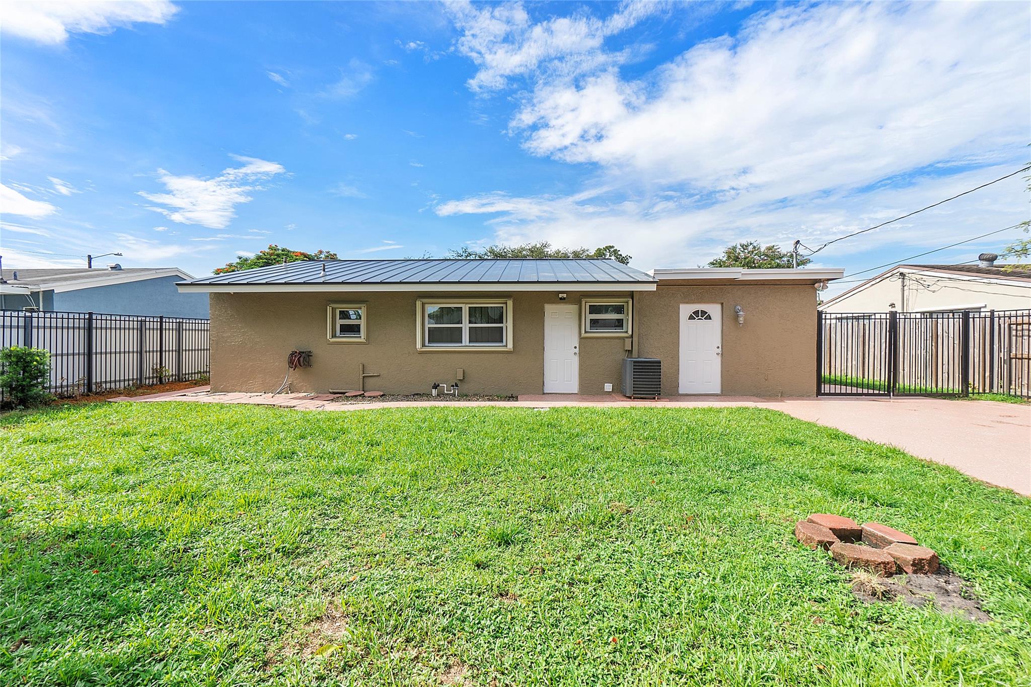 Beautifully updated 3/2 single-family house in Hollywood. This house has been totally remolded with granite and marble countertops in the kitchen and bathrooms. Open floor plan with porcelain tile floors throughout. Newer metal roof. Impact windows plus accordion storm shutters. The huge backyard has been totally fenced in on a large lot with gates on both sides. Newer circular driveway, huge back patio, and large storage shed in the back yard. Beautiful landscaping. All newly updated appliances, New A/C, including the washer and dryer. Tankless water heater. Newer septic system. Great location close to I-95. A must-see!