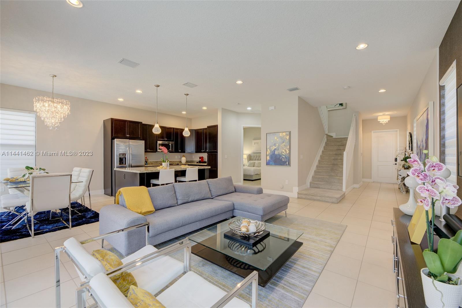 Beautifully maintained single-family home in exclusive Bonterra Hialeah Community. This floor plan includes 5 spacious bedrooms and 3 full bathrooms with 2 car garage. Open concept living/dining area with large kitchen featuring an island, stainless steel appliances and granite countertops. There is a primary suite with attached full bathroom on both floors. Upstairs consists of 4 bedrooms, 2 bathrooms plus a bonus loft area and laundry room. Bonterra Community is private with 24-hour gated security. Amenities feature a saltwater pool, community center with gym and game room, children’s playground and plenty of guest parking available. Great location near major highways and the soon to be built Miami Dream Mall and brand new shopping center featuring Publix, Burlington and Five Below.