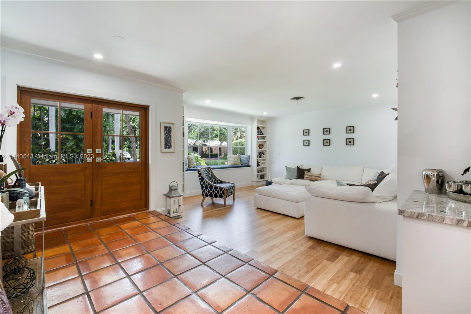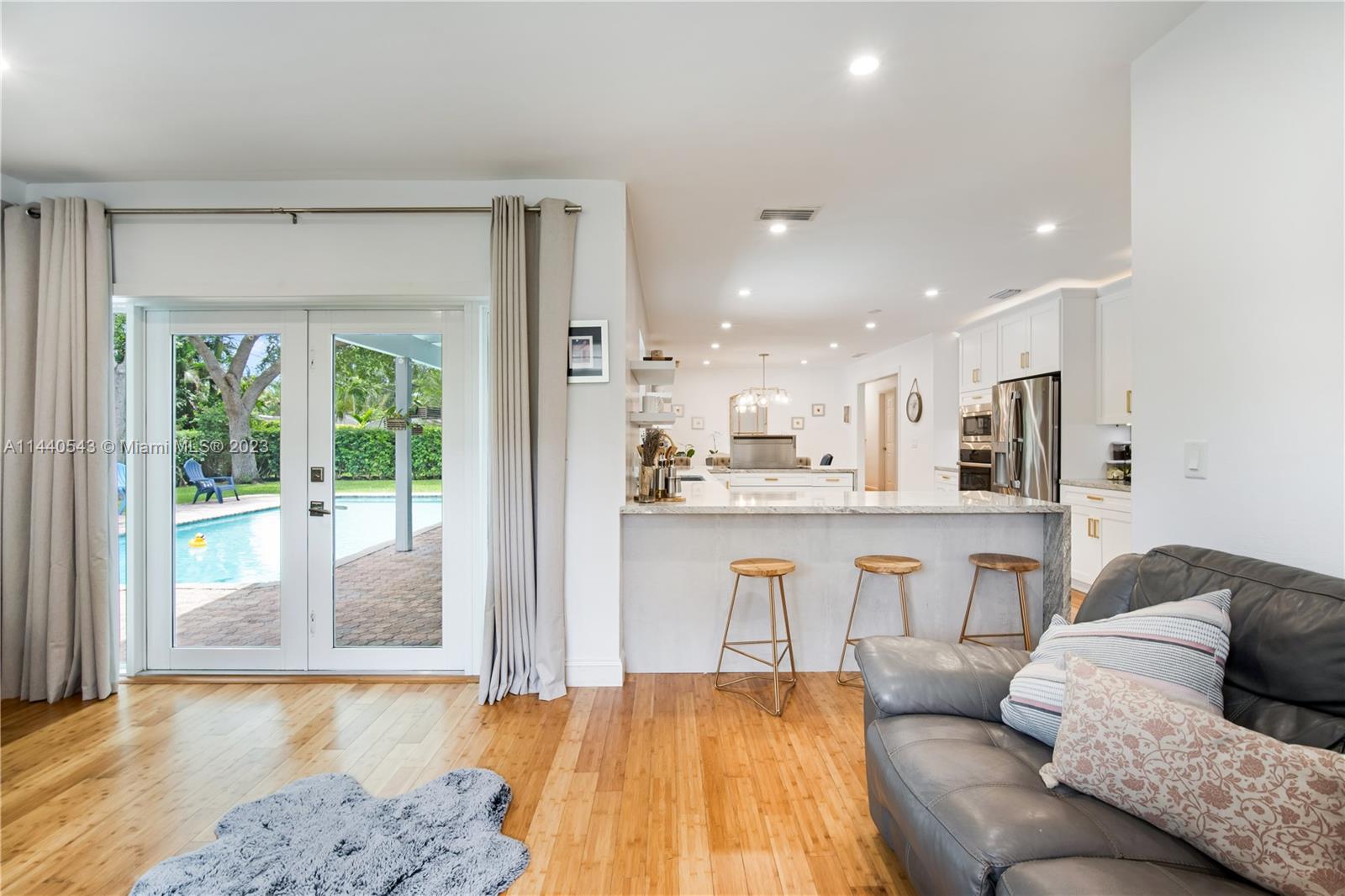 Pinecrest Palmetto Island Perfection! Rarely available and recently updated, this 3 bedroom, 2 bath home is ready for you to move right in. Enter through new stylish impact double front doors into a spacious living area with a charming window seat. The beautifully updated eat-in kitchen opens to the family room with light-filled views of the pool/patio and lushly landscaped oversized backyard with plenty of room for playing, relaxing, and entertaining. Updates include new impact windows and doors, kitchen, exterior paint, and bamboo flooring throughout. Hop on bordering paths steps away from Palmetto Middle, Palmetto Elementary, and other top-rated public and private schools. Start enjoying this sought-after neighborhood and South Florida living at its best!