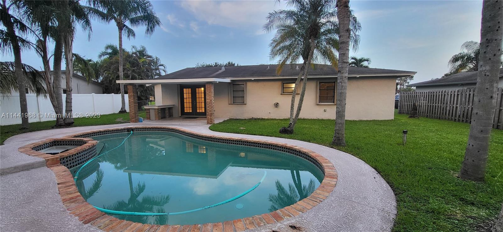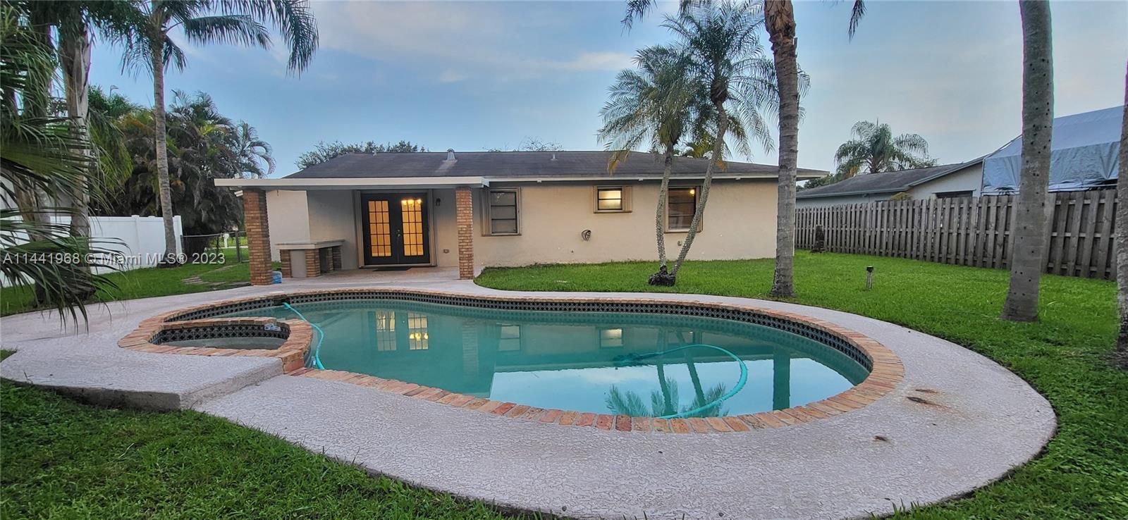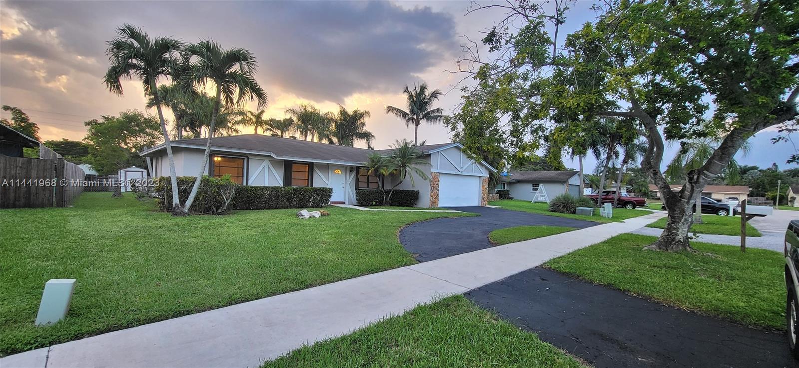 Gorgeous Davie home! Spacious 3 bedroom and 2 bath single family residence. Well maintained and clean. Updated kitchen cabinets and stainless steel appliances. Partially updated bathrooms. Open living areas. Ample closet spaces. Freshly painted throughout. Free form swimming pool and covered terrace ideal for entertaining or a Sunday Barbecue. Beautiful yard features mature coconut palms and plenty of wide open grass areas. Completely fence back yard. Large 2 car garage and a circular drive way. Tranquil and peaceful. Meticulously maintained neighborhood with a high pride of ownership! Close access to major roads, parks, bike trails and walking paths. Over sized lot with plenty of room to park an RV or boat. Canal front.