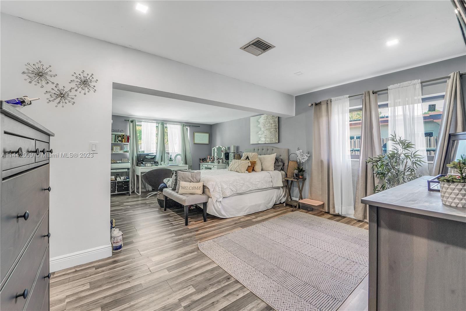 Welcome Home! This incredibly spacious home boasts an open concept living and dining area overlooking the oversized Florida room with a lot of natural light throughout. The kitchen is well equipped with an abundance of cabinet space and newer well maintained SS appliances. Then flow right into the massive laundry room that can also be used a den/office or a flex space with access to the back yard. This home has 3 bedrooms and 2 full baths with a massive master suite with a sitting area and a proper ensuite bathroom. Head out into the covered patio area and/or enjoy the pool where you and the family can cool off on those scorching hot summer days. Full hurricane protection with recently installed hurricane impact windows and doors.